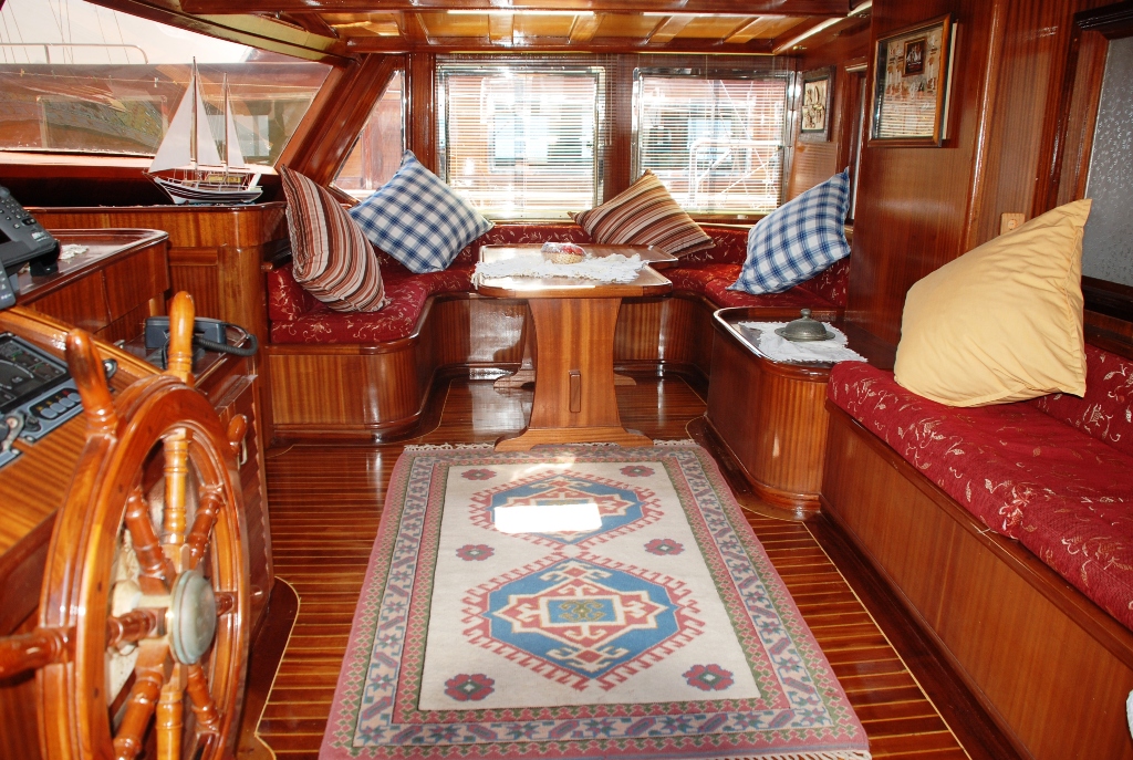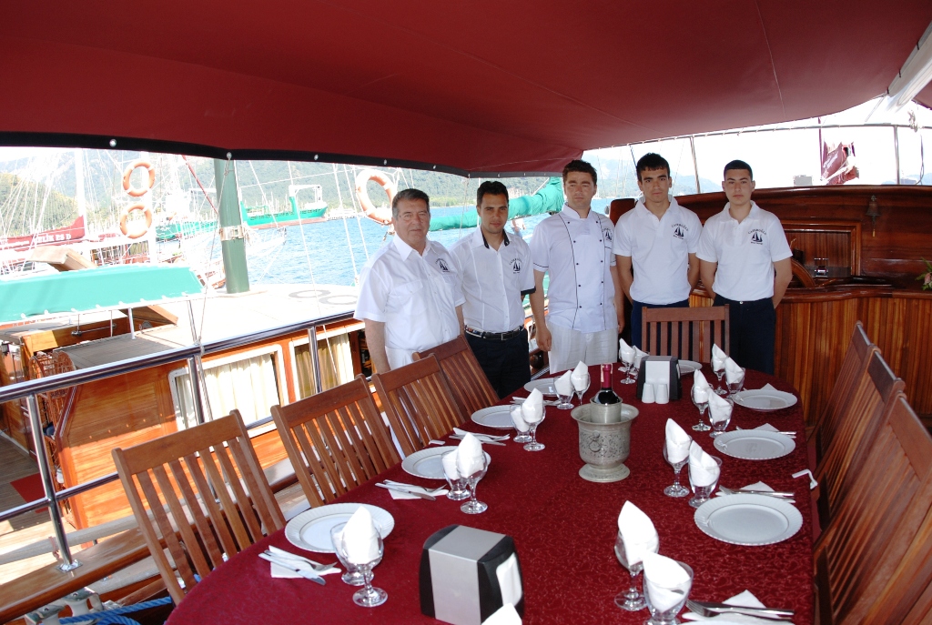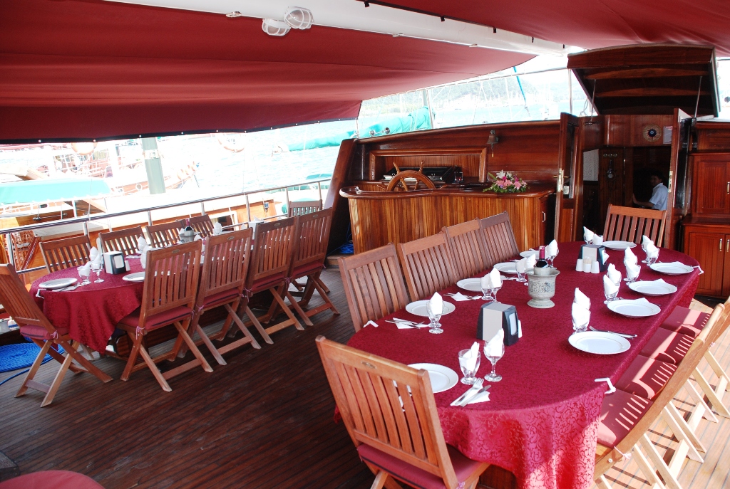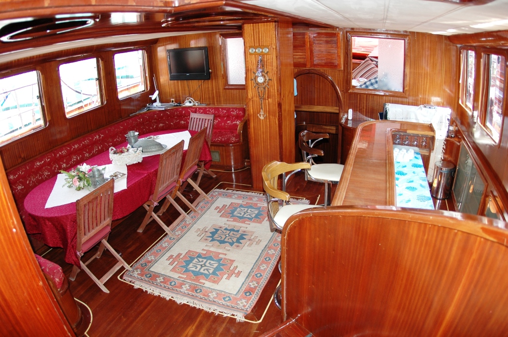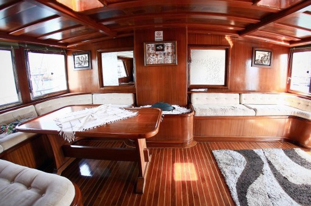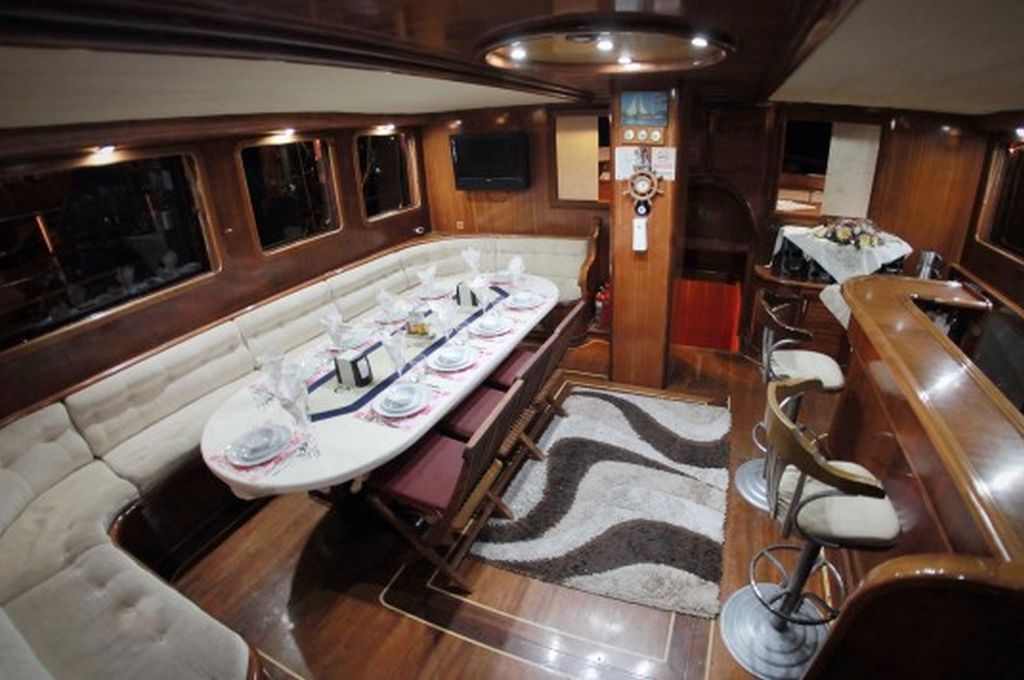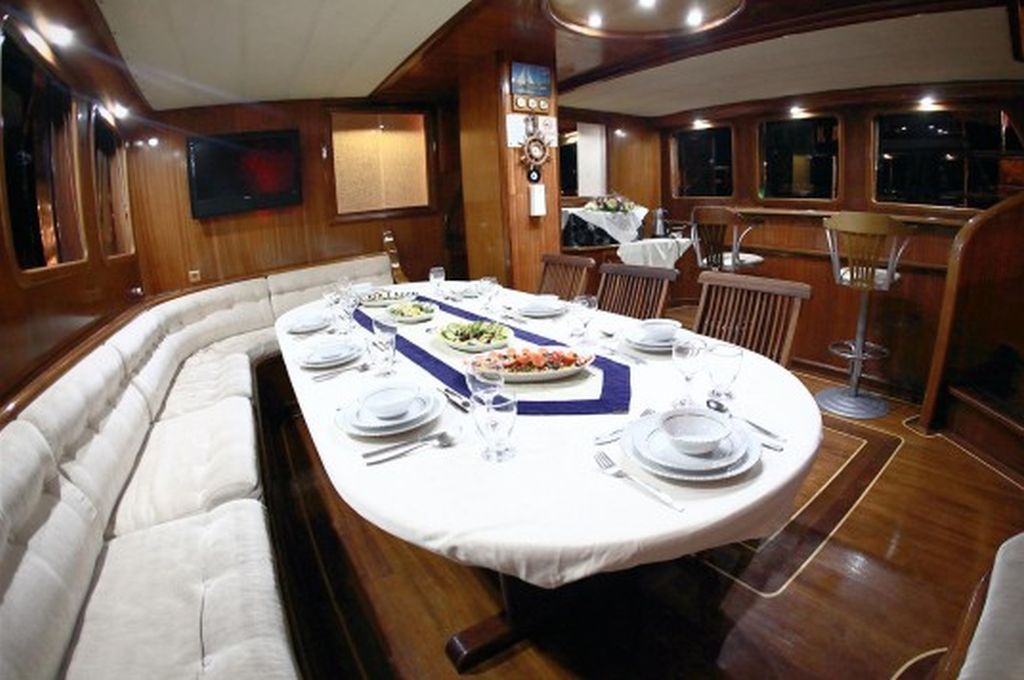 Судно оснащено двумя двигателями Iveco по 550 л.с. и двумя генераторами по 42 кВА, что позволяет развивать скорость 12 узлов и гарантирует комфортное и эффективное путешествие. Caferoglu 7 — отличный вариант для больших групп, которые ищут увлекательный «Голубой круиз» в Турции, благодаря своей вместимости и профессиональной команде.