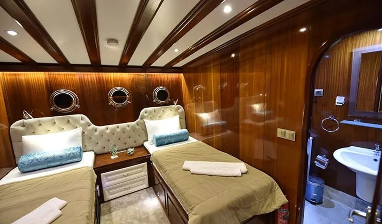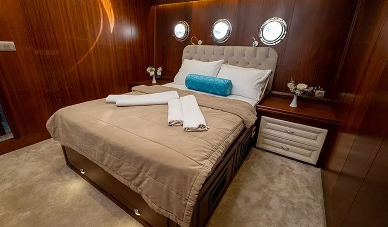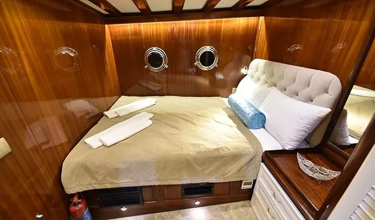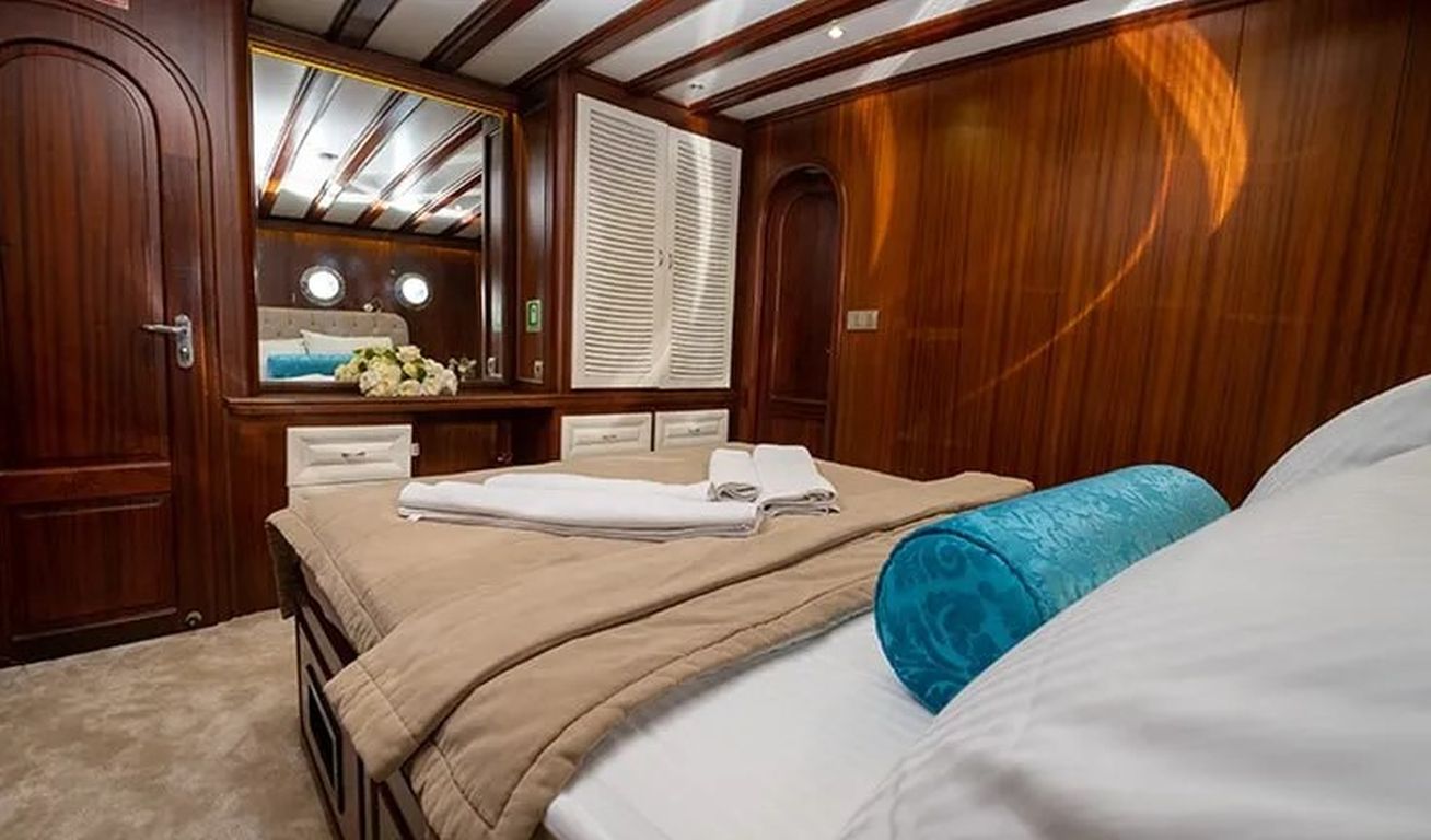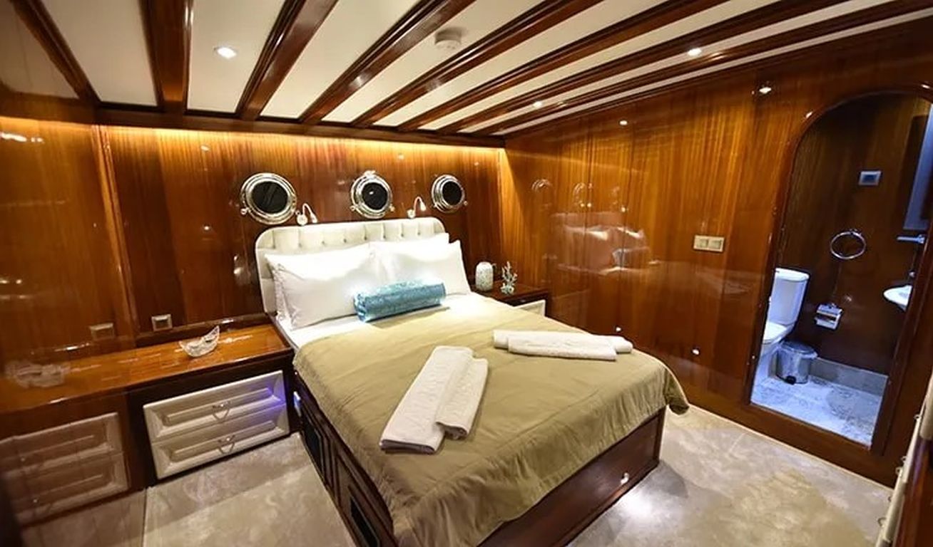 | Гулет Kayhan 11 — это 34-метровый кеч, построенный в 2002 году и капитально отреставрированный в 2017 году. На борту 10 кают: шесть двухместных и четыре с двумя односпальными кроватями, рассчитанные на 20 гостей. Каждая каюта оснащена кондиционером, отдельной ванной комнатой и душем. Кондиционер работает до 8 часов в день, с возможностью продления на ночь за дополнительную плату. Просторная палуба включает обеденные зоны под навесом, мягкие диваны и большие зоны для загара. Внутри салон оборудован обеденным столом, баром и удобными сиденьями. Среди водных развлечений: каноэ и водные лыжи. Дополнительно предлагаются вейкборд, ринго и сап-борды. Также доступны маски с трубками и рыболовные снасти. Судно оснащено двумя двигателями Iveco по 450 л.с. и двумя генераторами Onan по 45 кВт, что позволяет идти со скоростью 11 узлов. Kayhan 11 — отличный выбор для больших групп, предлагающий элегантный дизайн и профессиональное обслуживание. |