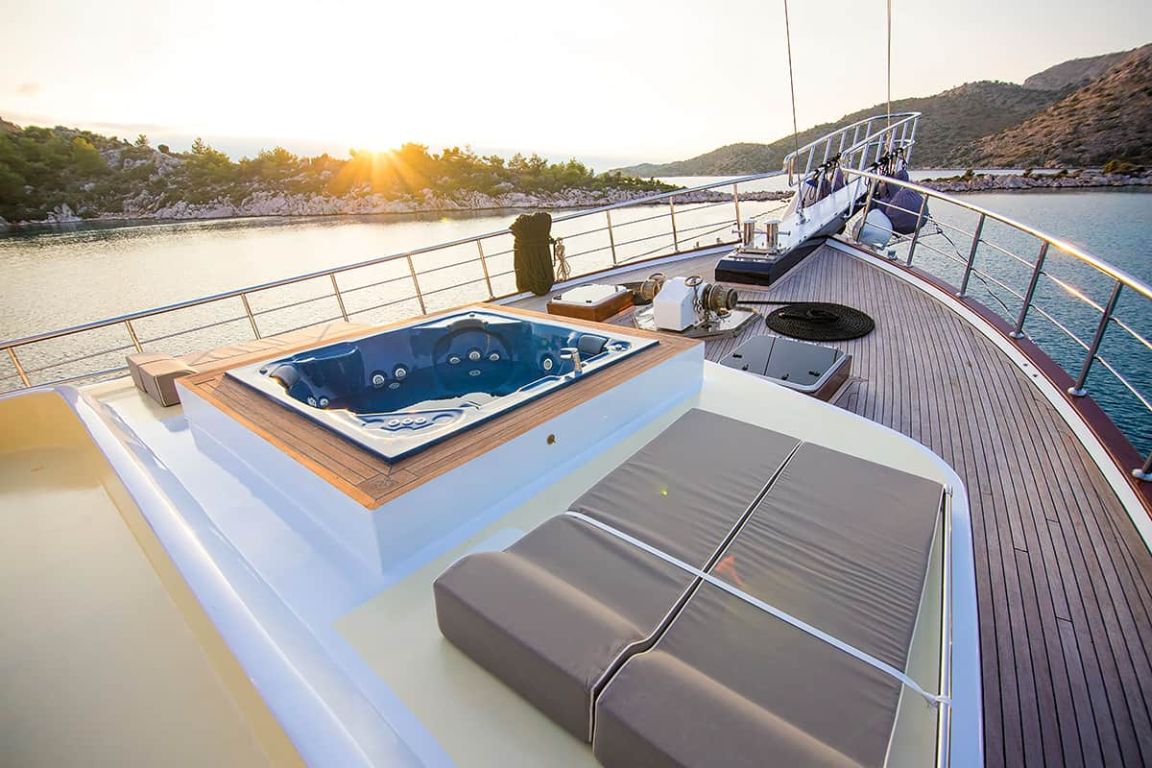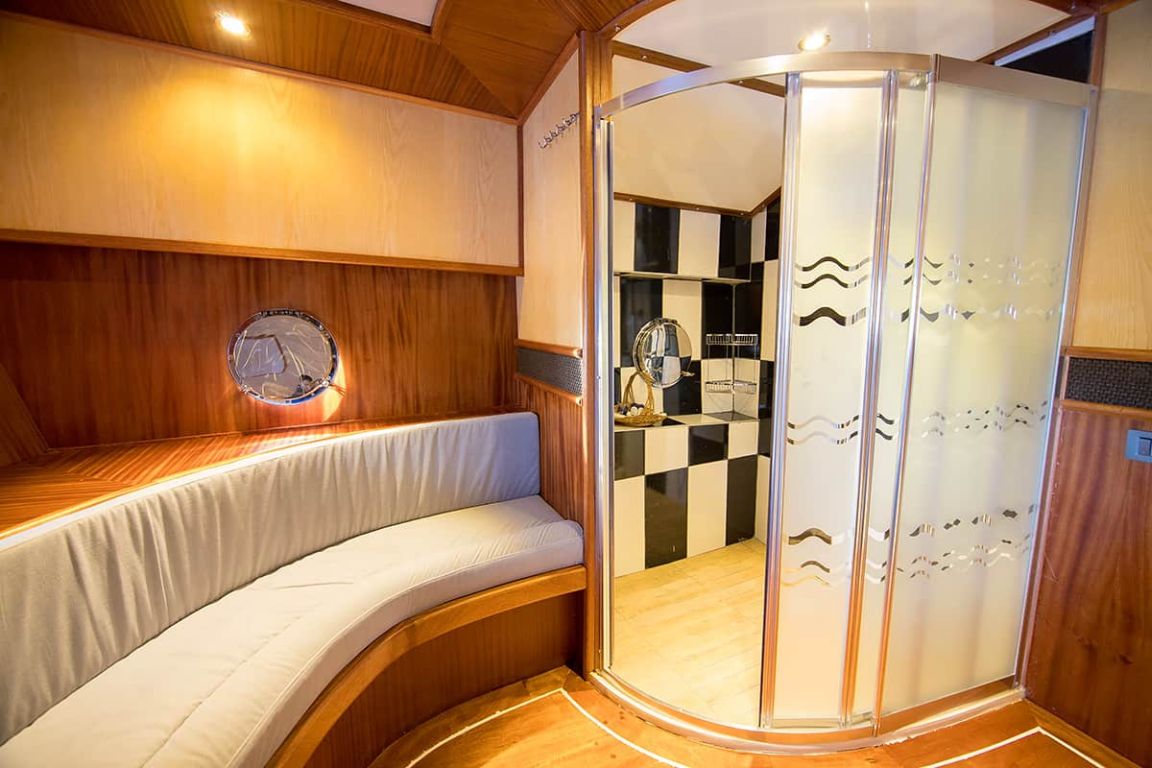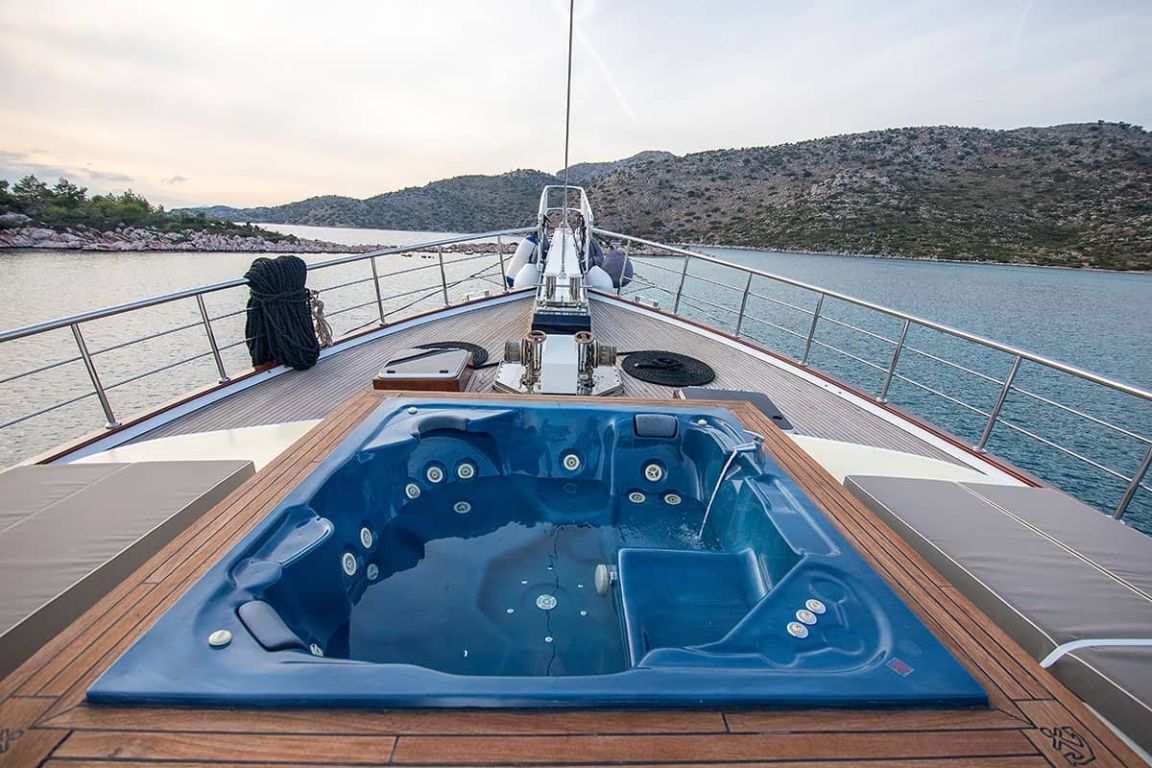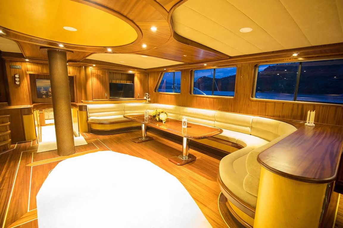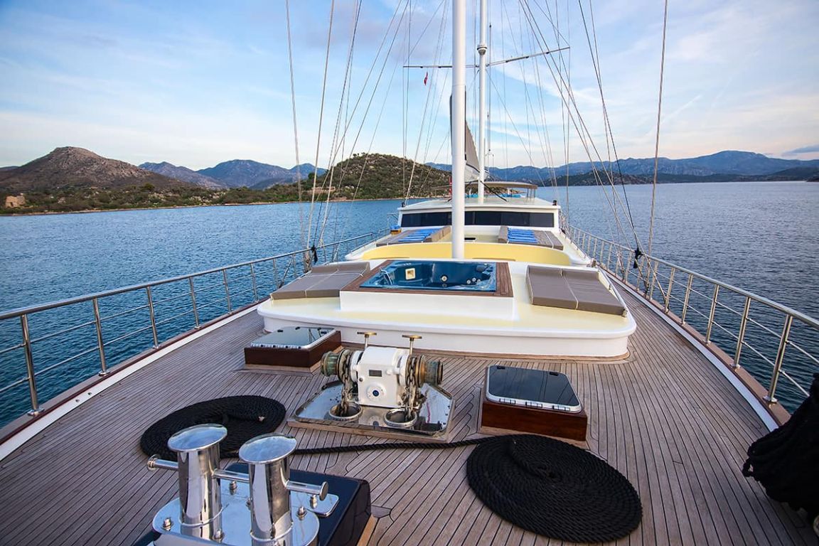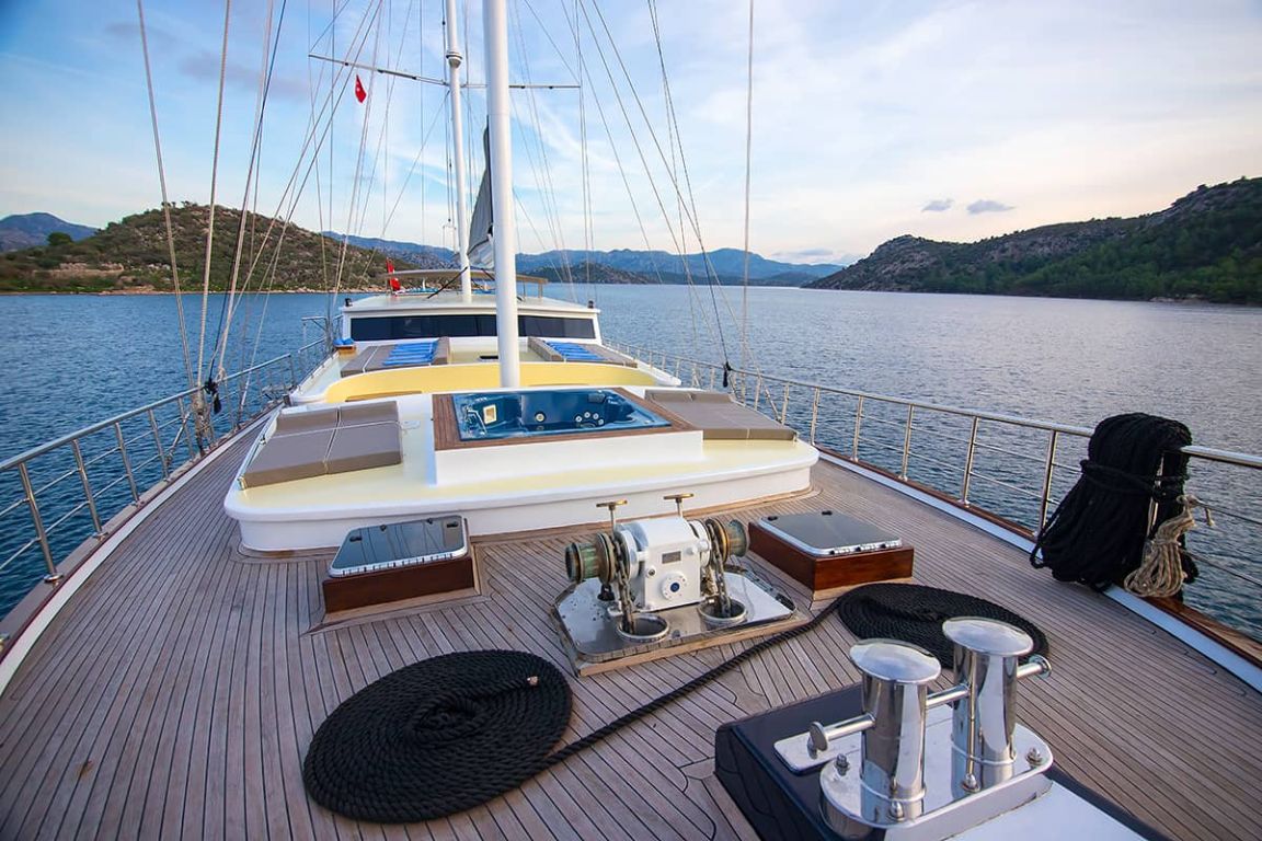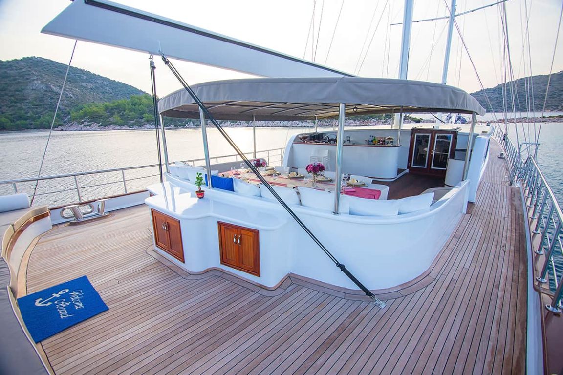 Наш гулет с 10 каютами имеет 2 мастер-каюты, 6 двухместных и 2 двухместные каюты с кондиционером, туалетом и душем в каждой каюте и может легко разместить в общей сложности 20 гостей. Большая и удобная гостиная оборудована таким оборудованием, как телевизор, спутниковое телевидение и CD-плеер, чтобы сделать ваше время вне моря более приятным. Пока вы наслаждаетесь блюдами, приготовленными на нашей полностью оборудованной кухне, вы также можете открыть для себя все оттенки синего.