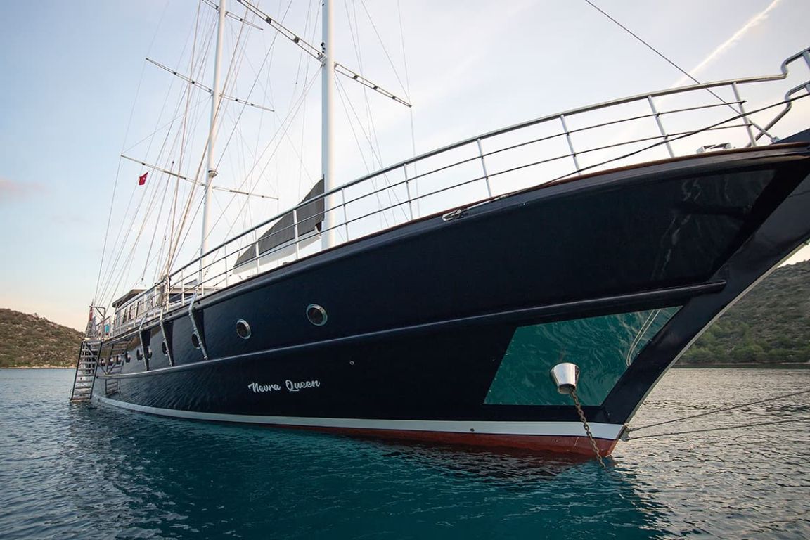 Гулет и яхта Nevra Queen, одна из самых красивых и больших лодок в нашем флоте гулетов, обещает комфорт и удобство для больших групп и семей. Наш гулет был спущен на воду в 2018 году. Лодка гулет Nevra Queen длиной 40 метров. При своей длине и ширине 9 метров она предлагает как комфортабельные каюты с кондиционером, так и удобную и просторную палубу. С лодкой Nevra Queen вы можете выбрать любой из маршрутов Бодрум, Гёкова, Мармарис, Фетхие или объединить 2 синих круизных маршрута в зависимости от продолжительности вашего отпуска и арендовать наш гулет на 14 дней.