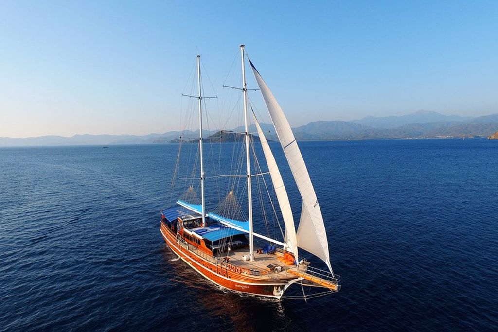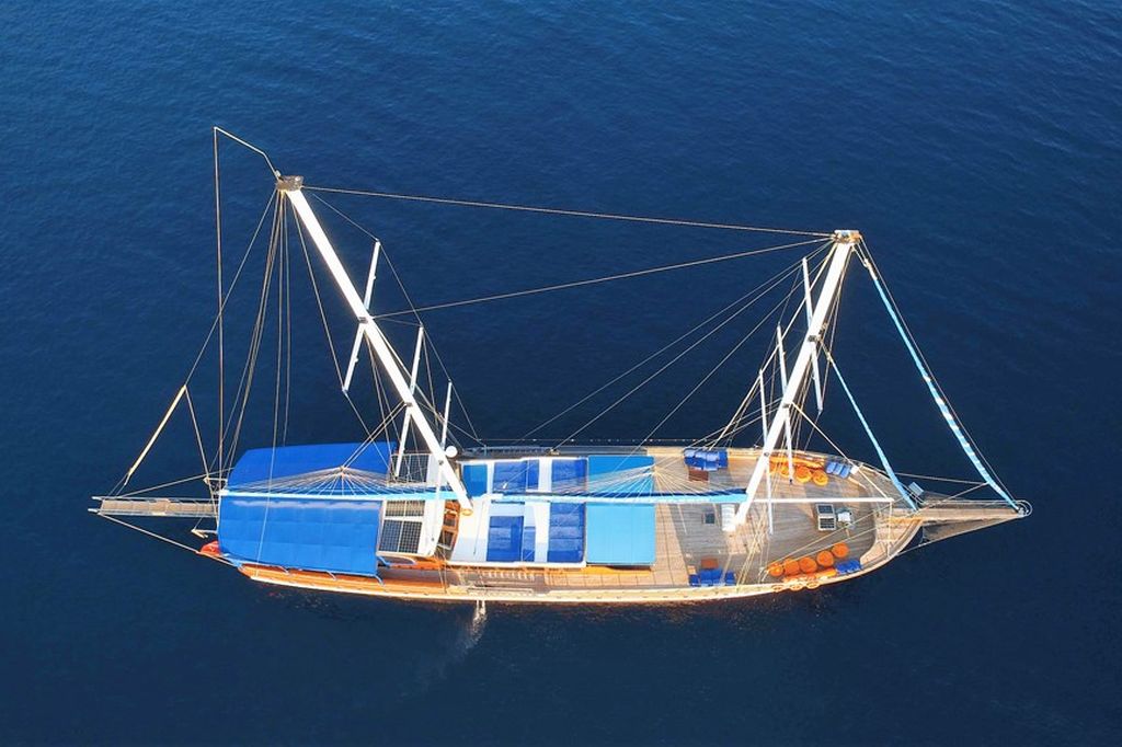 | Гулет Semercioglu 4 — это 40-метровая яхта, спущенная на воду в 2011 году и отреставрированная в 2016 году. На борту 10 кают: девять двухместных и одна с двумя кроватями, рассчитанные на 20 гостей. Каждая каюта оснащена отдельной ванной комнатой и кондиционером, работающим 6 часов в день. Ширина корпуса 9 метров гарантирует простор: обеденные зоны в тени, мягкие диваны и отдельные площадки для загара. Салон оборудован обеденным столом и камбузом. Водные развлечения включают тендер 70 л.с., ринго, каноэ, снаряжение для подводного плавания и рыбалки. Судно оснащено двумя двигателями Iveco по 500 л.с., а также генераторами 33 и 22 кВА, что позволяет идти со скоростью 16 узлов. Semercioglu 4 прекрасно подойдёт для больших групп, ищущих комфорт и удовольствие в Эгейском и Средиземном морях. |