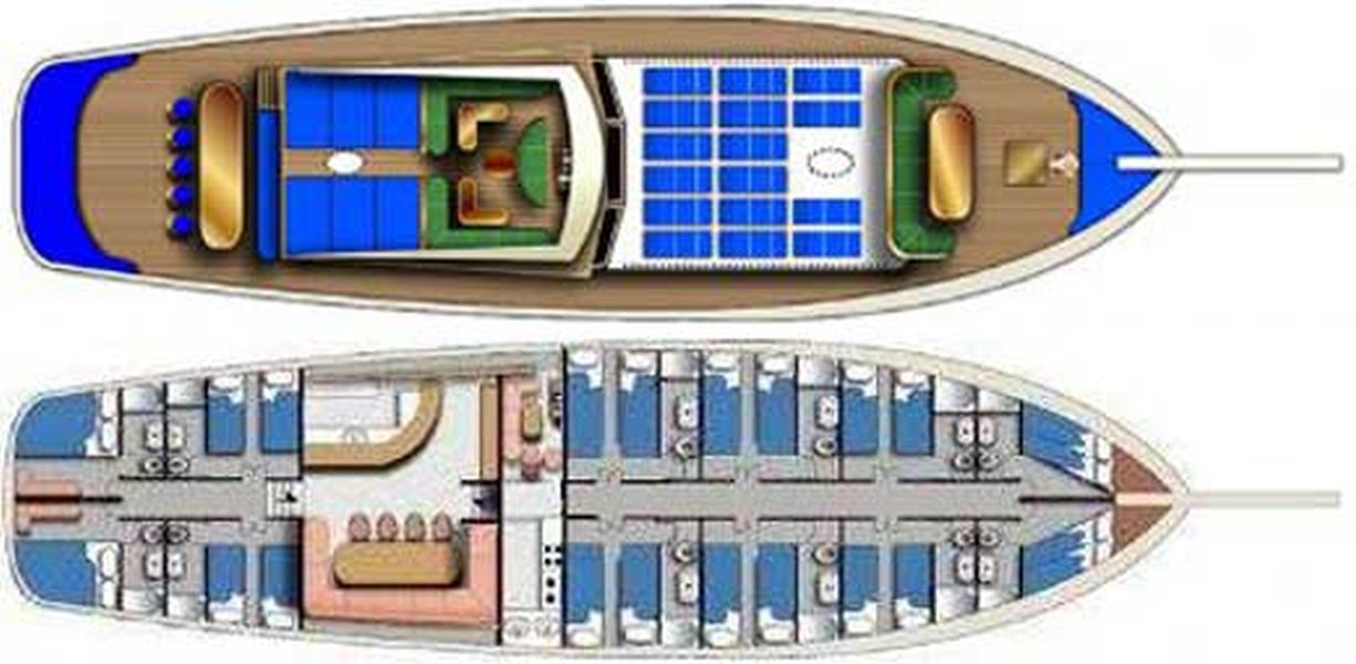 Наша 11-каютная Гулет и яхта имеет 5 двухместных и 6 двухместных кают с кондиционером, туалетом и душем в каждой каюте и может легко разместить в общей сложности 22 гостя. Большая и комфортабельная гостиная оборудована таким оборудованием, как телевизор, спутниковое телевидение и CD-плеер, чтобы сделать ваше время вне моря более приятным. Пока вы наслаждаетесь едой, приготовленной на нашей полностью оборудованной кухне, вы также можете открыть для себя все оттенки синего.