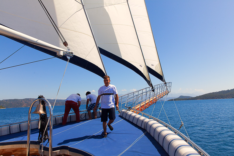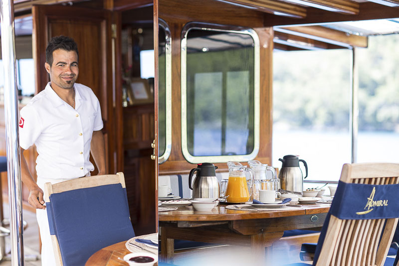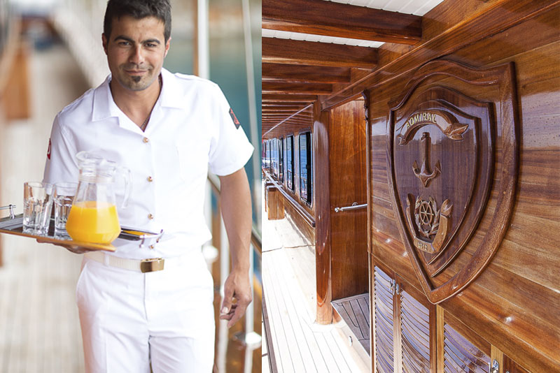 | Гулет Admiral — это 47-метровая яхта, построенная в 2013 году и полностью обновлённая в 2024 году. На борту 16 кают: 2 мастер-сьюта, 8 двухместных, 4 трёхместные и 2 каюты с двумя односпальными кроватями. Максимальная вместимость — 36 гостей. Каждая каюта оборудована собственной ванной комнатой и кондиционером, работающим 18 часов в сутки. Ширина корпуса 9,4 метра гарантирует просторные палубы с теневыми зонами для обедов, мягкими лаундж-зонами и местами для загара. Элегантный салон предлагает удобные зоны для отдыха и обедов. Admiral располагает обширным набором водных развлечений, включая высококачественные тендеры брендов Yamaha и Mercury, а также оборудование: SUP-борды, водные лыжи, ринго, банан, каноэ, снаряжение для сноркелинга и рыбалки. Судно оснащено двумя двигателями Cummins мощностью по 500 л.с. и генераторами 33 + 24 кВА, что обеспечивает крейсерскую скорость 10 узлов. Admiral — один из лучших вариантов для больших групп, сочетающий роскошь и активные развлечения. |