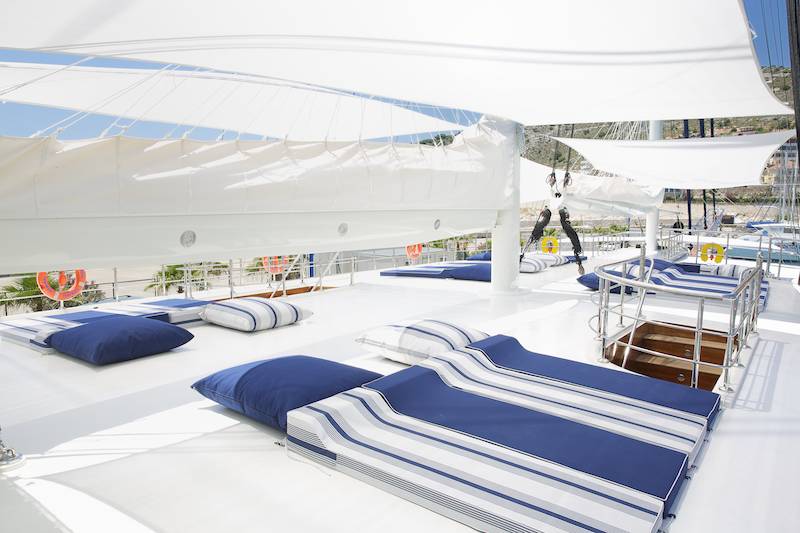 | 60-сильный сервисный катер, ринго, банан, каноэ, снаряжение для подводного плавания, рыболовные снасти, флайбридж, полностью оборудованное навигационное оборудование, эхолот, подключение к Интернету по Wi-Fi, радио VFH SATCOM (телефон / интернет), телевизор и DVD-плеер в гостиной, спутниковое телевидение, Музыкальная система для гостиной, подключение к iPad, обеденная зона на палубе, внутренняя столовая, мини-бар, душ на палубе, средства безопасности, матрасы для загара, фен, холодильник, морозильник, льдогенератор, опреснитель, полностью оборудованная кухня |
