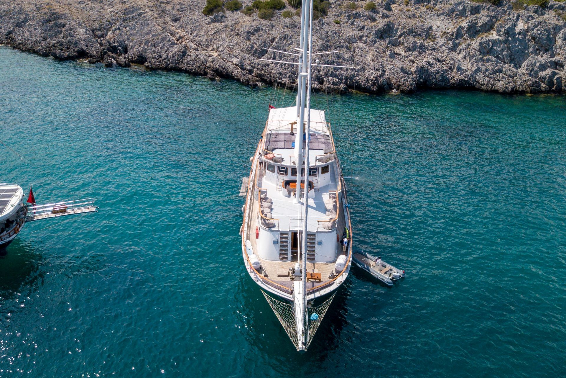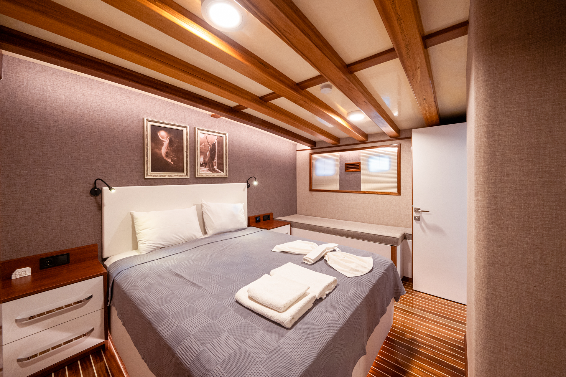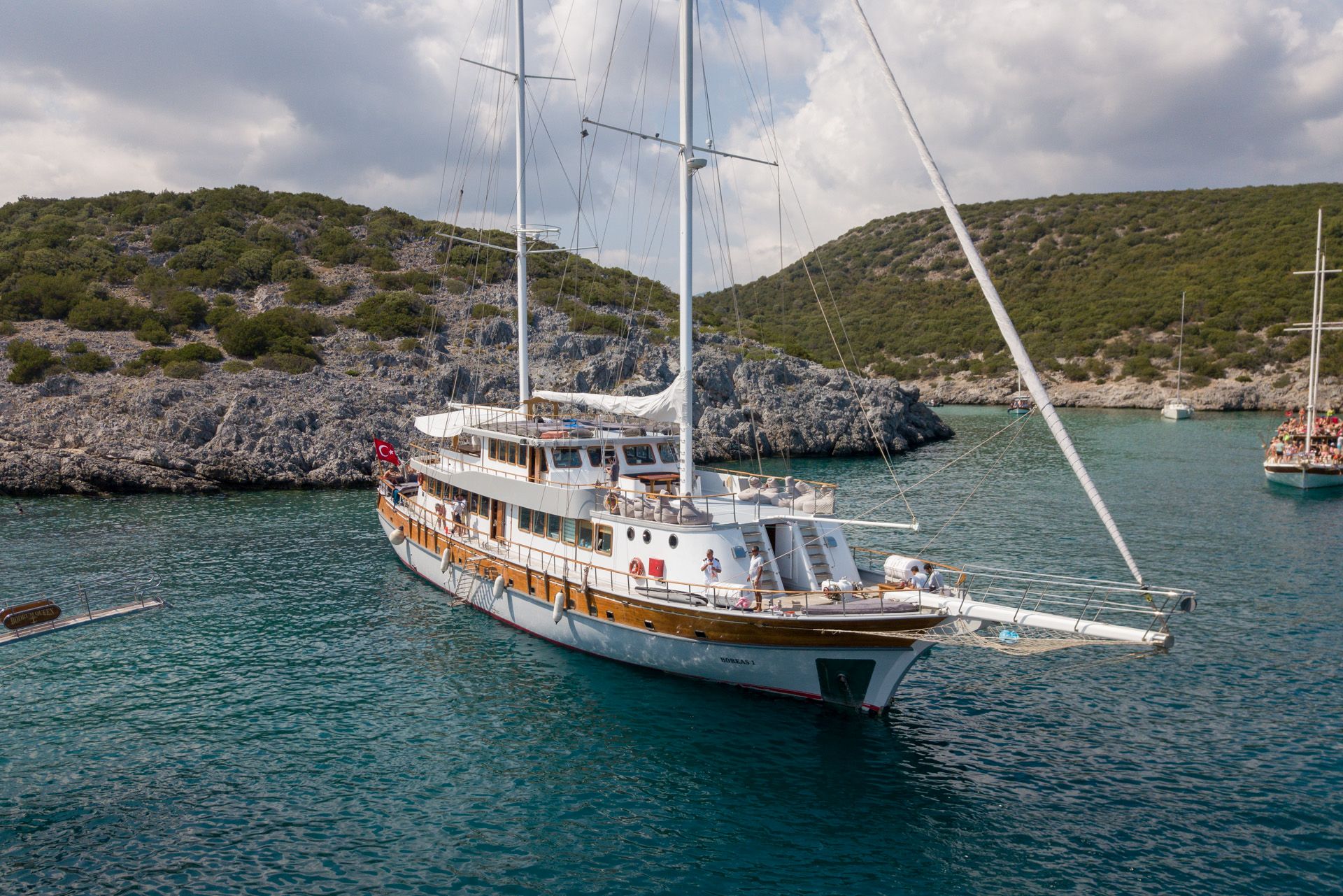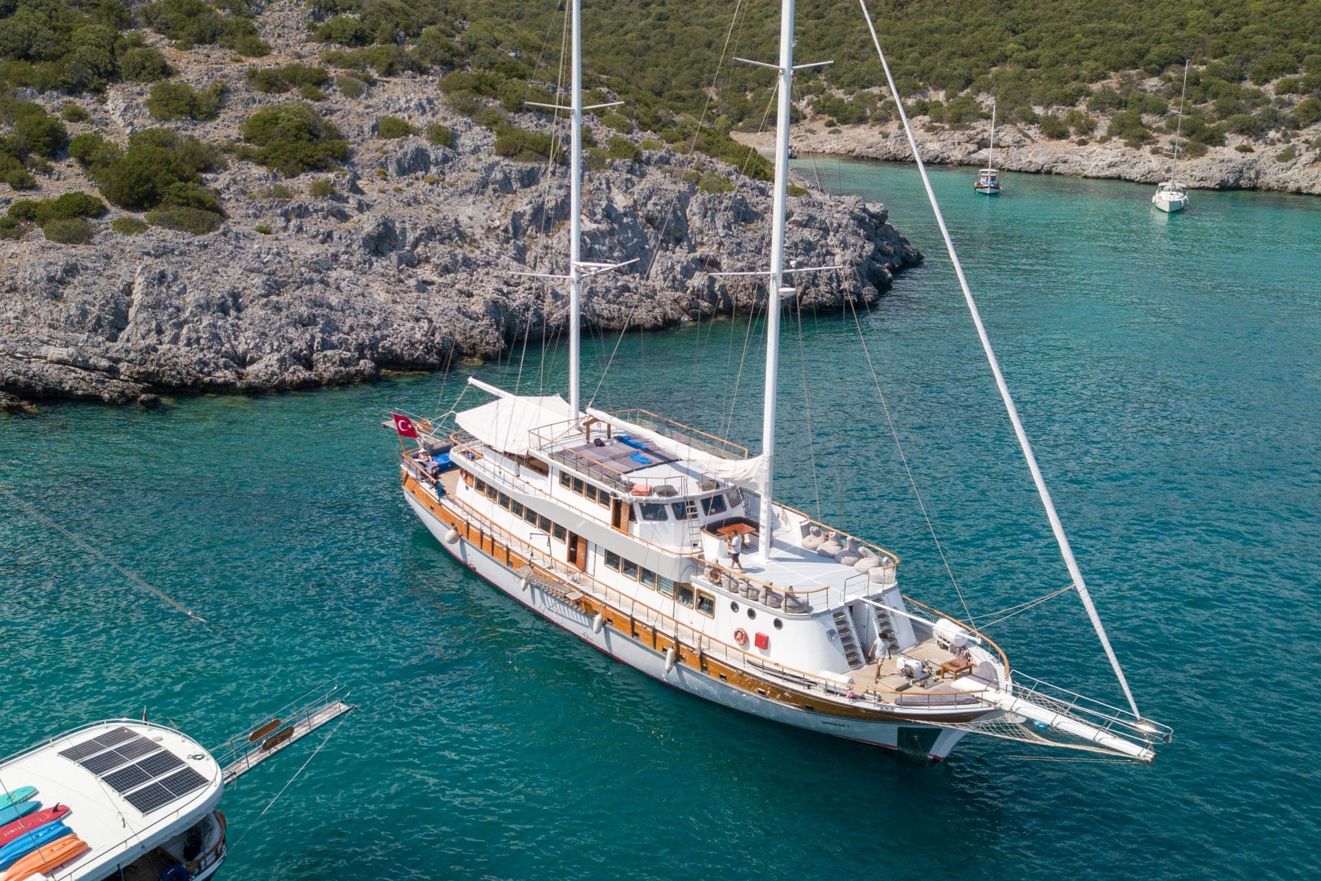 | Гулет Boreas — это 43-метровая яхта, построенная в 2010 году и обновлённая в 2023 году. На борту 16 кают: 8 двухместных, 6 трёхместных и 2 одноместные, всего до 36 гостей. Каждая каюта оснащена кондиционером и отдельной ванной комнатой. Кондиционер работает 18 часов в сутки. Ширина корпуса 10 метров обеспечивает просторные палубы, включающие обеденные зоны с навесом, мягкие лаундж-зоны и обширные места для загара. Интерьер салона оформлен со вкусом и включает зону отдыха и обеденный стол. Boreas предлагает разнообразные водные развлечения: тендер мощностью 50 л.с., SUP-борд, водные лыжи, ринго, каноэ, снаряжение для сноркелинга и рыбалки. Яхта оснащена двумя двигателями Cummins мощностью по 450 л.с., а также генераторами 115 кВА, 41 кВА и 13 кВА, что позволяет развивать скорость 10 узлов. Boreas идеально подойдёт для больших компаний, которые хотят насладиться комфортным и увлекательным «Голубым круизом». |