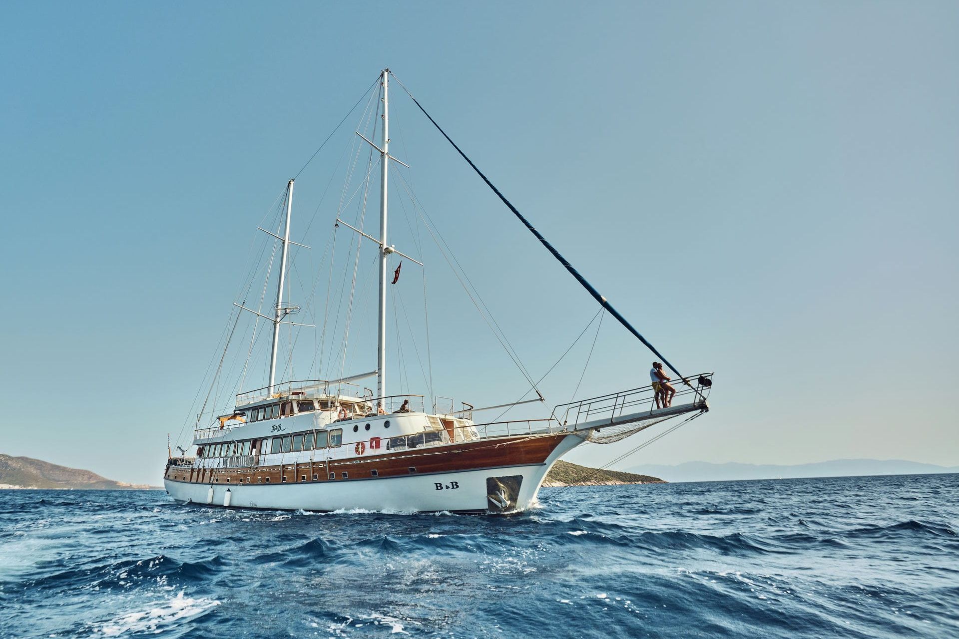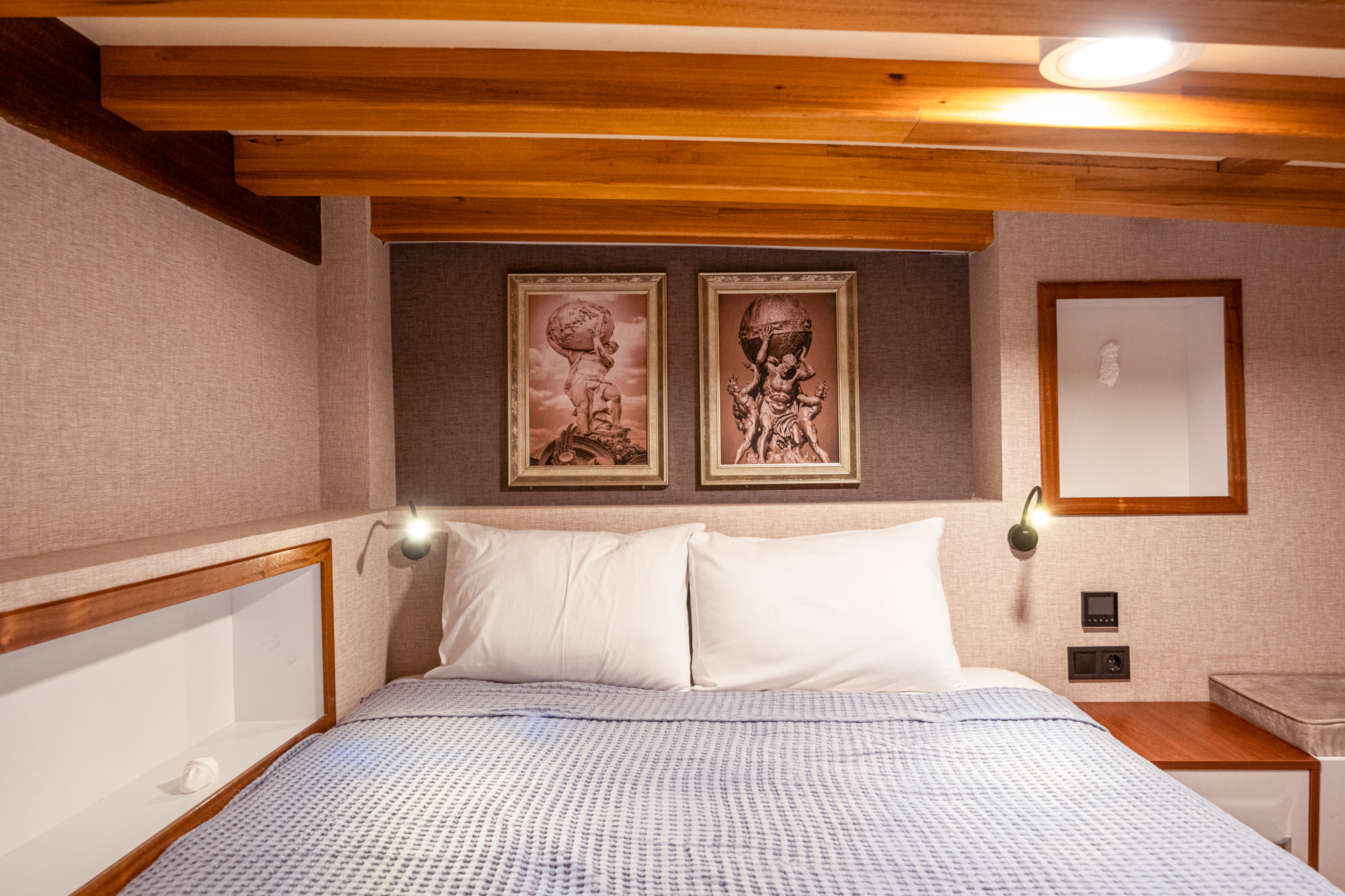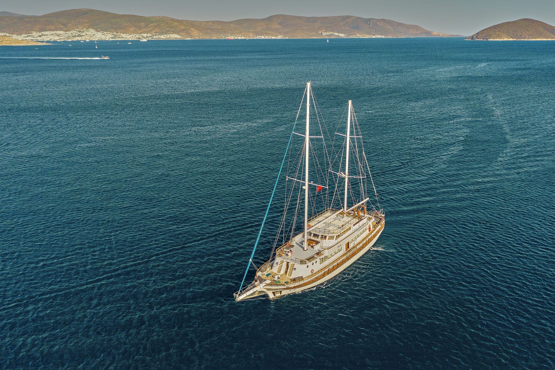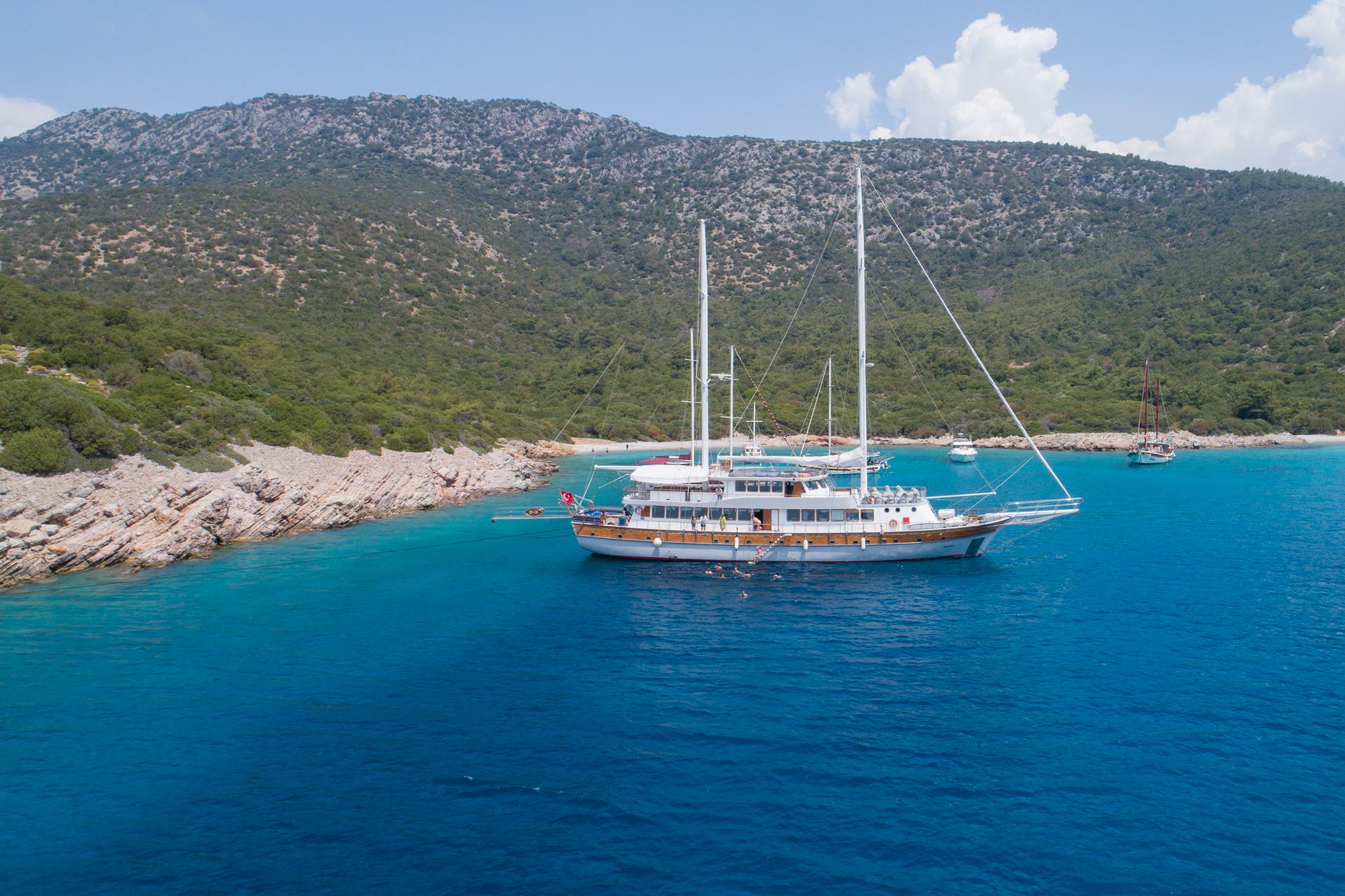 | Гулет Boreas — это 43-метровая яхта, построенная в 2010 году и обновлённая в 2023 году. На борту 16 кают: 8 двухместных, 6 трёхместных и 2 одноместные, всего до 36 гостей. Каждая каюта оснащена кондиционером и отдельной ванной комнатой. Кондиционер работает 18 часов в сутки. Ширина корпуса 10 метров обеспечивает просторные палубы, включающие обеденные зоны с навесом, мягкие лаундж-зоны и обширные места для загара. Интерьер салона оформлен со вкусом и включает зону отдыха и обеденный стол. Boreas предлагает разнообразные водные развлечения: тендер мощностью 50 л.с., SUP-борд, водные лыжи, ринго, каноэ, снаряжение для сноркелинга и рыбалки. Яхта оснащена двумя двигателями Cummins мощностью по 450 л.с., а также генераторами 115 кВА, 41 кВА и 13 кВА, что позволяет развивать скорость 10 узлов. Boreas идеально подойдёт для больших компаний, которые хотят насладиться комфортным и увлекательным «Голубым круизом». |