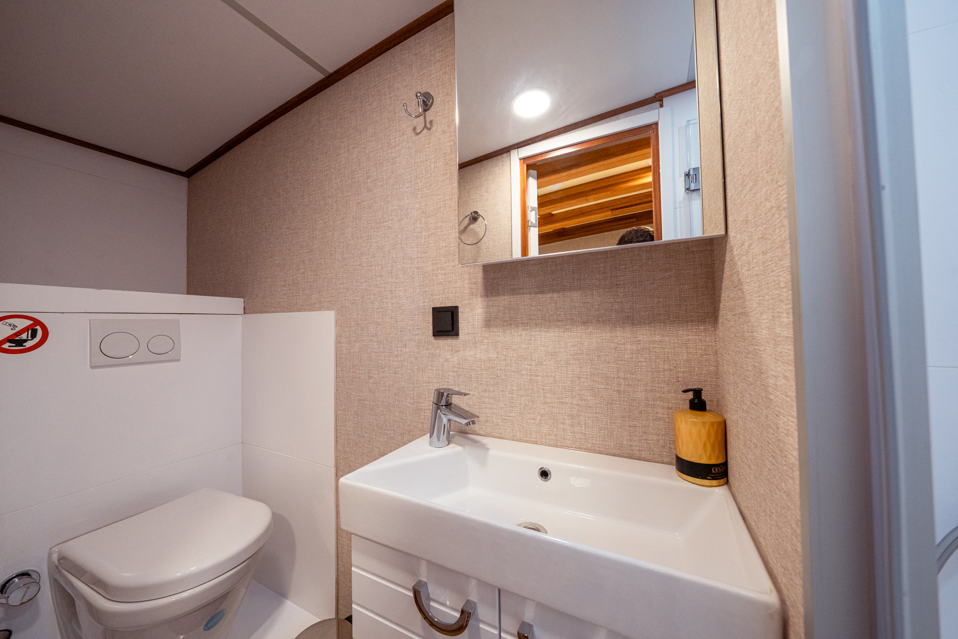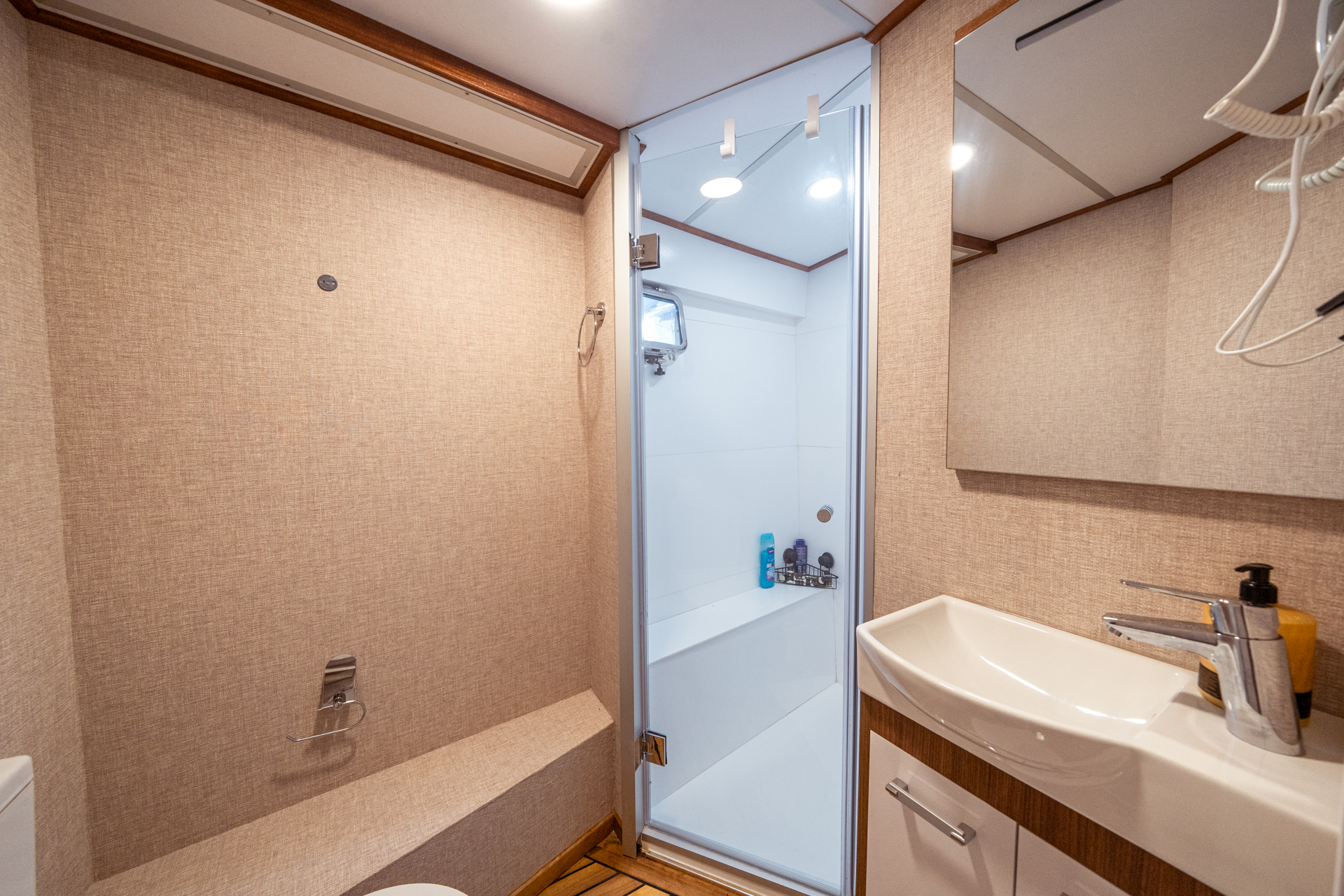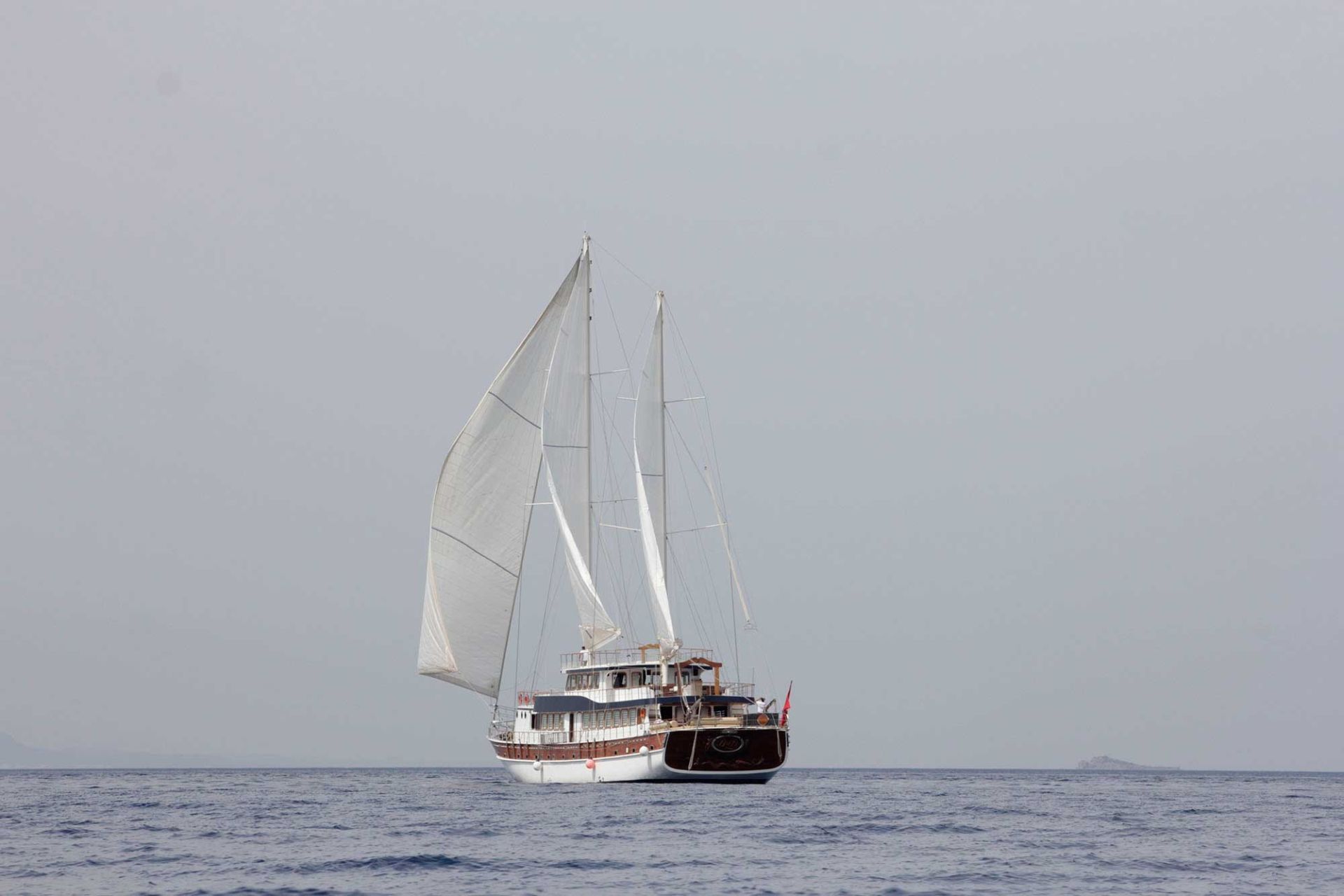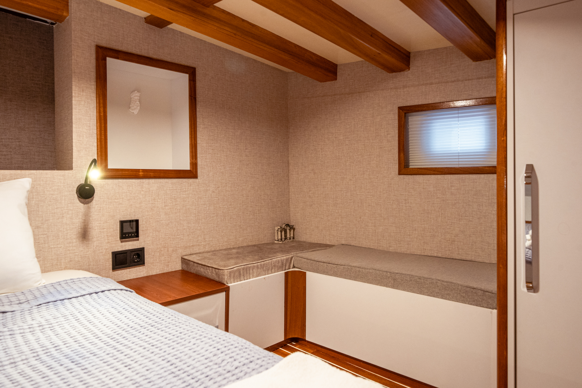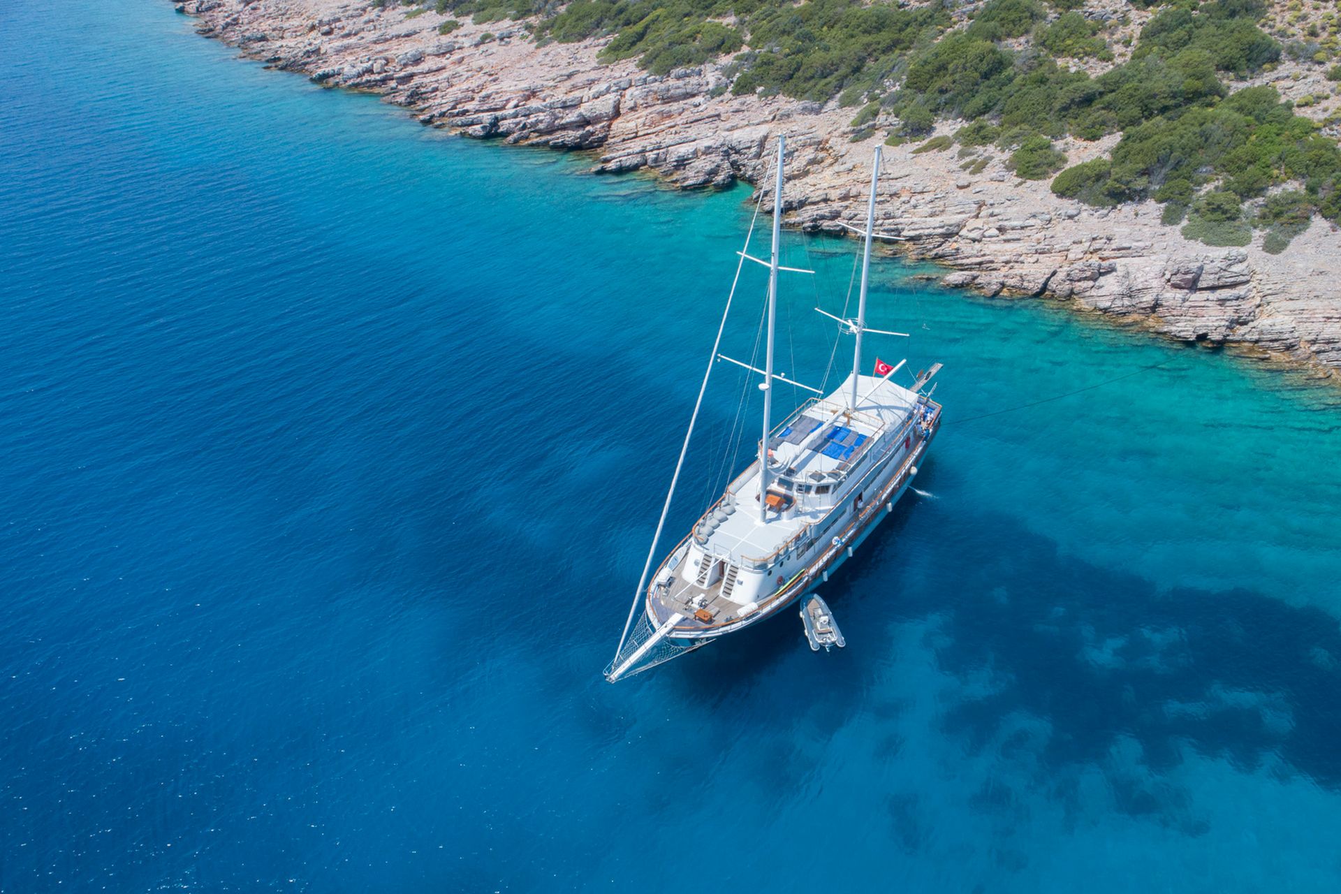 | Гулет Boreas — это 43-метровая яхта, построенная в 2010 году и обновлённая в 2023 году. На борту 16 кают: 8 двухместных, 6 трёхместных и 2 одноместные, всего до 36 гостей. Каждая каюта оснащена кондиционером и отдельной ванной комнатой. Кондиционер работает 18 часов в сутки. Ширина корпуса 10 метров обеспечивает просторные палубы, включающие обеденные зоны с навесом, мягкие лаундж-зоны и обширные места для загара. Интерьер салона оформлен со вкусом и включает зону отдыха и обеденный стол. Boreas предлагает разнообразные водные развлечения: тендер мощностью 50 л.с., SUP-борд, водные лыжи, ринго, каноэ, снаряжение для сноркелинга и рыбалки. Яхта оснащена двумя двигателями Cummins мощностью по 450 л.с., а также генераторами 115 кВА, 41 кВА и 13 кВА, что позволяет развивать скорость 10 узлов. Boreas идеально подойдёт для больших компаний, которые хотят насладиться комфортным и увлекательным «Голубым круизом». |