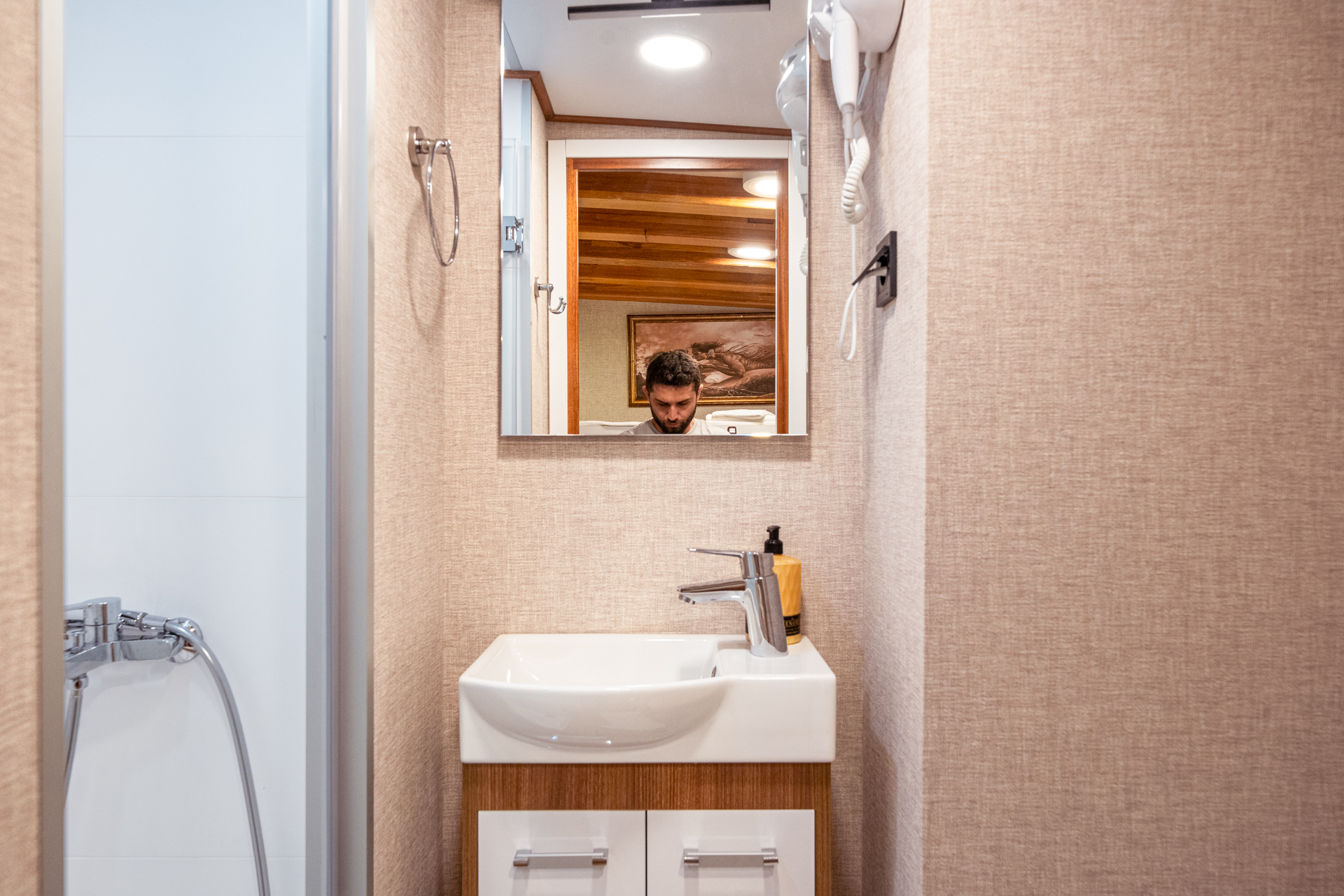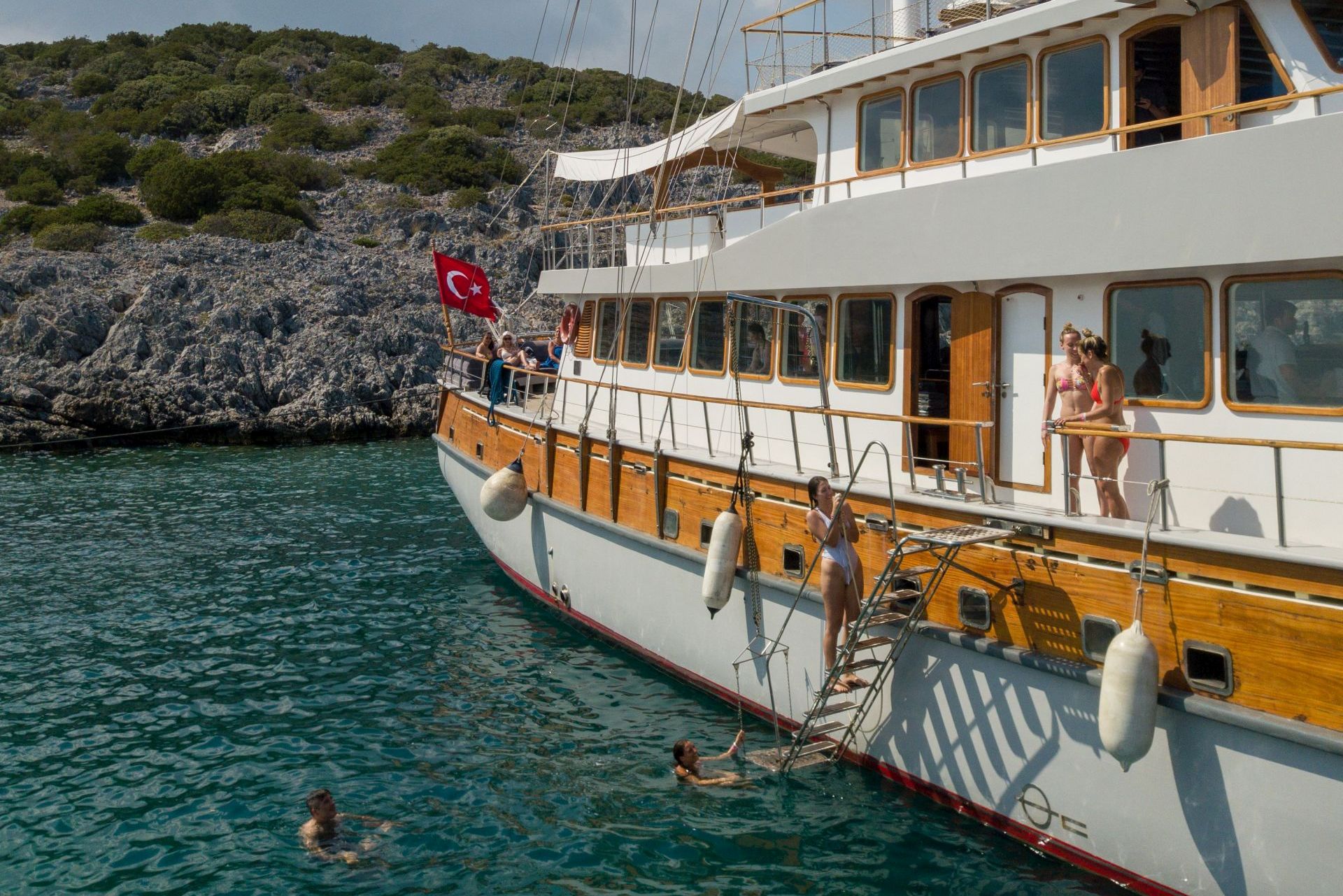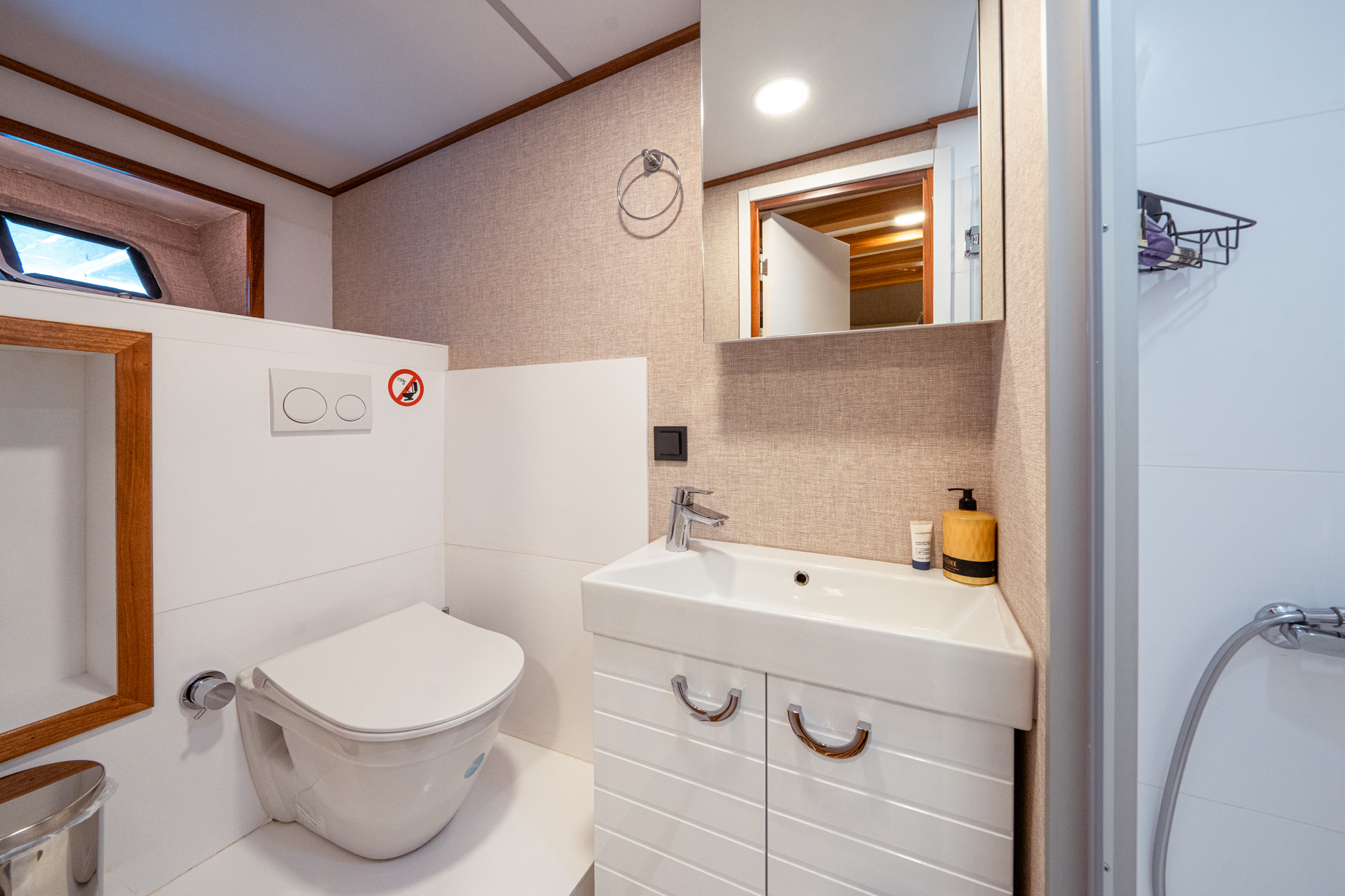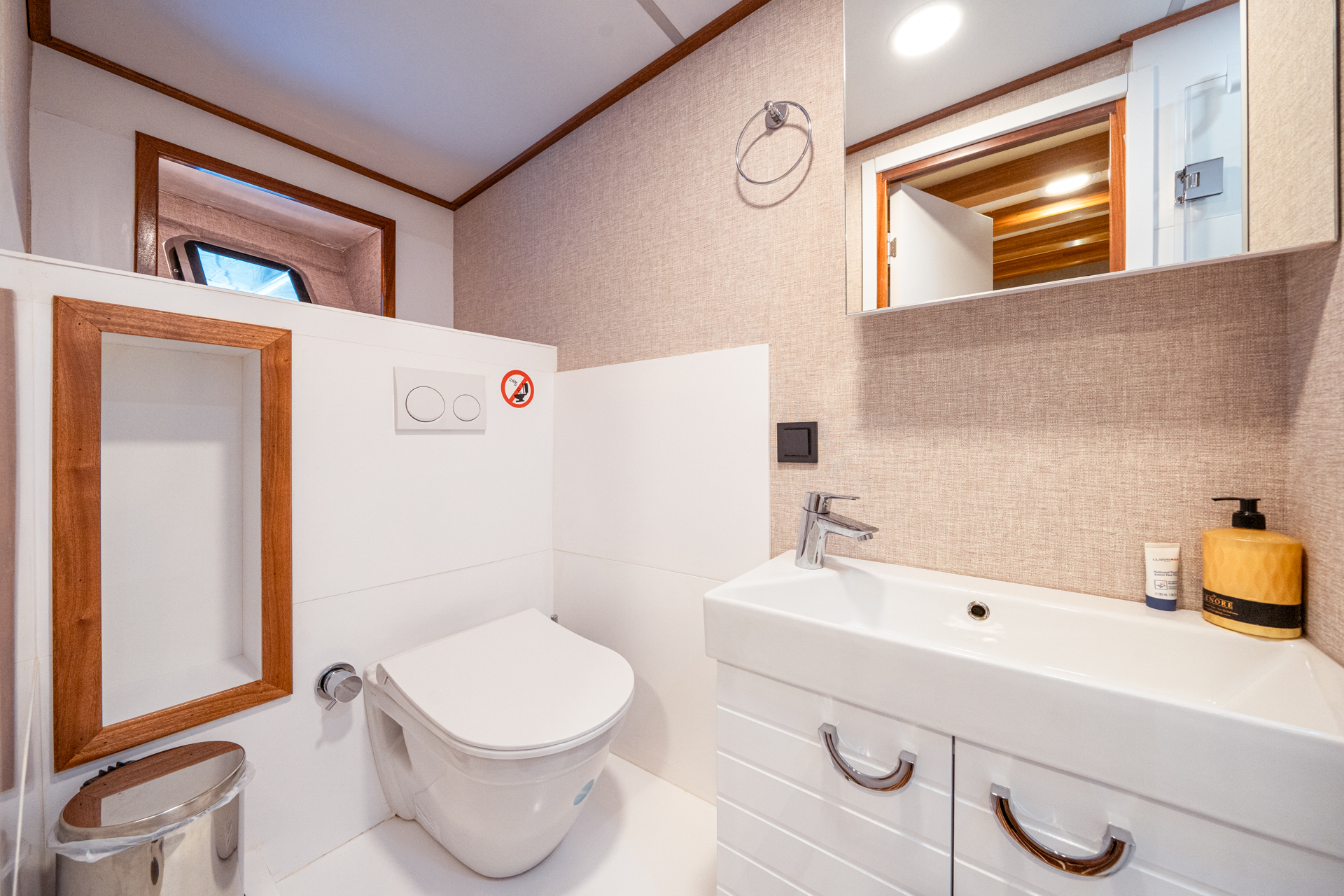 | Гулет Boreas — это 43-метровая яхта, построенная в 2010 году и обновлённая в 2023 году. На борту 16 кают: 8 двухместных, 6 трёхместных и 2 одноместные, всего до 36 гостей. Каждая каюта оснащена кондиционером и отдельной ванной комнатой. Кондиционер работает 18 часов в сутки. Ширина корпуса 10 метров обеспечивает просторные палубы, включающие обеденные зоны с навесом, мягкие лаундж-зоны и обширные места для загара. Интерьер салона оформлен со вкусом и включает зону отдыха и обеденный стол. Boreas предлагает разнообразные водные развлечения: тендер мощностью 50 л.с., SUP-борд, водные лыжи, ринго, каноэ, снаряжение для сноркелинга и рыбалки. Яхта оснащена двумя двигателями Cummins мощностью по 450 л.с., а также генераторами 115 кВА, 41 кВА и 13 кВА, что позволяет развивать скорость 10 узлов. Boreas идеально подойдёт для больших компаний, которые хотят насладиться комфортным и увлекательным «Голубым круизом». |