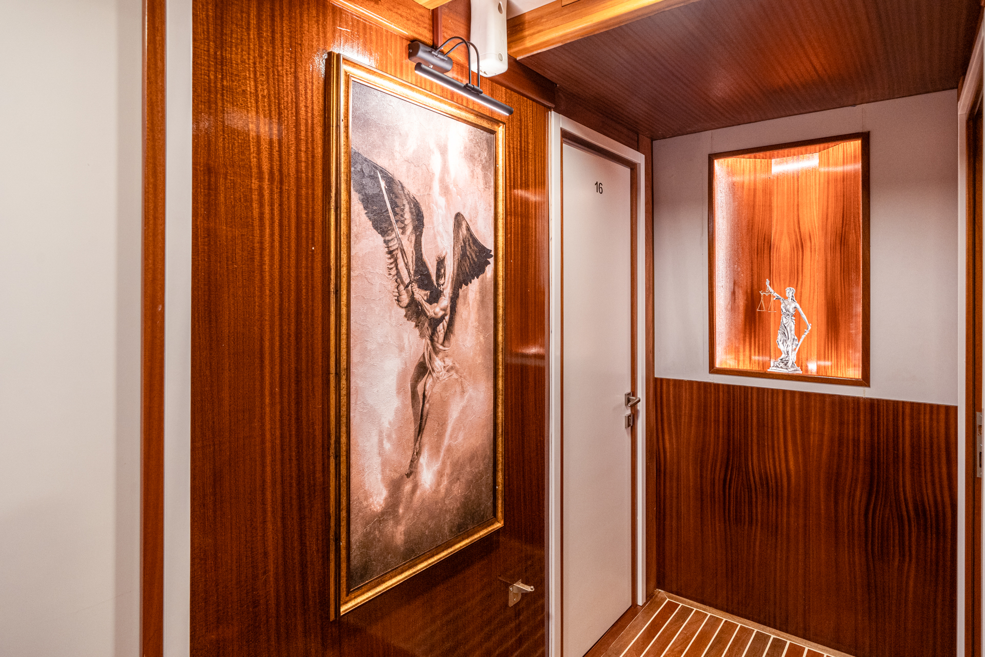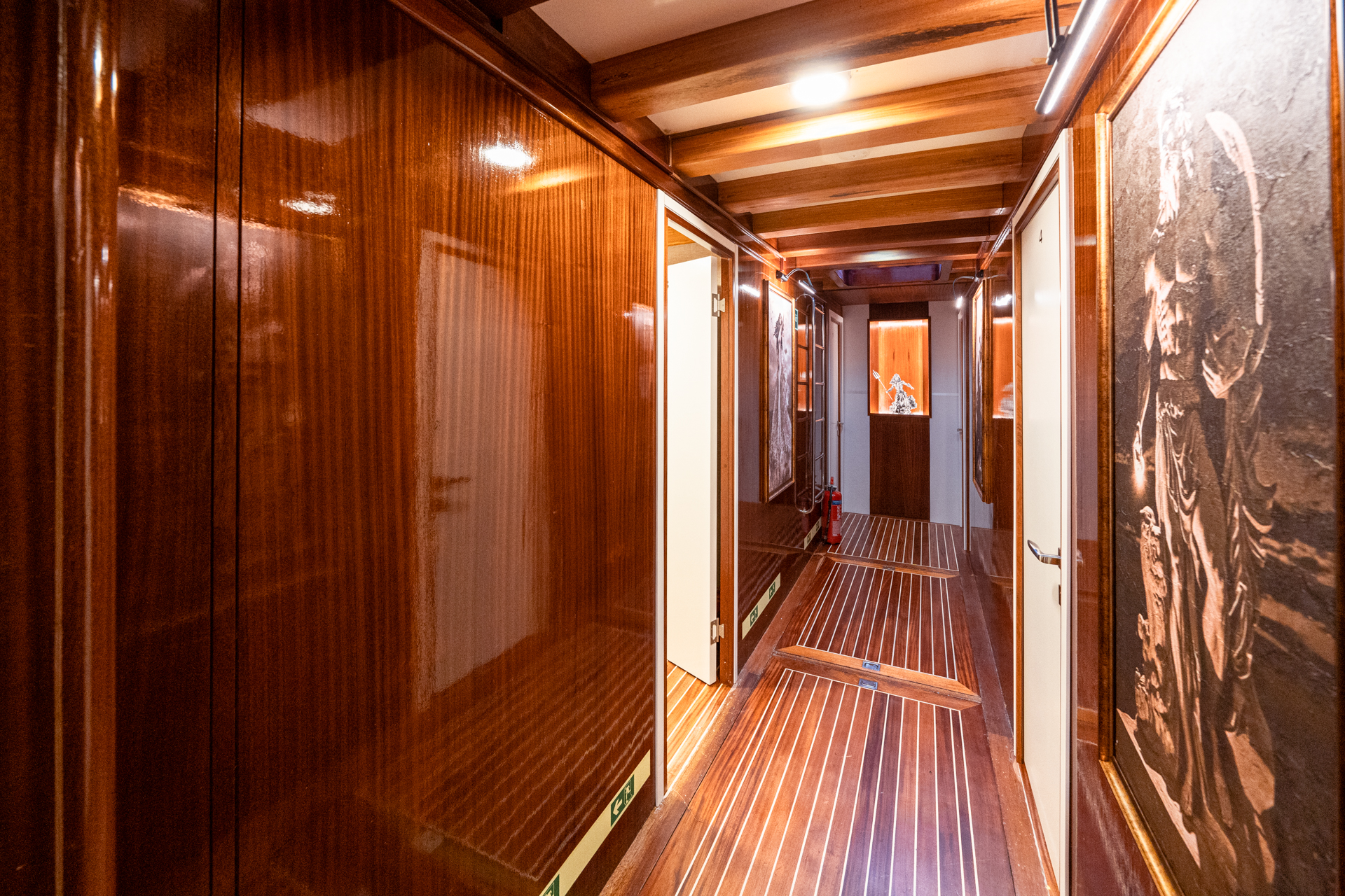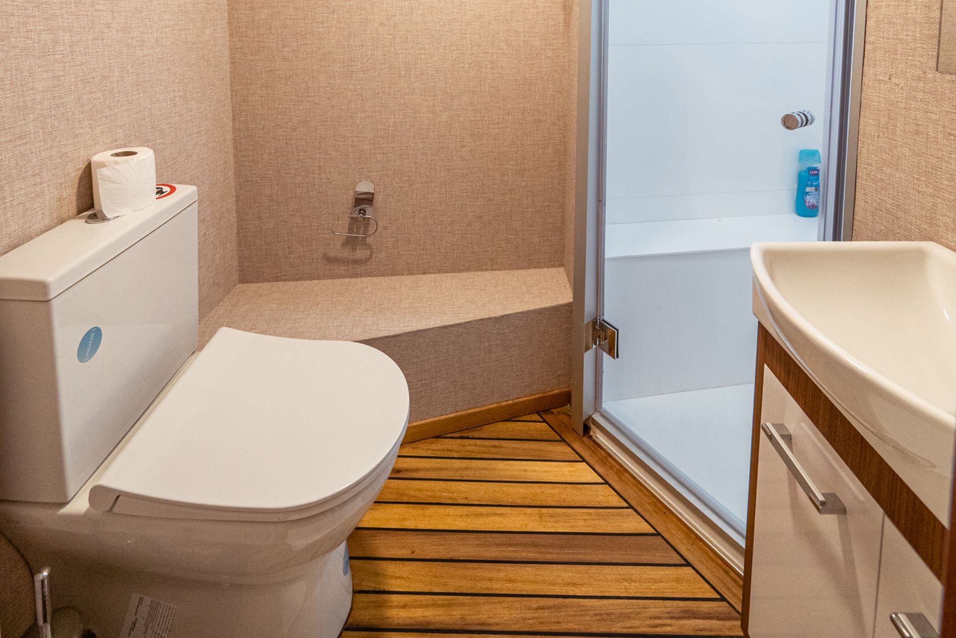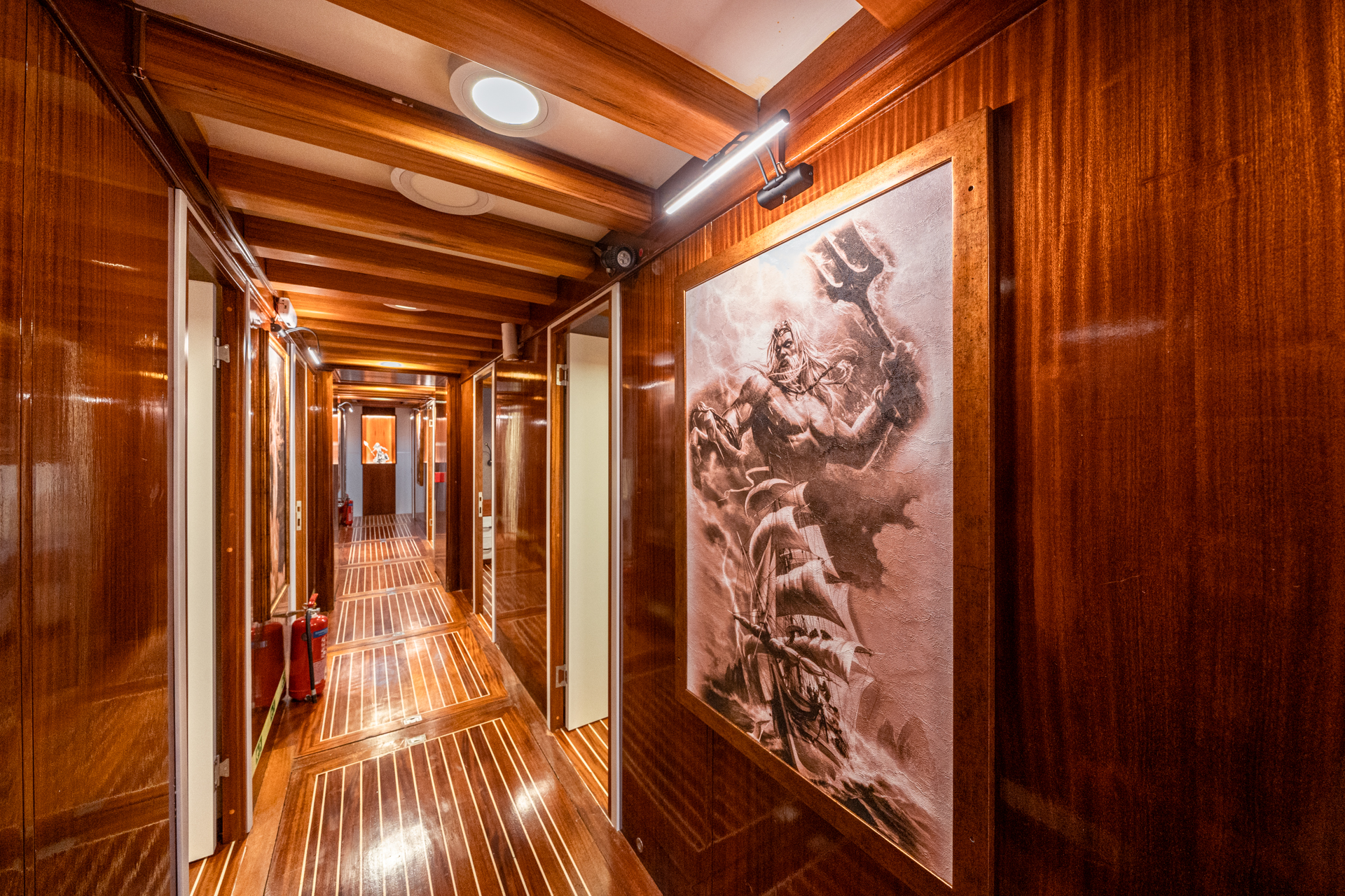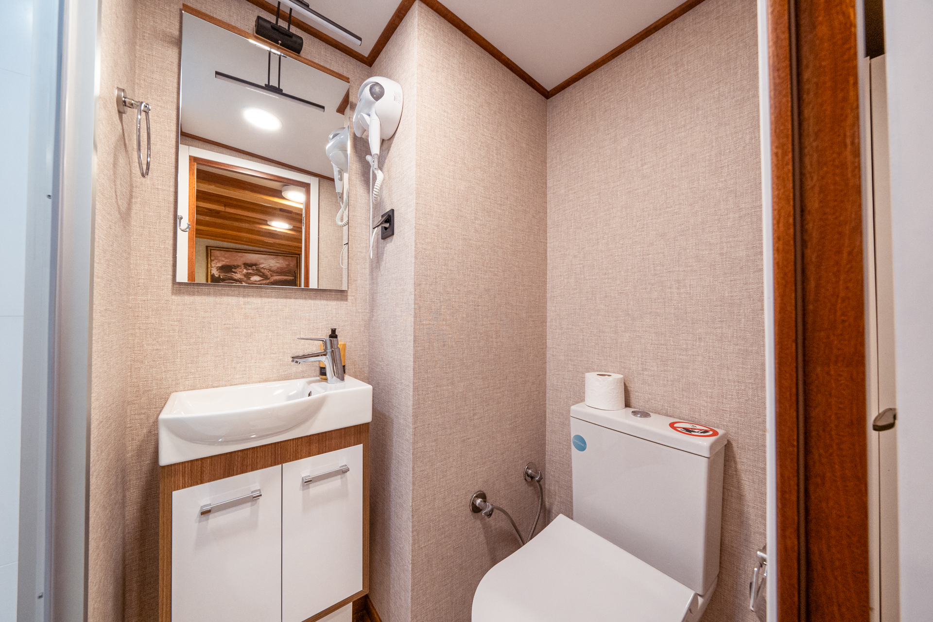 | 16 кают, до 36 гостей; 4 мастер-каюты, 8 двухместных кают, 4 каюты с четырьмя кроватями, кондиционер в салоне и во всех каютах, телевизор во всех каютах, душевая кабина и туалеты домашнего типа во всех каютах, отдельные каюты для экипажа |