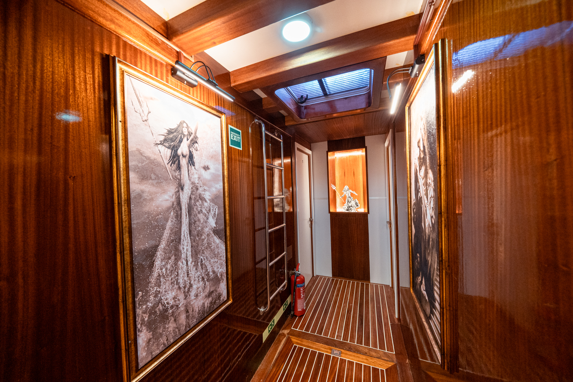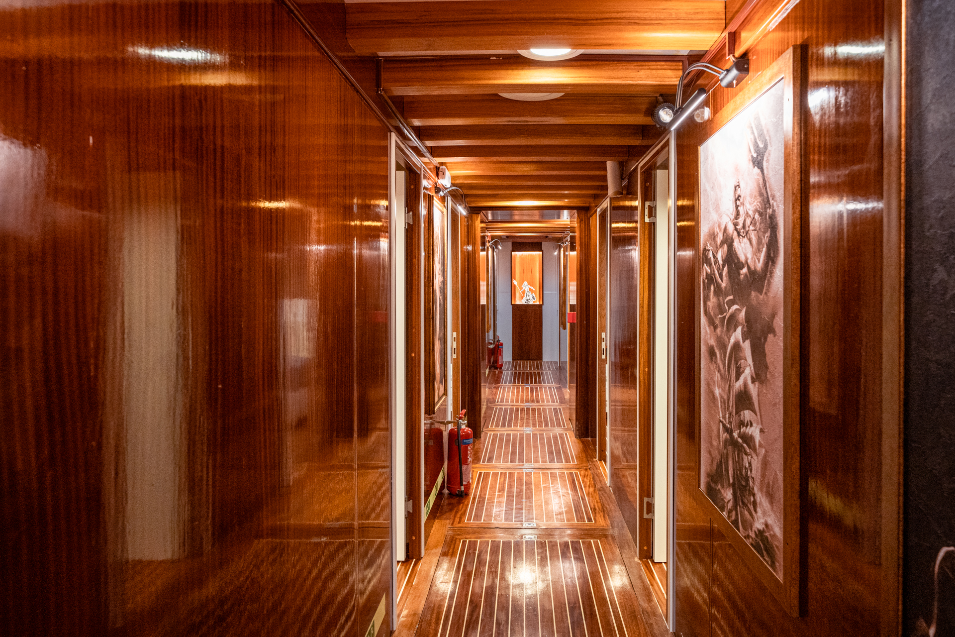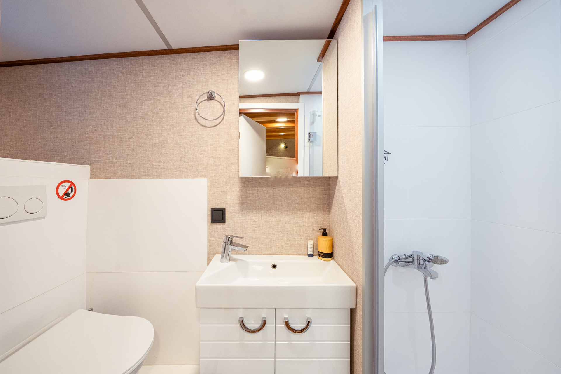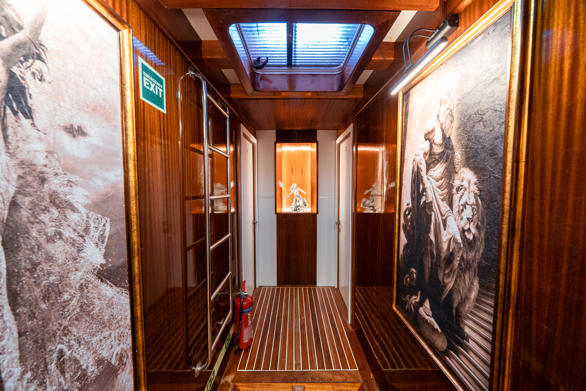 | 16 кают, до 36 гостей; 4 мастер-каюты, 8 двухместных кают, 4 каюты с четырьмя кроватями, кондиционер в салоне и во всех каютах, телевизор во всех каютах, душевая кабина и туалеты домашнего типа во всех каютах, отдельные каюты для экипажа |