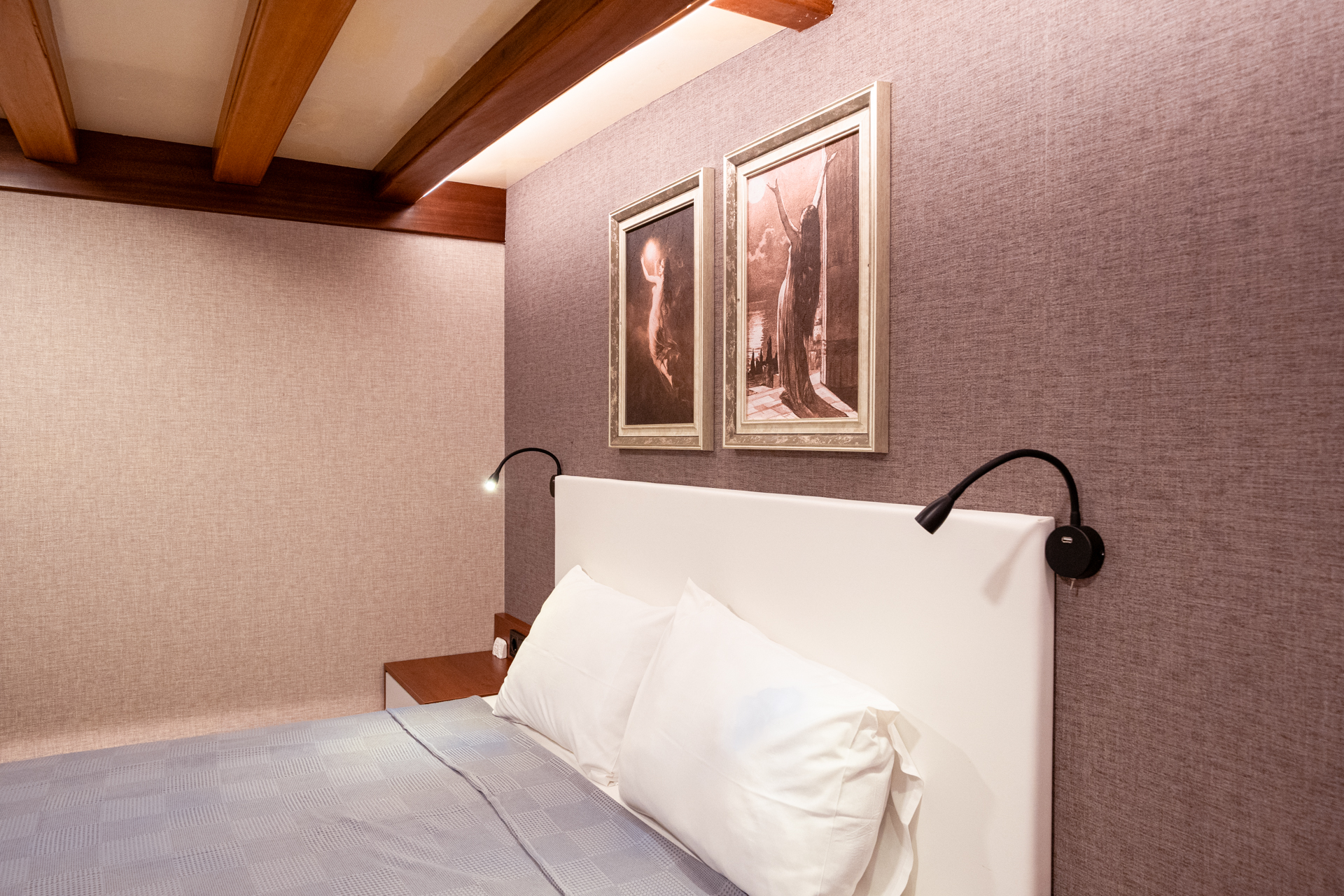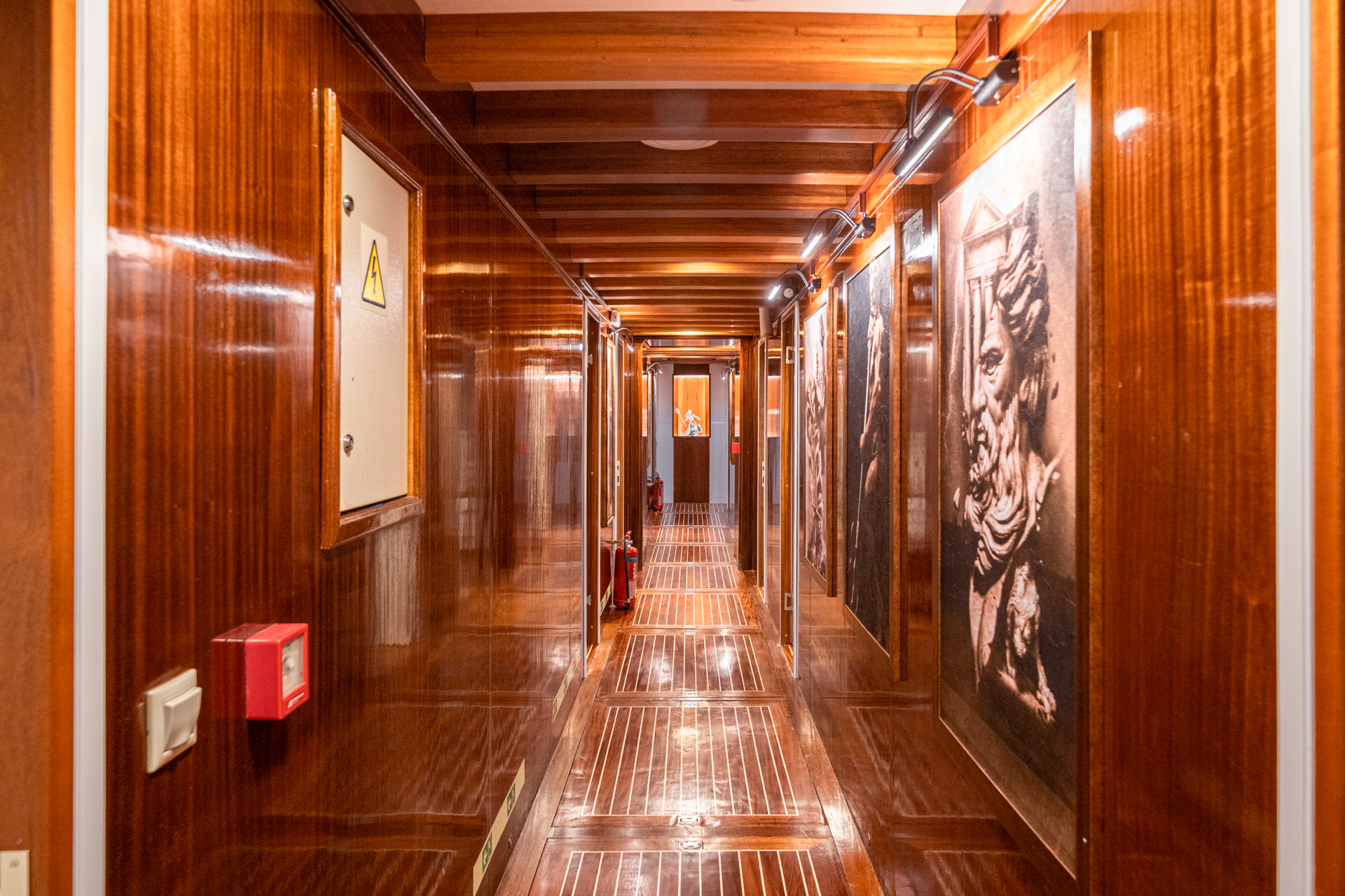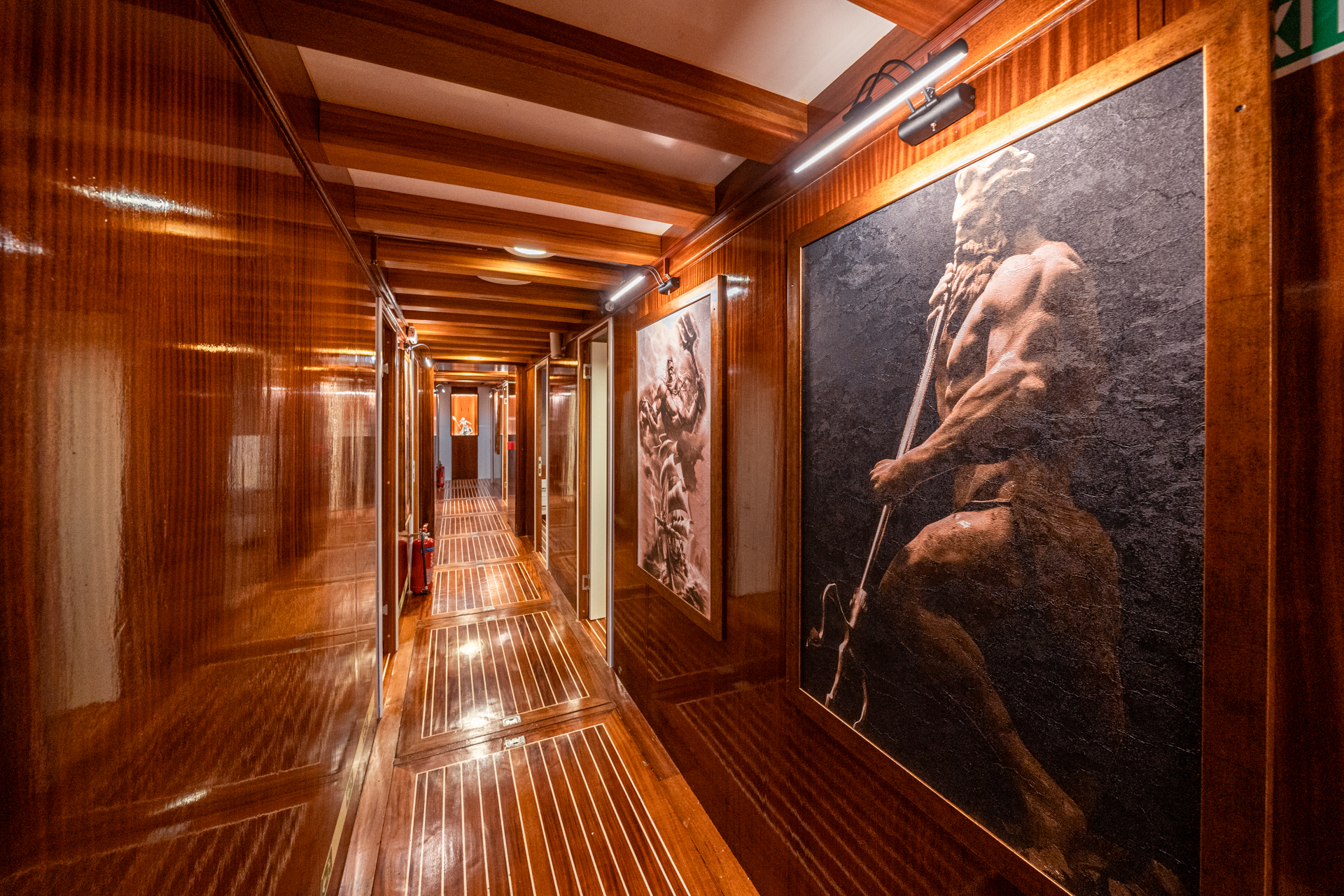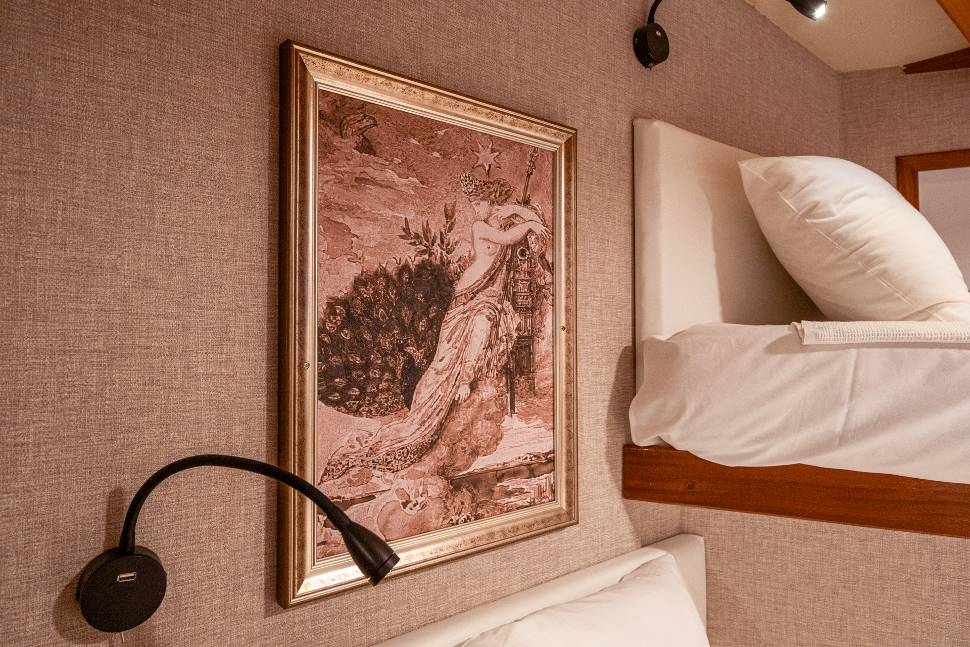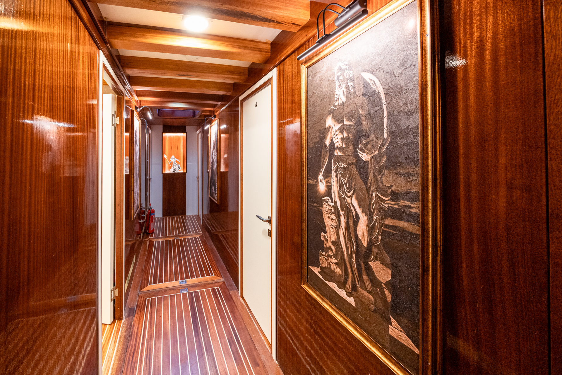 | 16 кают, до 36 гостей; 4 мастер-каюты, 8 двухместных кают, 4 каюты с четырьмя кроватями, кондиционер в салоне и во всех каютах, телевизор во всех каютах, душевая кабина и туалеты домашнего типа во всех каютах, отдельные каюты для экипажа |