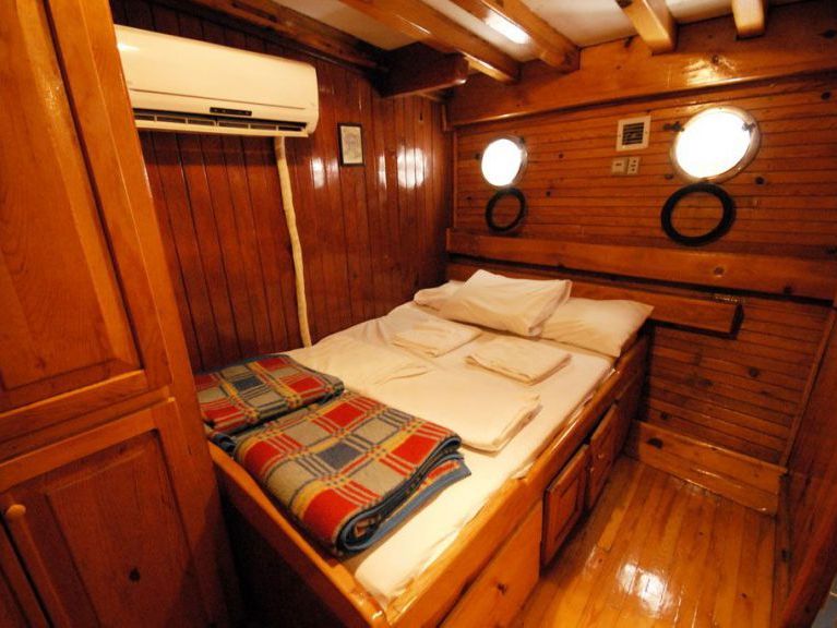 | Гулет Pinar 111 — это 33-метровая яхта, построенная в 1998 году и полностью обновлённая в 2009 году. На борту 16 кают: 10 двухместных, 4 с двумя односпальными кроватями и 2 трёхместные, рассчитанные на 34 гостей. Каждая каюта оснащена отдельной ванной комнатой, кондиционером и необходимыми удобствами для комфортного отдыха. Ширина корпуса 8,5 метра обеспечивает просторные палубы, включая теневые зоны для обедов, мягкие зоны отдыха и места для загара. Внутри салона находятся бар, обеденный стол и зона отдыха с классической деревянной отделкой. Pinar 111 предлагает широкий выбор оборудования для водных развлечений: каноэ, водные лыжи, наколенники для катания, доски для серфинга, снаряжение для сноркелинга и рыбалки. Дополнительные удобства включают шезлонги, душ на палубе и два сервисных тендера. Яхта оснащена двумя двигателями мощностью по 440 л.с. и генератором 25 кВА, что позволяет ей развивать скорость 10 узлов. Pinar 111 — идеальный вариант для больших групп, ищущих доступные «Голубые круизы» по Турции благодаря своей вместимости и удобствам. |