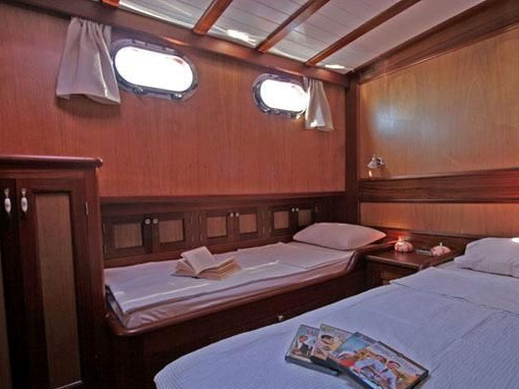 Кондиционированные каюты нашего гулета имеют удобный душ и туалет. Внутренние и внешние помещения, гостиная, палуба и кухня нашего гулета Hayal 62 были со вкусом оформлены с использованием высококачественных материалов. Капитан и повар, имеющие опыт в обслуживании круизов на яхте Hayal 62, к вашим услугам для вашего комфорта во время вашего отпуска на лодке. Ваша команда из 2 человек будет сопровождать вас на протяжении всего отпуска для обслуживания, питания, уборки и организации ежедневных мероприятий. От наших клиентов, которые арендовали нашу гулету Hayal 62. Отзывы и рекомендации, которые мы получили за последние годы, гарантируют стопроцентную удовлетворенность клиентов на нашей яхте Hayal 62.