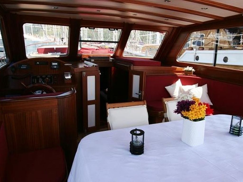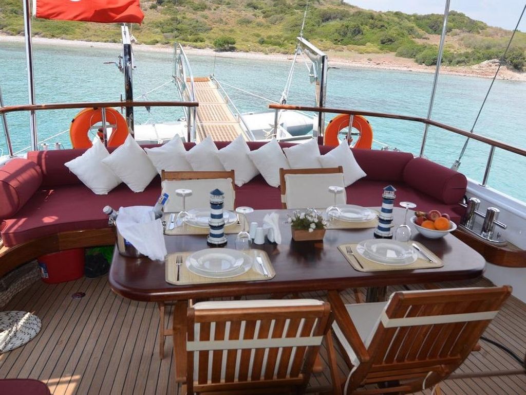Наша лодка, которая была подготовлена с учетом всех потребностей наших гостей Blue Voyage, была построена в 2012 году и имеет длину 15 м. в длину и 5 м. в ширину. Пока вы наслаждаетесь своим синим путешествием во внутренних помещениях и на палубе нашей гулеты, вы дополните свое удовольствие блюдами, приготовленными нашим опытным персоналом на нашей кухне. Наш опытный персонал, состоящий из капитана и повара, будет готовить для вас блюда Эгейского и Средиземноморья на протяжении всего вашего синего круиза, обеспечивать вас напитками, обслуживанием, ежедневной уборкой и будет с вами, когда вам это понадобится на лодке.