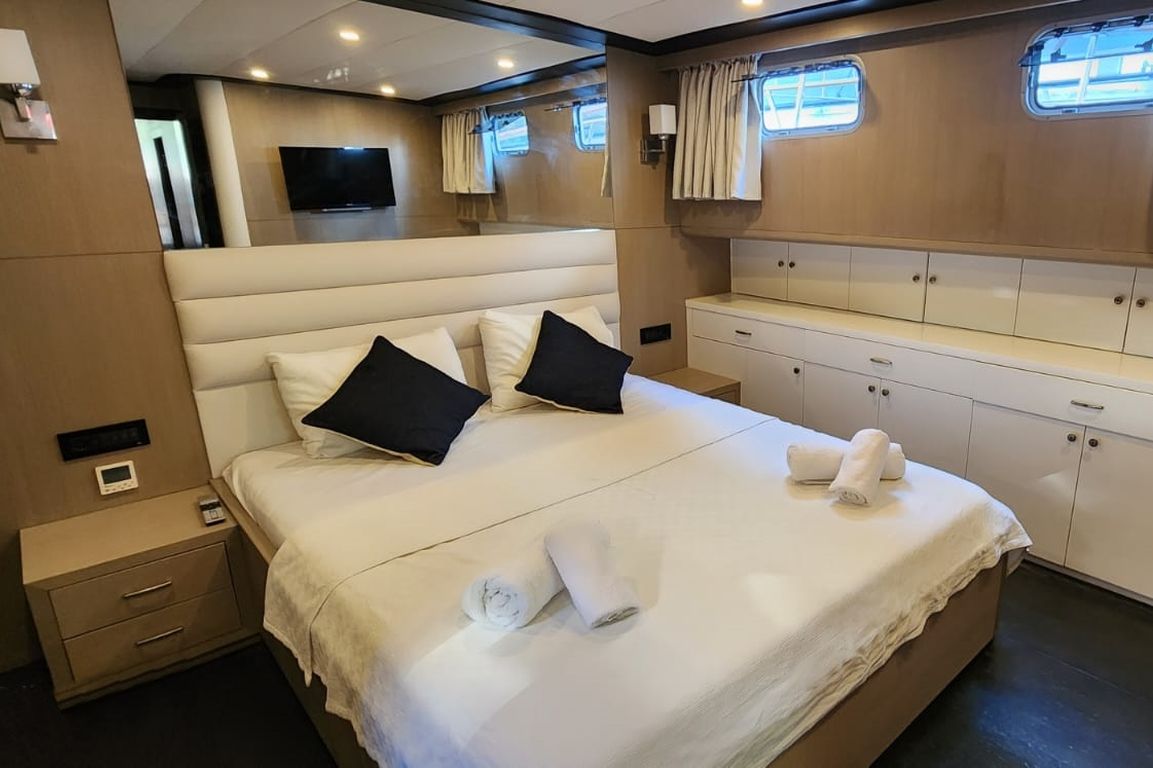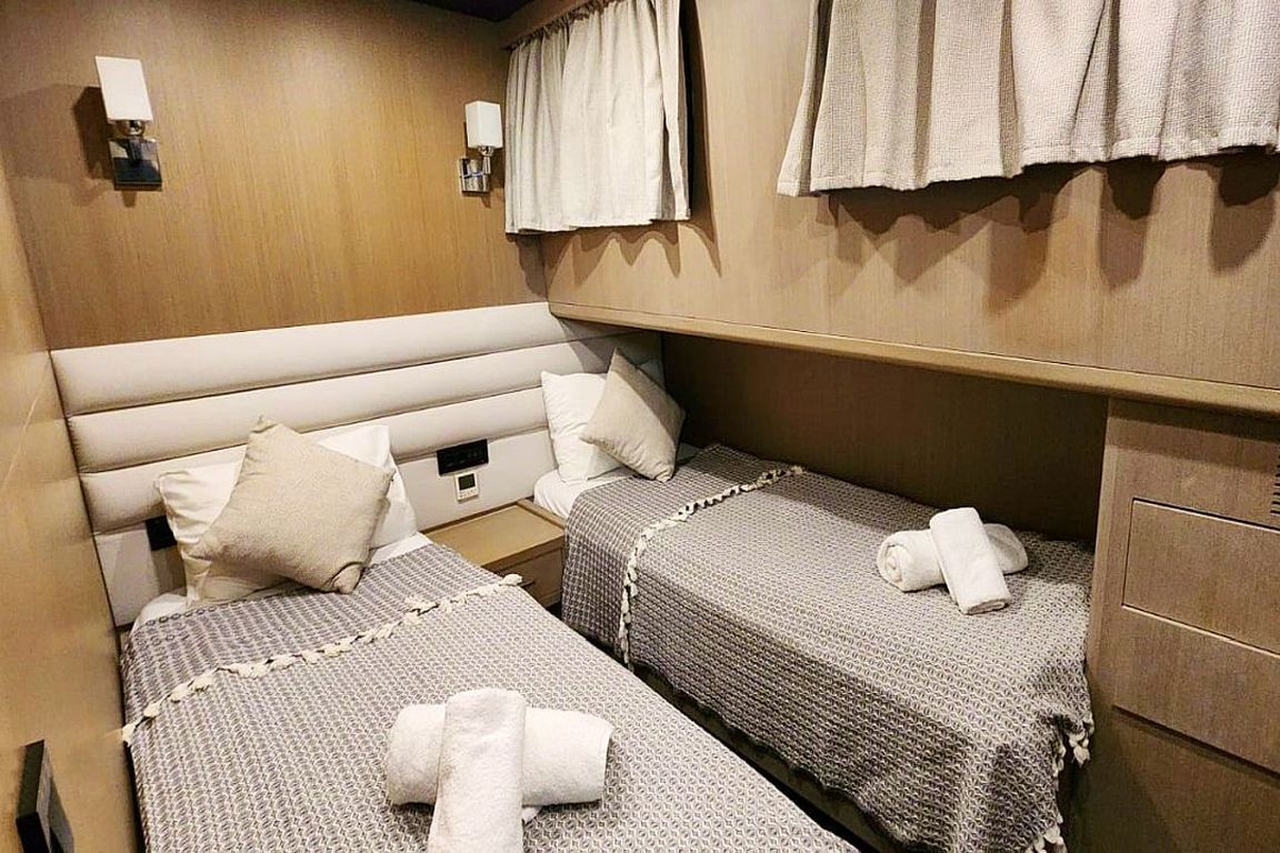 Гулет Eser 1 предлагает размещение в общей сложности для 6 гостей в 3 двухместных каютах. Каюты нашего гулета оснащены кондиционерами, удобными душевыми и туалетами. был со вкусом оформлен с использованием высококачественных материалов во внутренних и внешних помещениях, гостиной, палубе и кухне нашего гулета.