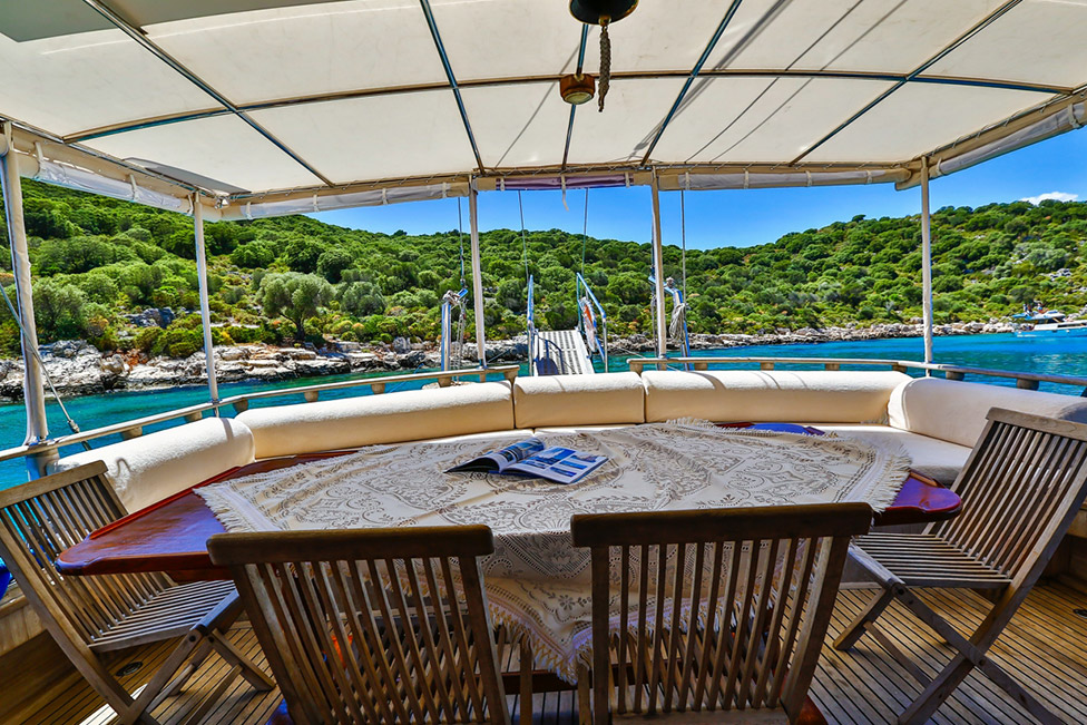 Капитан и повар яхты Evita, имеющие опыт обслуживания в синем круизе, к вашим услугам для вашего комфорта во время вашего отпуска на лодке. Ваша команда из 2 человек будет сопровождать вас на протяжении всего отпуска для обслуживания, питания, уборки и организации ежедневных мероприятий. Один из наших клиентов в аренде, которую мы осуществили на нашем гулете. Отзывы и рекомендации, которые мы получили за последние годы, гарантируют стопроцентное удовлетворение клиентов на нашей яхте Evita.