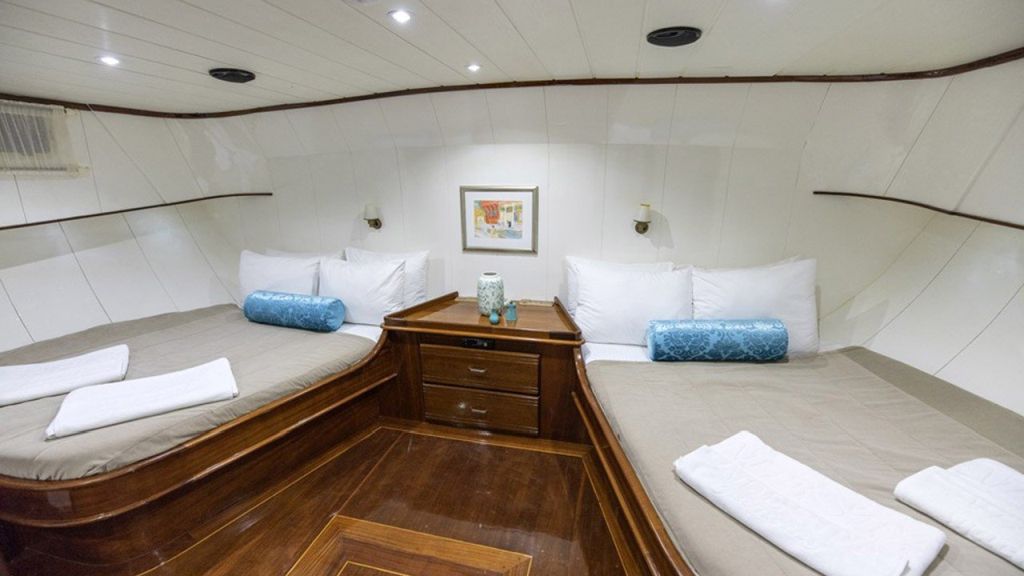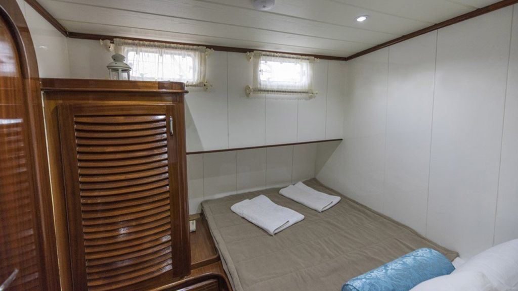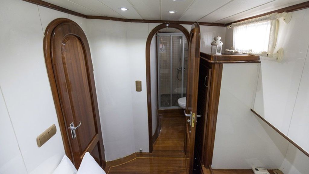 Гулет Faralya предлагает размещение в общей сложности для 6 гостей в 3 двухместных каютах. Каюты нашего гулета оснащены кондиционерами, удобными душевыми и туалетами. Внутренние и внешние помещения, гостиная, палуба и кухня нашей гулеты Faralya со вкусом оформлены с использованием высококачественных материалов.