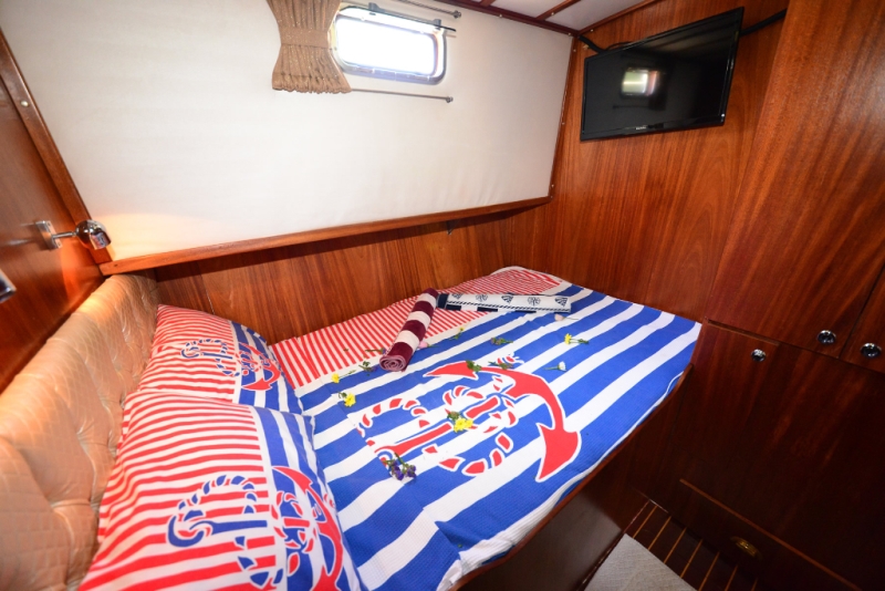| Гулет Kasikci — классическая деревянная яхта длиной 18 м, построенная в 2014 году; дарит тёплый и комфортный опыт «голубого круиза». Три каюты с двуспальными кроватями размещают до пяти гостей — идеальный вариант для пар или небольших семей, ищущих частный гулет в Турции. В каждой каюте — собственные душ и туалет; кондиционер работает 4 часа в день. На борту: уютная кормовая палуба с мягкими сиденьями и обеденным столом, приветливый внутренний салон и полностью укомплектованная камбуз-кухня. Силовая установка: двигатель Mercedes 170 л.с. и генераторы 6,5 + 3,5 кВА — для плавного и безопасного хода. Для водных активностей предусмотрены тендер с подвесным мотором 25 л.с., снаряжение для сноркелинга и рыбалки. По желанию можно организовать гидроциклы, seabob или SUP-доски. Планируя исследовать уединённые бухты Бодрума, Мармариса, Гёчека или Фетхие, вы найдёте в Kasikci расслабленный, аутентичный и запоминающийся «голубой вояж». |