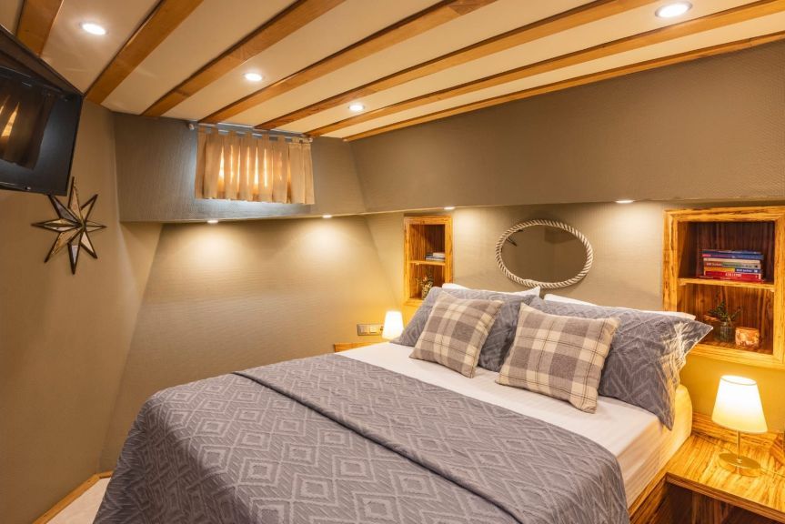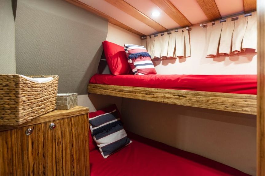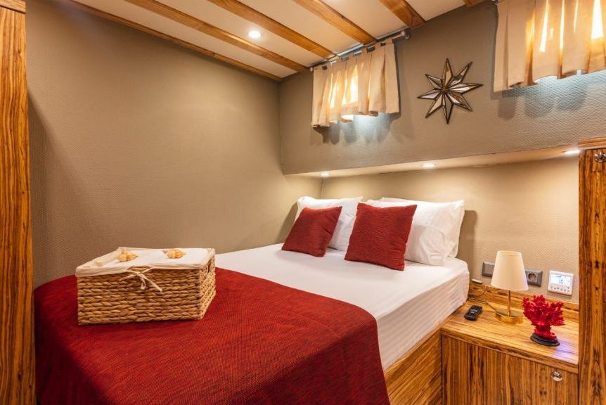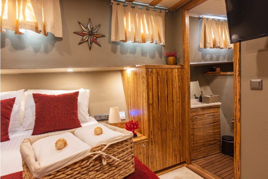 Гулет Le Rouge предлагает размещение в общей сложности для 6 гостей в 3 двухместных каютах. Каюты нашего гулета с кондиционером оснащены удобным душем и туалетом. Внутренние и внешние помещения, гостиная, палуба и кухня нашего гулета со вкусом оформлены с использованием высококачественных материалов.