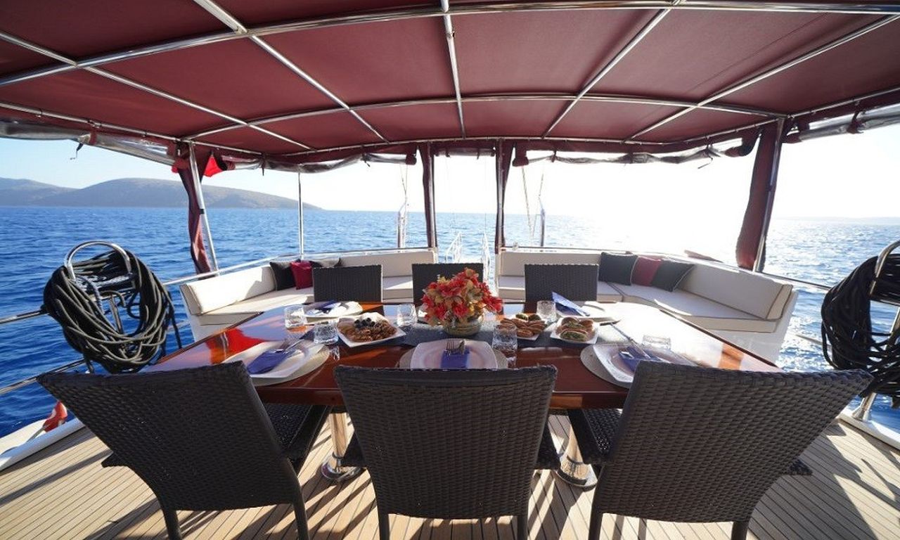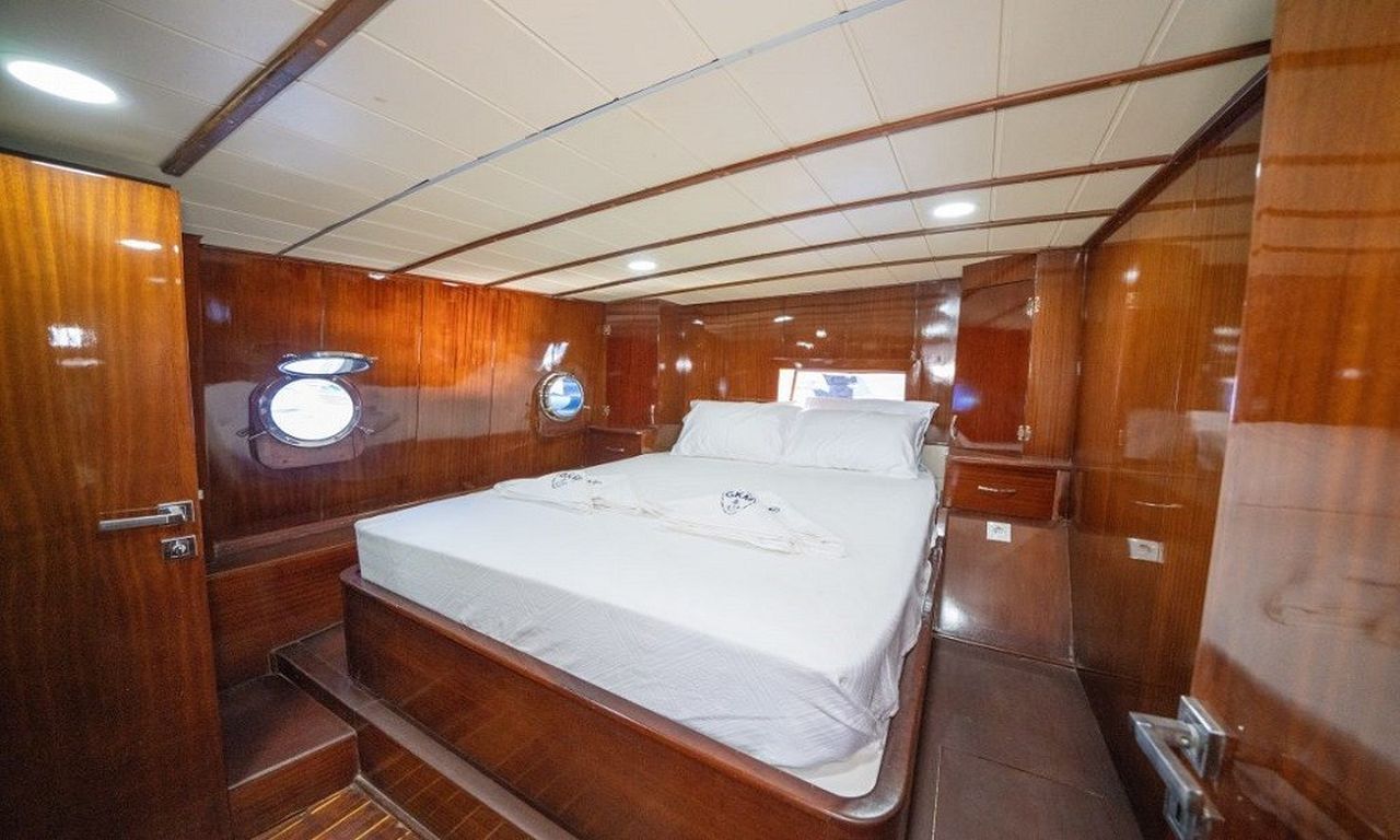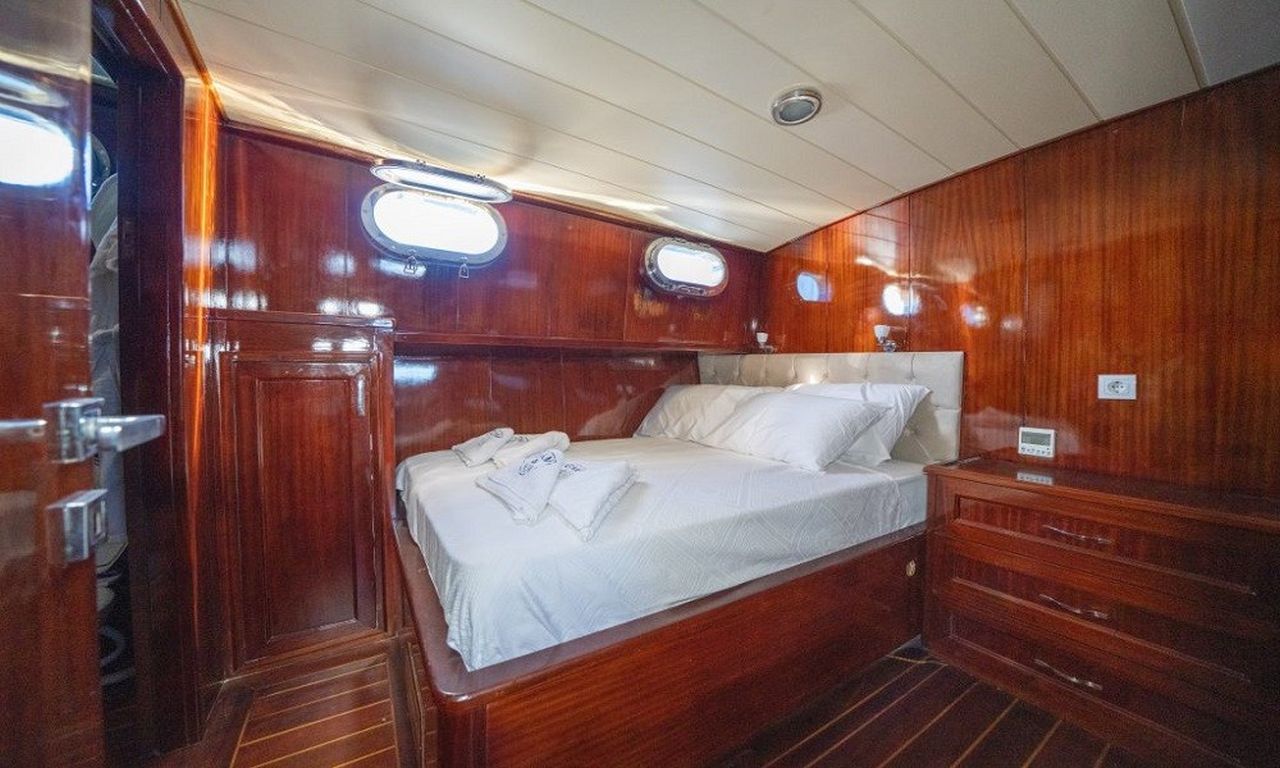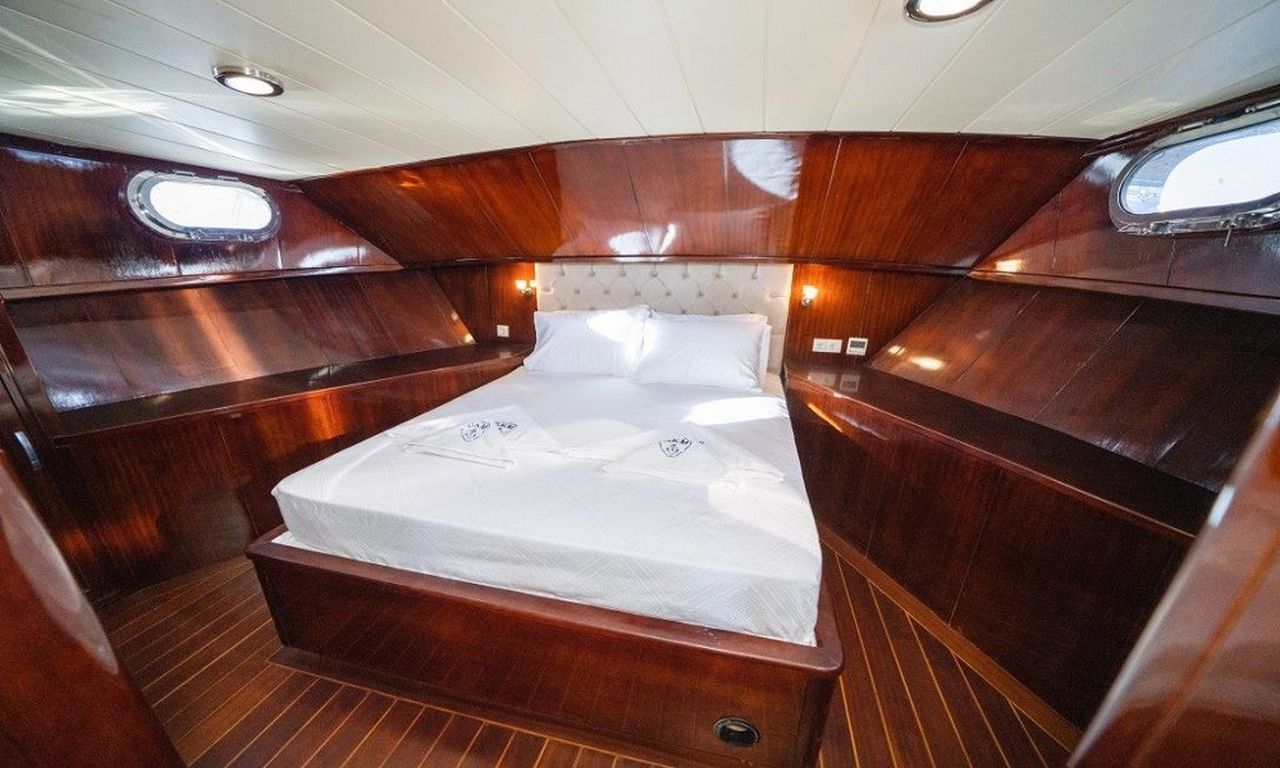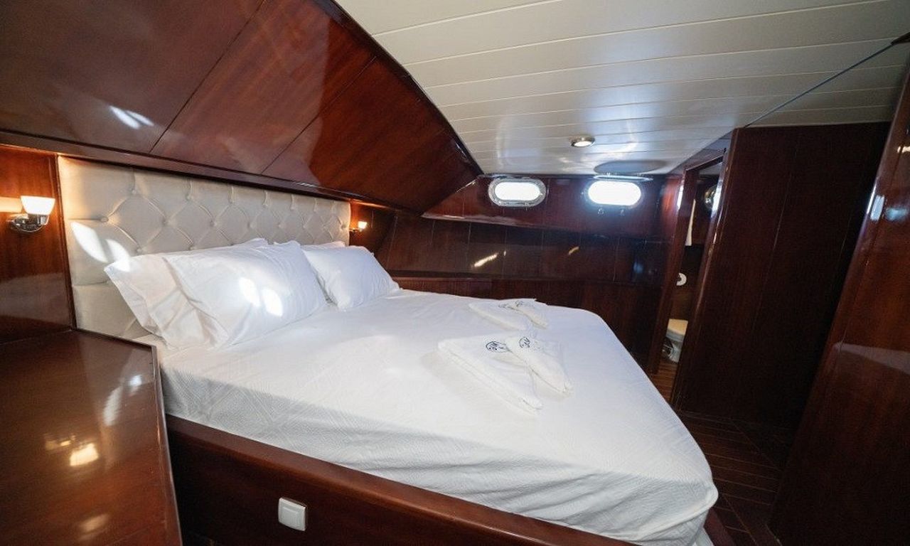 | Гулет Mehmet Bey 1 — делюкс-гулет длиной 20 м, построенный и спущенный на воду в 2022 году; современная и изящная интерпретация традиции «голубого круиза». На борту одна мастер-каюта и две дабл-каюты, каждая с частными удобствами; размещение — до шести гостей. Профессиональная команда из трёх человек обеспечивает высокий уровень комфорта и персонального сервиса. На борту сочетаются современные удобства и выверенный опыт: кондиционирование, мощные двигатели (364 BHP) и надёжные генераторы — плавный и комфортный ход. Яхта спроектирована и для релакса, и для общения; её крейсерские скорости подходят для исследования Турецкой Ривьеры. Из развлечений — музыкальная система, традиционные настольные игры (нарды, карты) и снаряжение для сноркелинга. Ширина корпуса 5,60 м обеспечивает щедрые площади палубы и салона, а заявленная крейсерская скорость 20 узлов (единицы не уточнены) даёт эффективные переходы между сияющими бухтами Бодрума, Мармариса, Фетхие или Гёчека. |