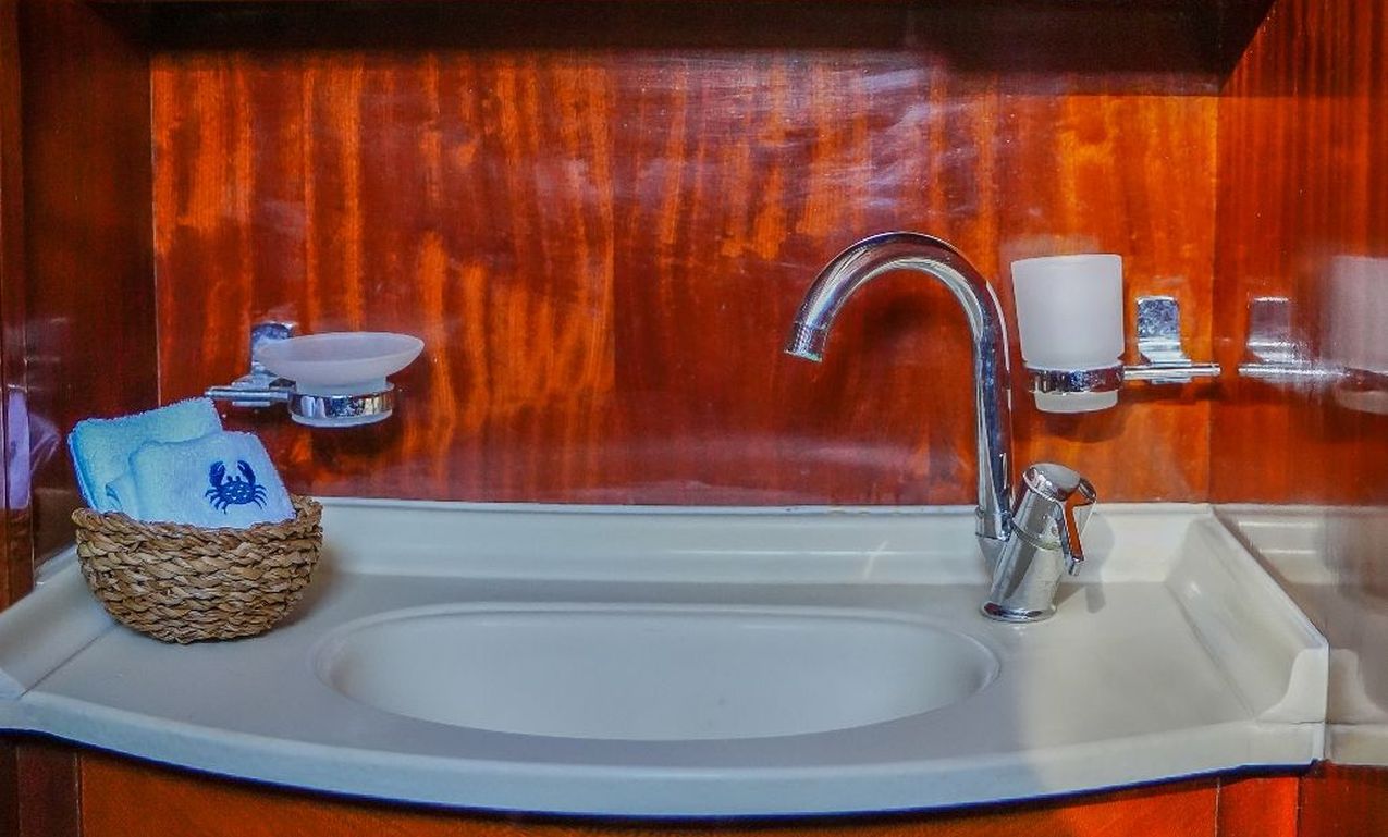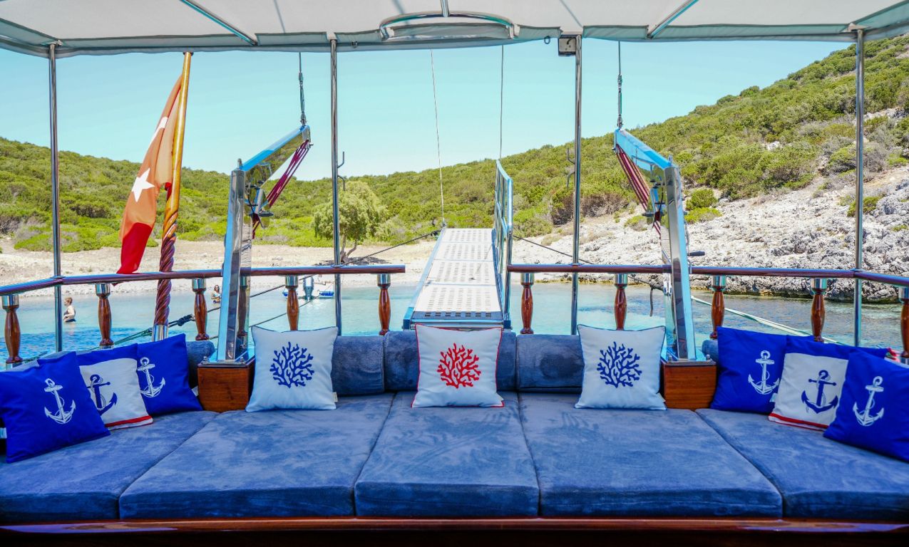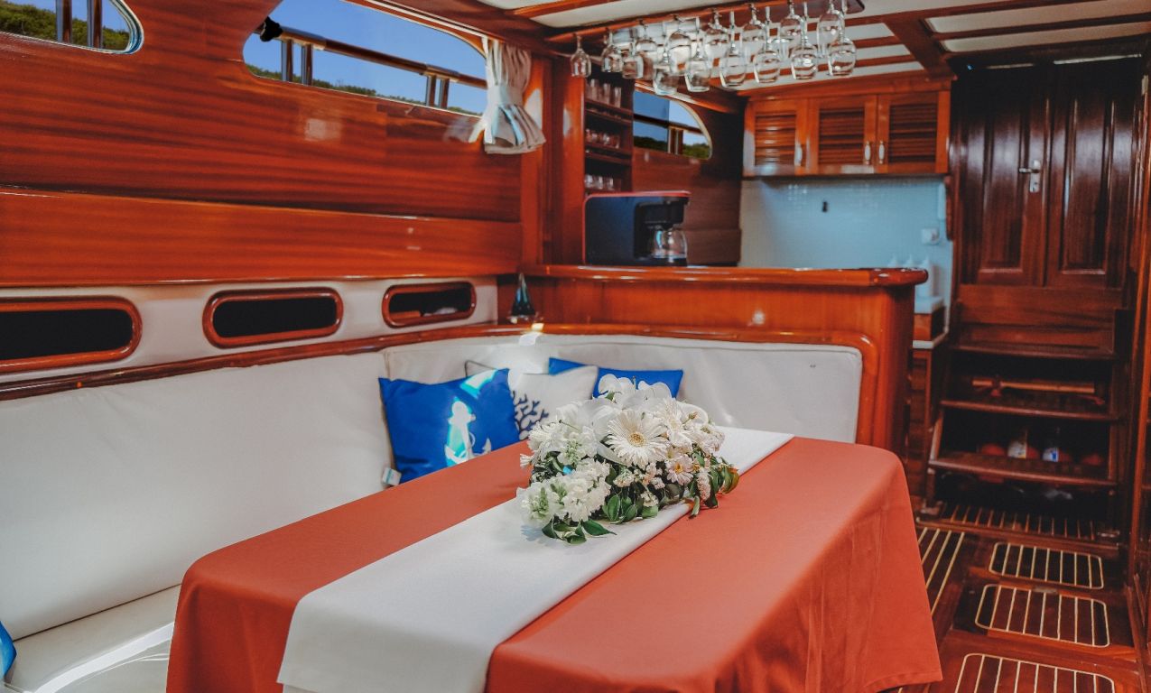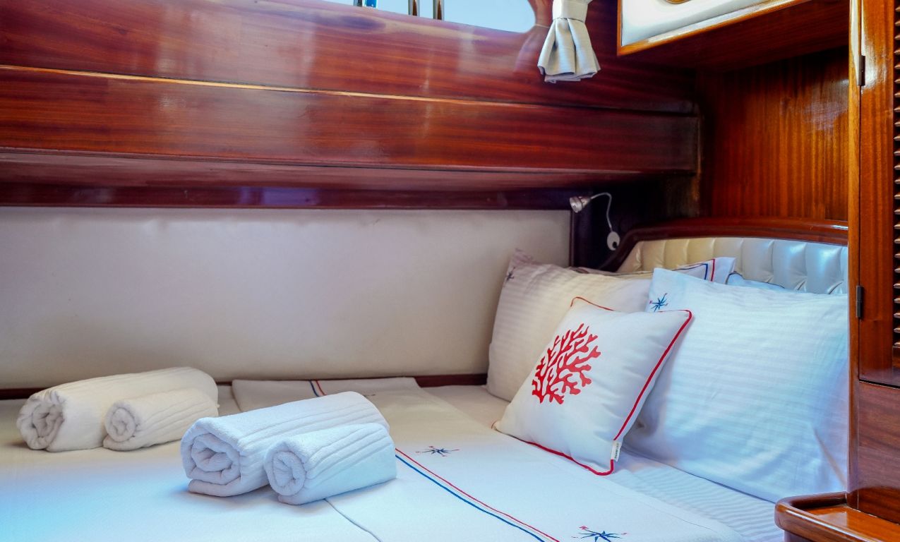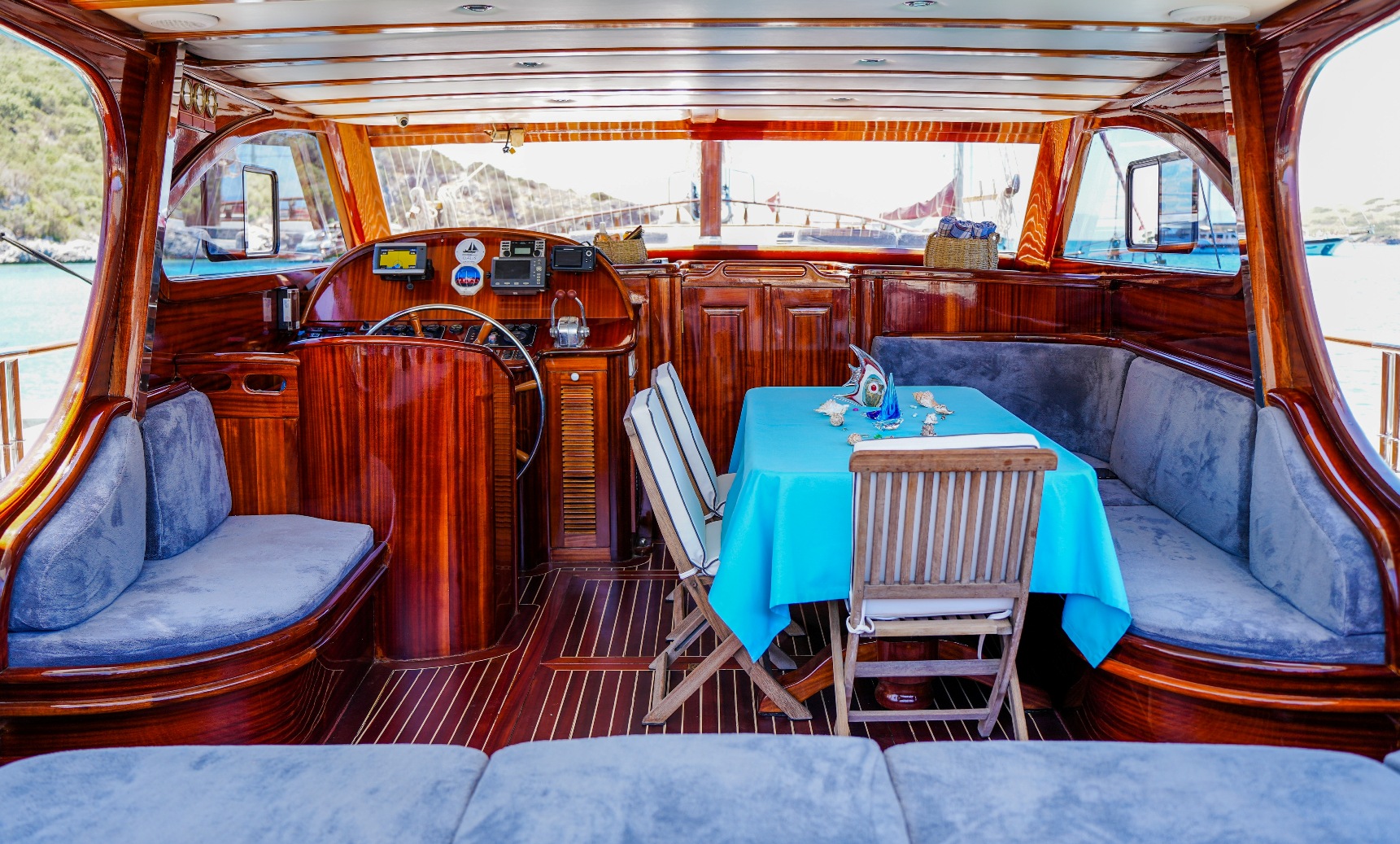 | Гулет Oalis — традиционная деревянная яхта длиной 19 м, построенная в 2011 году; изящно сочетает классический дизайн и современный комфорт. Планировка: одна мастер-каюта и две дабл-каюты, каждая с отдельным санузлом; размещение — до шести гостей. Идеален для семей или небольших компаний, ищущих частный гулет в Турции. Палуба тщательно спроектирована для отдыха и удовольствия: просторная зона сидений и обеденный стол — для загара и трапез аль-фреско. Ниже палубы — гостеприимный салон с обеденной зоной и полностью укомплектованный камбуз, обеспечивающие комфорт между морскими приключениями. Для любителей воды — тендер с мотором 25 л.с., SUP-доска, каноэ, снаряжение для сноркелинга и рыбалки. Силовая часть: два надёжных двигателя Iveco по 280 л.с., максимальная скорость — 9 узлов. Генератор 16 кВА и электросети 12/24/220 В обеспечивают ежедневные потребности в комфорте, включая кондиционирование до 5 часов в день. Oalis обычно ходит вдоль юго-западного побережья Турции из портов Бодрум, Мармарис, Гёчек или Фетхие, уводя гостей в бирюзовые бухты и тихие лагуны для незабываемого «голубого вояжа». |
