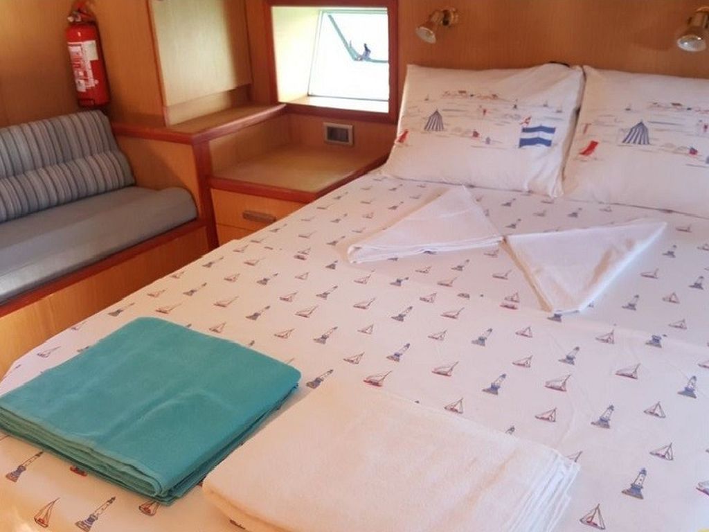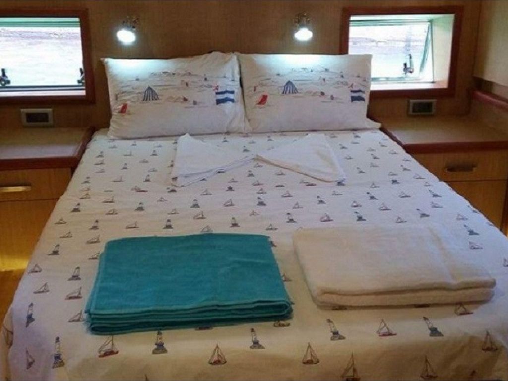 | Вместимость до 6 гостей; 2 мастер-каюты, 1 двухместная каюта, кондиционер во всех каютах, душевая кабина и туалеты домашнего типа во всех каютах, отдельные каюты для экипажа. |
