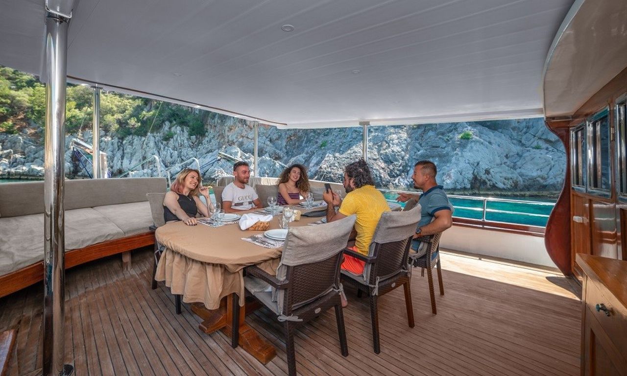 | Вместимость до 8 гостей; 4 двухместные каюты, кондиционер, душевая кабина и туалеты домашнего типа во всех каютах, отдельные каюты для экипажа. |