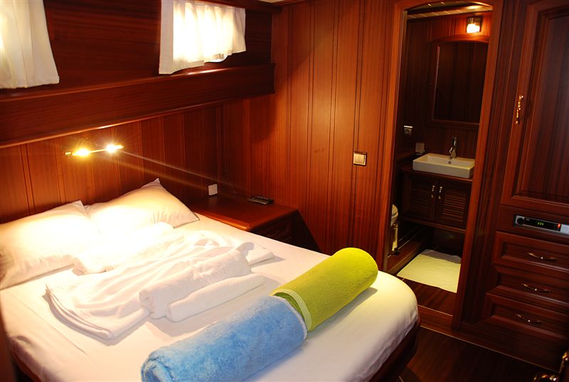 Вместимость до 8 гостей; 4 люкса, включающие: 2 роскошные двухместные каюты с кроватями размера «king-size». 2 двухместные каюты с кроватями, трансформируемыми в кровати размера «king-size». Во всех каютах есть собственные ванные комнаты. Индивидуальное дистанционное управление кондиционером (тепло-холод), туалеты со смывом, фены, мини-бар, огнетушители и детекторы дыма. Внутренний салон с кондиционером, просторная солнечная палуба с зоной отдыха на носу. Отдельные помещения для экипажа. |