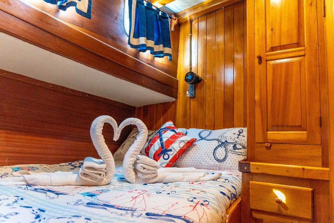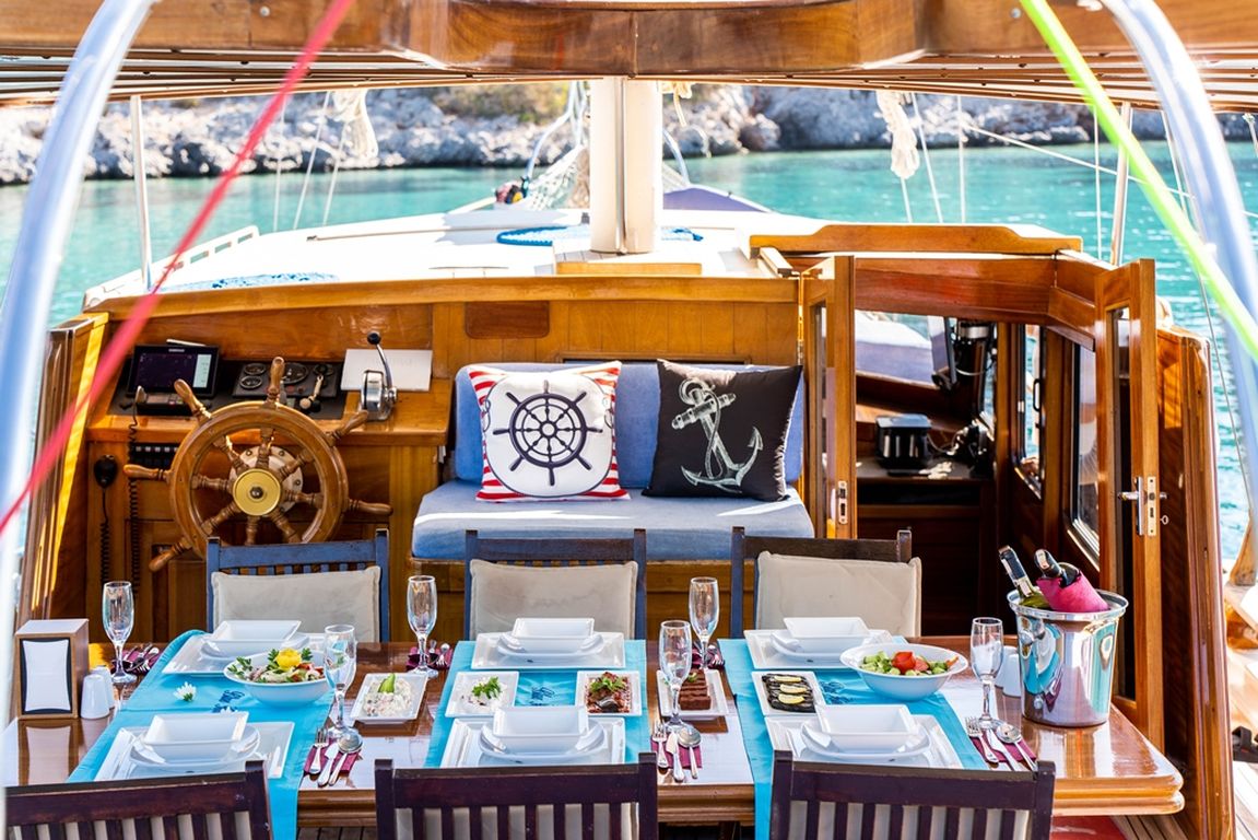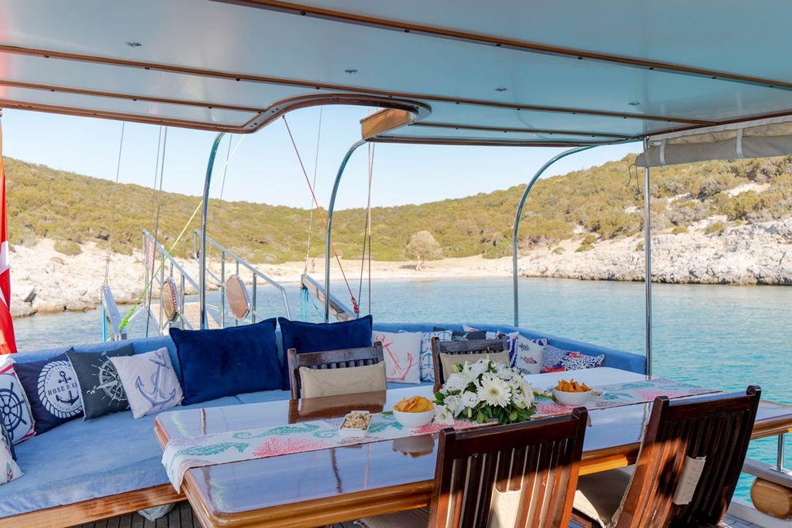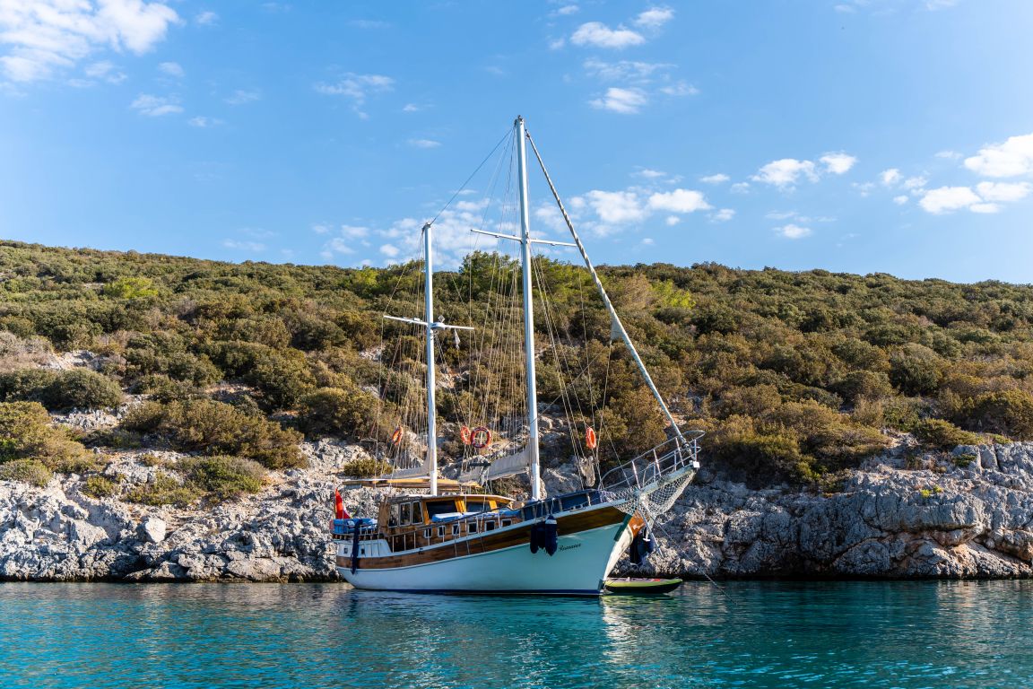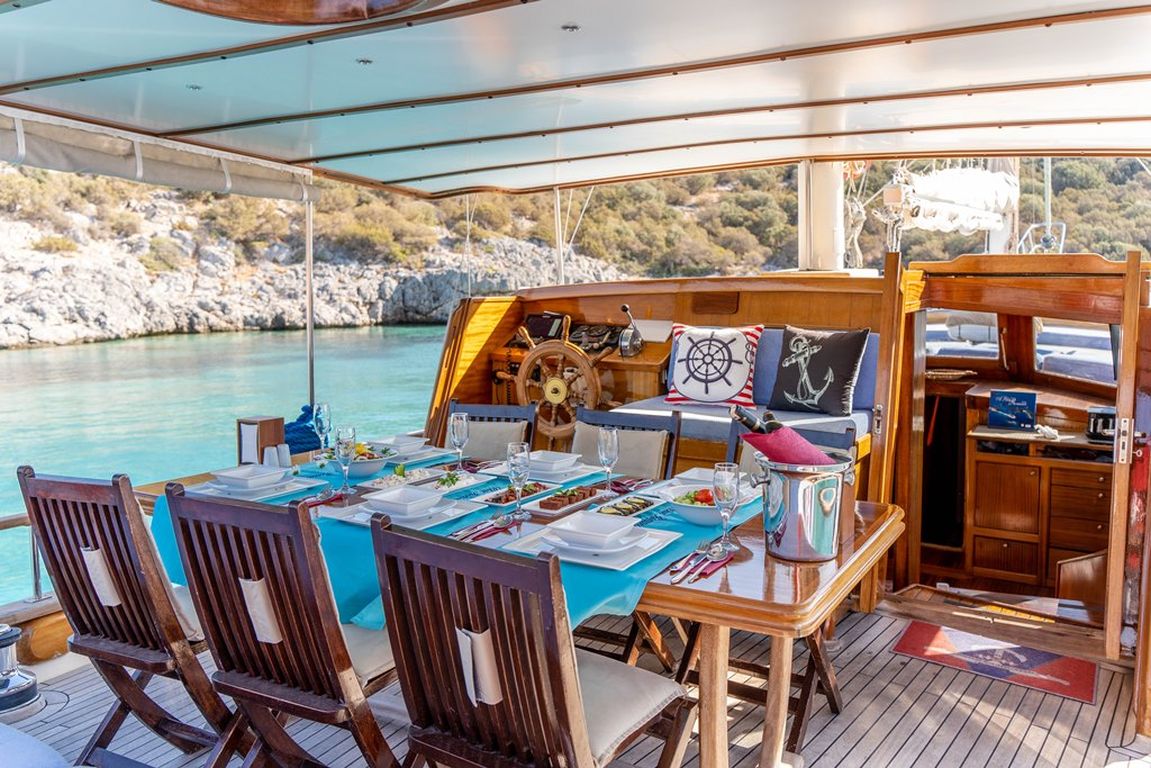 Наш 19-метровый гулет Blue Romance был построен в 1994 году. Он принял свой окончательный вид после реконструкции и обновления, которые он прошел в 2018 году. Наша лодка, каждая более стильная и удобная, чем другая, с собственным душем, туалетом и кондиционером, 4 двухместными каютами, имеет 4 каюты. Есть отдельные жилые зоны для 2 членов экипажа, полноценная кухня, крытая и открытая обеденные зоны и зоны отдыха.