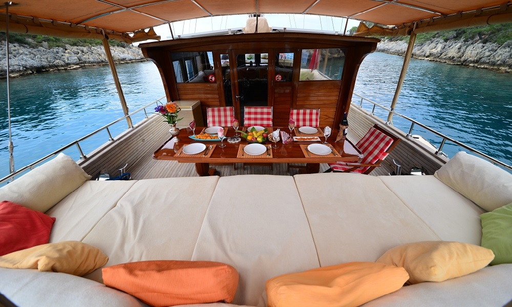 Наш 20-метровый гулет Divane был построен в 2010. Он принял свою окончательную форму после реконструкции и обновления, которые он прошел в 2016 году. На нашей лодке 4 каюты, 1 Master и 3 Double Cabins, каждая из которых более стильная и удобная, с собственным душем, туалетом и кондиционером. 4 отдельные жилые зоны, полностью оборудованная кухня, крытая и открытая обеденные зоны и зоны отдыха для экипажа.