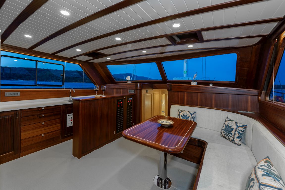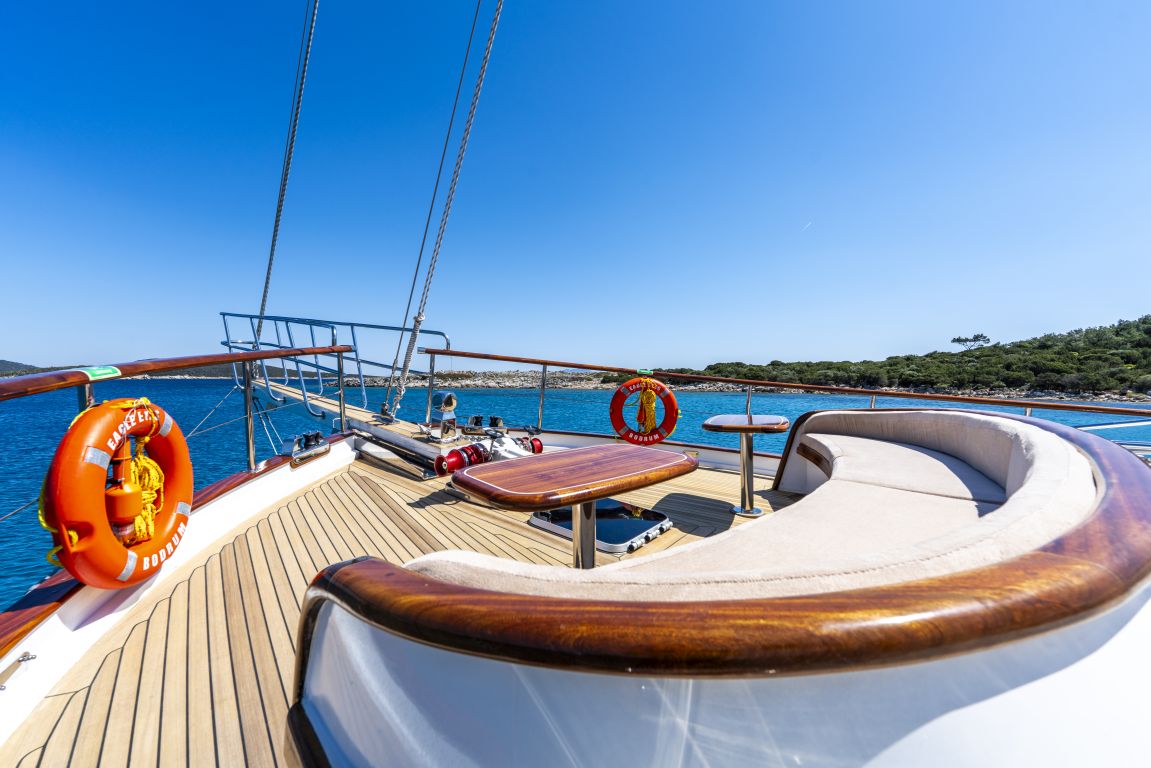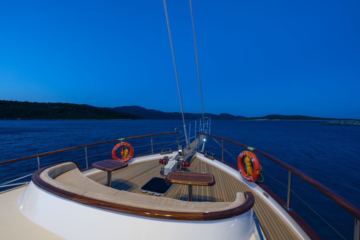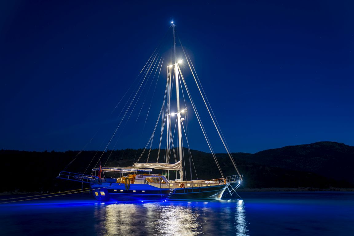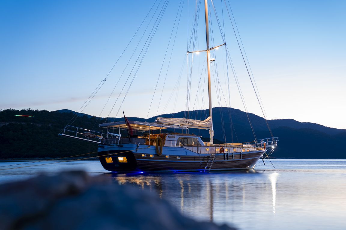 | Гулет Eagle Eyes — выразительный традиционный деревянный гулет длиной 20 м, новострой 2024 года; свежая работа мастеров и современная роскошь. Четыре каюты: две мастер, одна дабл и одна твин — все с отдельными санузлами; до восьми гостей. Ширина 5,80 м повышает комфорт и пространственность на борту. Палуба — для отдыха и общения: зоны сидений, тенистые места для обедов, солярии. Внутри — стильный салон и полностью оборудованная кухня. Для активных гостей — тузик с мотором 40 л.с., SUP-доски, каноэ, маски/трубки и рыбалка. Техника: двигатель Baudouin 360 л.с., два генератора по 19 кВА; крейсерская ~8 узлов. Сети 12/24/220 В; кондиционирование 12 часов в сутки. Маршруты — вдоль юго-западного побережья Турции: бирюзовые бухты, спокойные лагуны и живописные острова — запоминающийся «голубой круиз» с комфортом, приключениями и приватностью. |