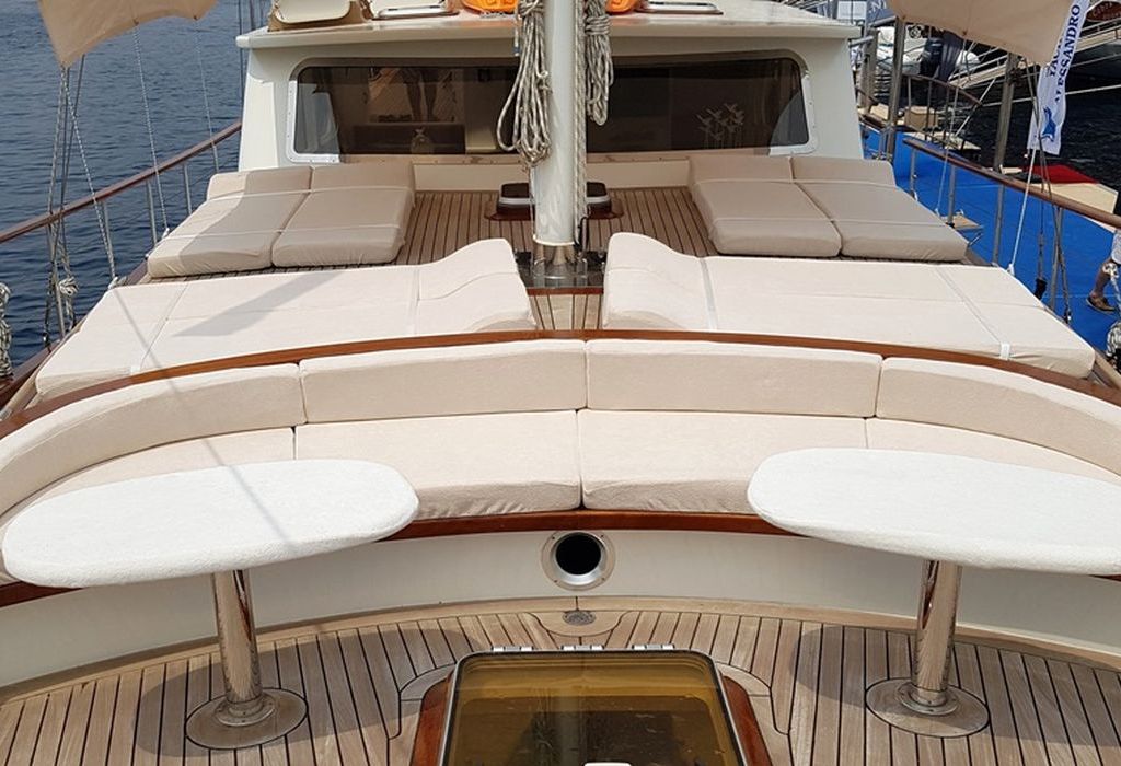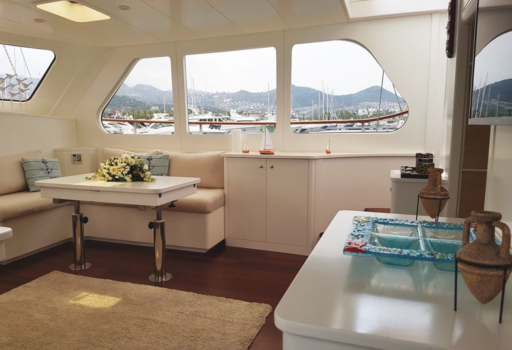 Имеются подушки для загара, стулья и сервировочные наборы, достаточные для всех гостей. Гулет Elifim 11, благодаря своему полноценному радио, GSM-телефону и навигационному оборудованию; Бодрум, Гёджек, Мармарис, Фетхие и т. д. Вы можете безопасно плавать в наших синих круизных направлениях. ЖК-телевизор, DVD-плеер и стереосистема к услугам наших уважаемых гостей синего вояжа в гостиной нашего гулета.