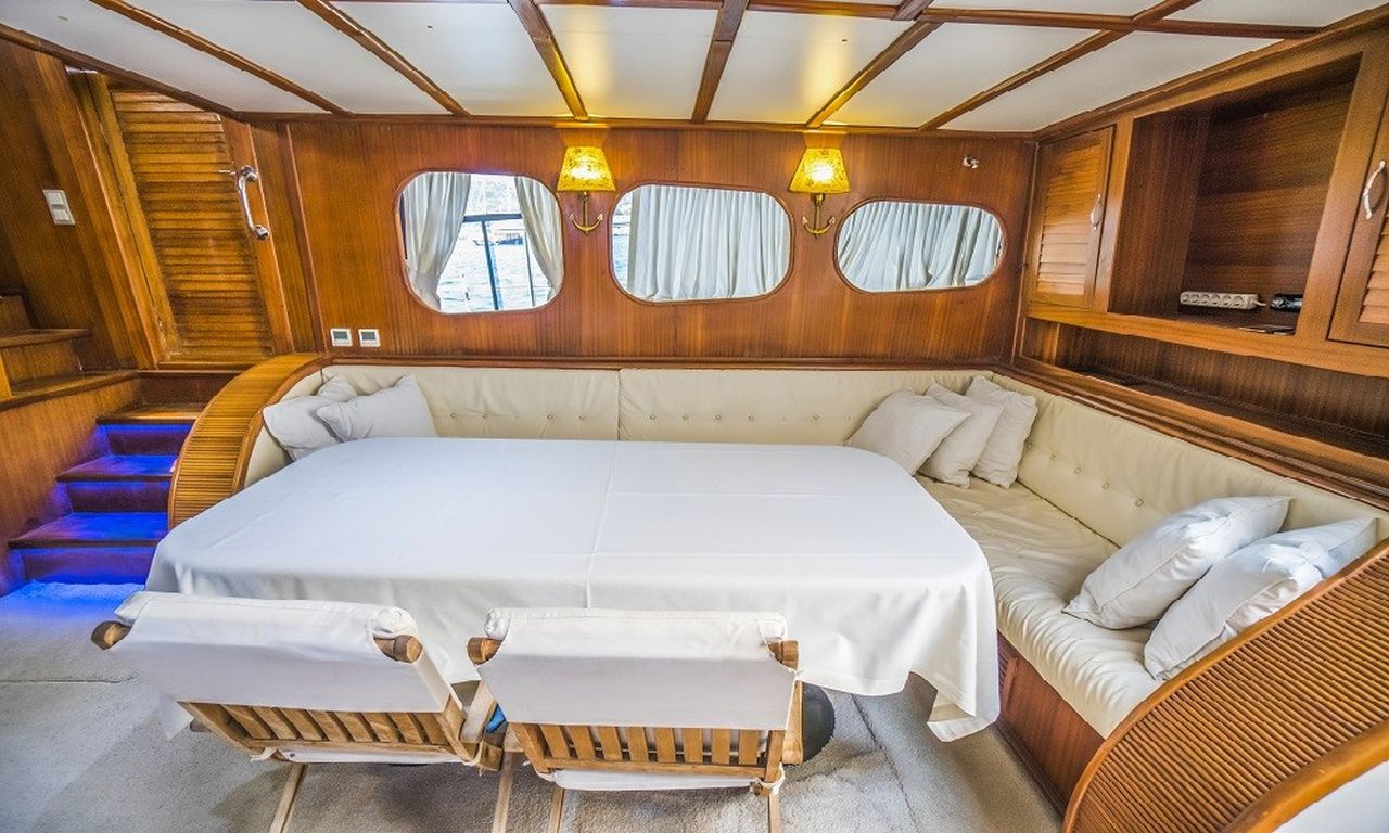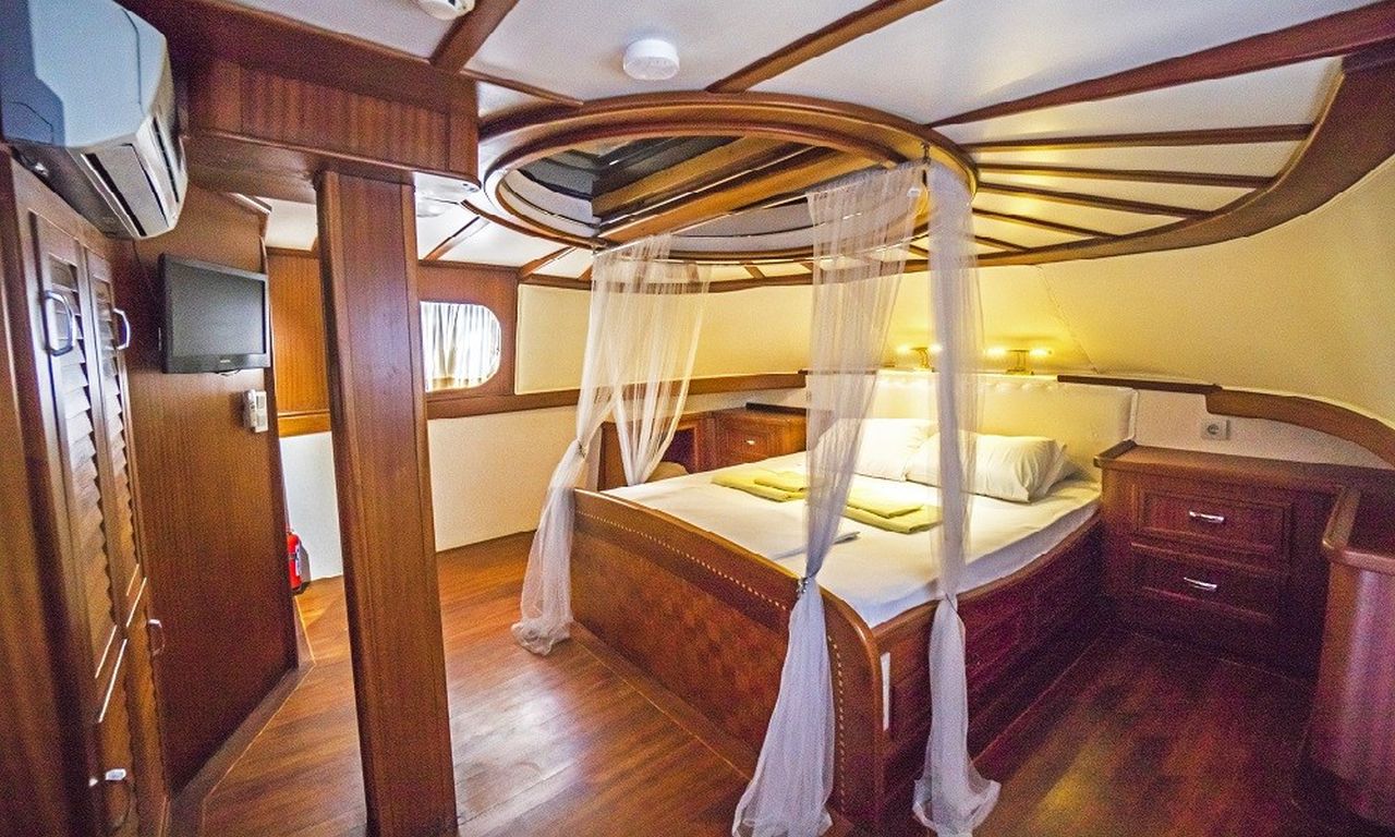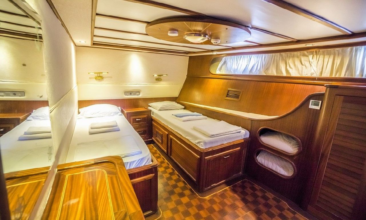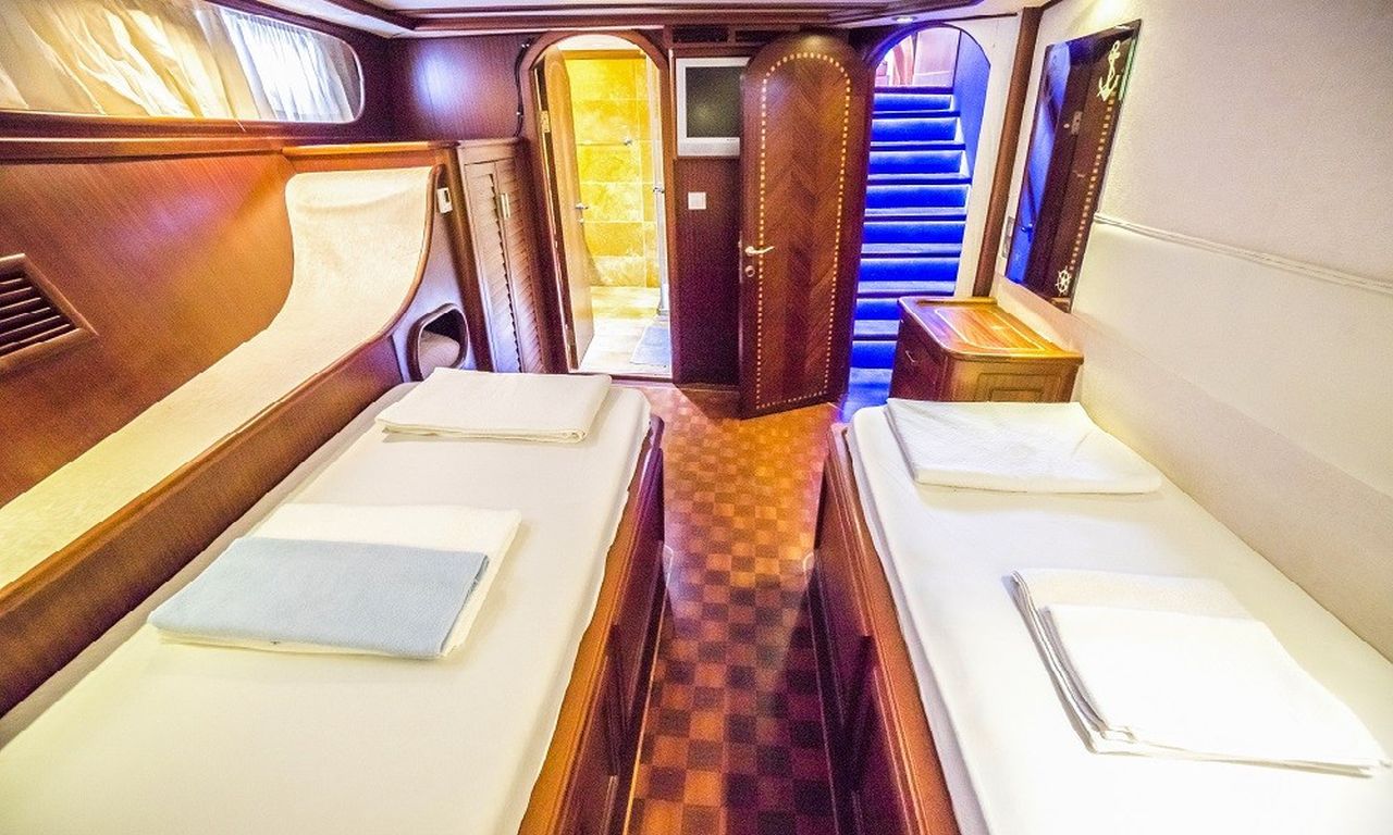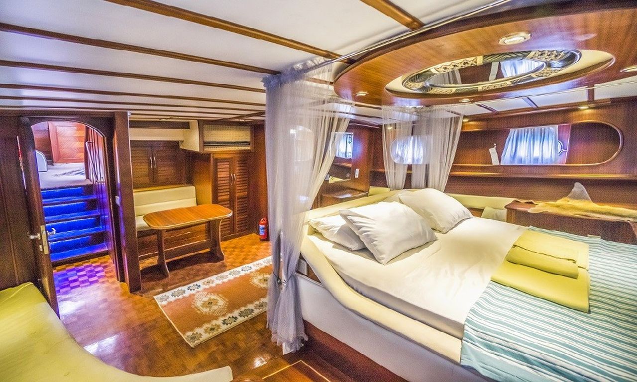 Гулет Esma Sultan 2 — кеч-стайл длиной 24 м, построен в 2010 году и капитально обновлён в 2023-м. Соединяет вечное деревянное ремесло и современный дизайн. На борту четыре каюты: две мастер (одна — king-suite), одна дабл и одна твин; все с отдельными санузлами с душевыми кабинами и туалетами домашнего типа; до 10 гостей. Отдельные каюты экипажа; профессиональная команда из четырёх (капитан, шеф, матрос, стюардесса).