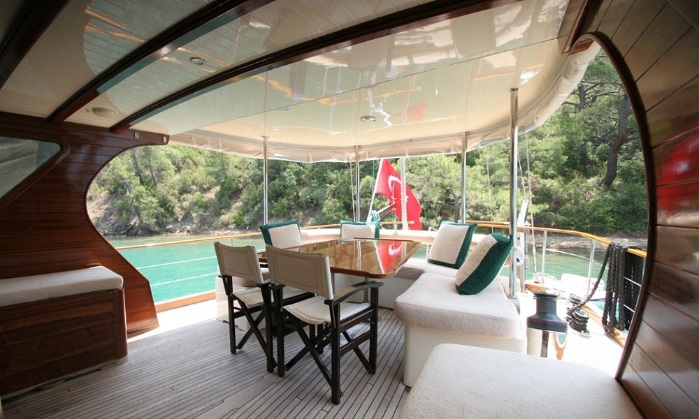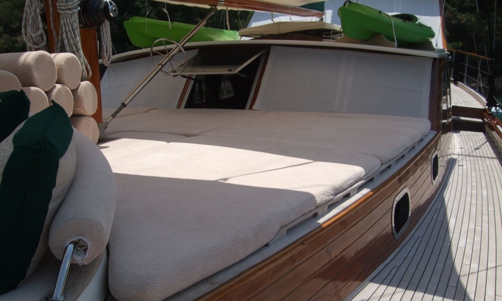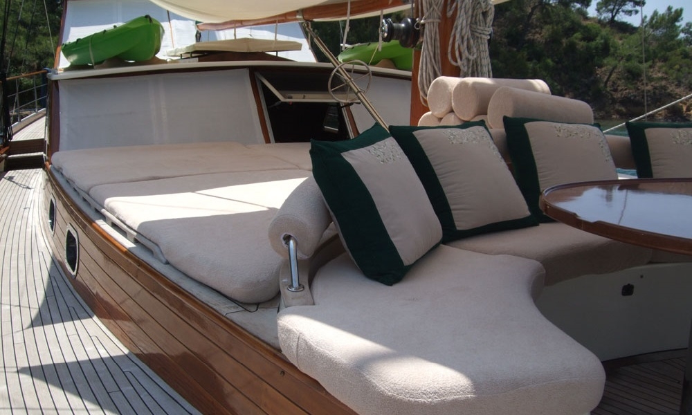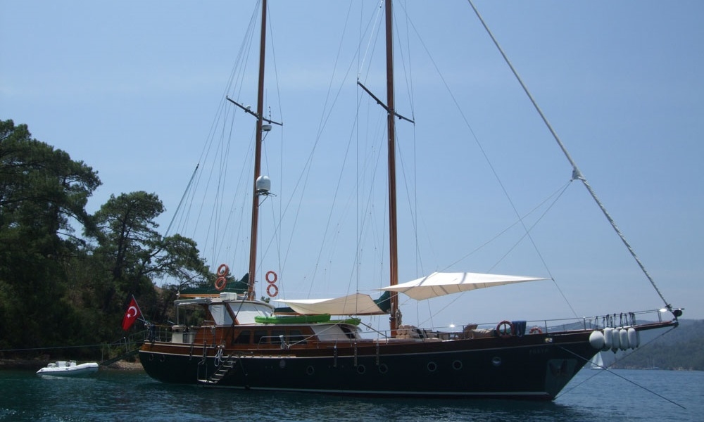 Наш гулет Freya длиной 22,60 м был построен в 2008. На нашей лодке 4 каюты, 2 Master и 2 Double Cabins, каждая более стильная и удобная, с собственным душем, туалетом и кондиционером. 3 отдельные жилые зоны, полностью оборудованная кухня, обеденные зоны внутри и снаружи помещения и зоны отдыха для экипажа.