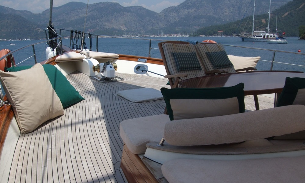 Имеются подушки для загара, стулья и сервировочные наборы, достаточные для всех гостей. Гулет Freya, благодаря своему полноценному радио, навигационному оборудованию GSM-телефона; Бодрум, Гёджек, Мармарис, Фетхие и т. д., вы можете безопасно плавать в наших синих круизных направлениях.