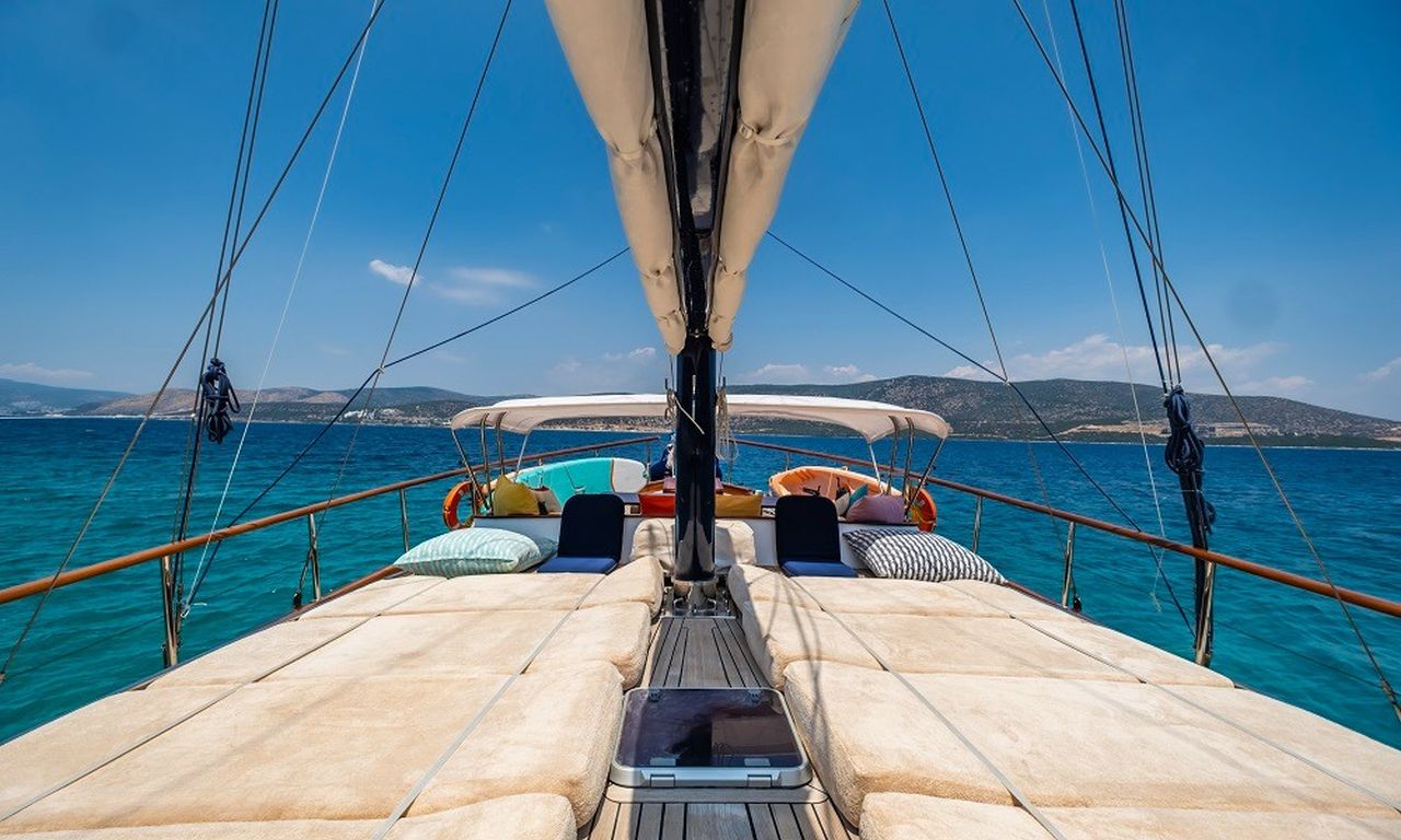 Имеются подушки для загара, стулья и сервировочные наборы, достаточные для всех гостей. Гулет Golden Joy, благодаря своему полноценному радио, навигационному оборудованию GSM-телефона; Бодрум, Гёджек, Мармарис, Фетхие и т. д., вы можете безопасно плавать в наших синих круизных направлениях.