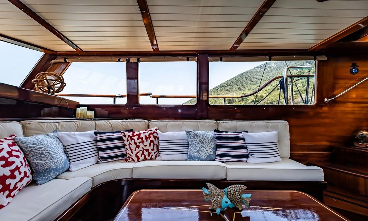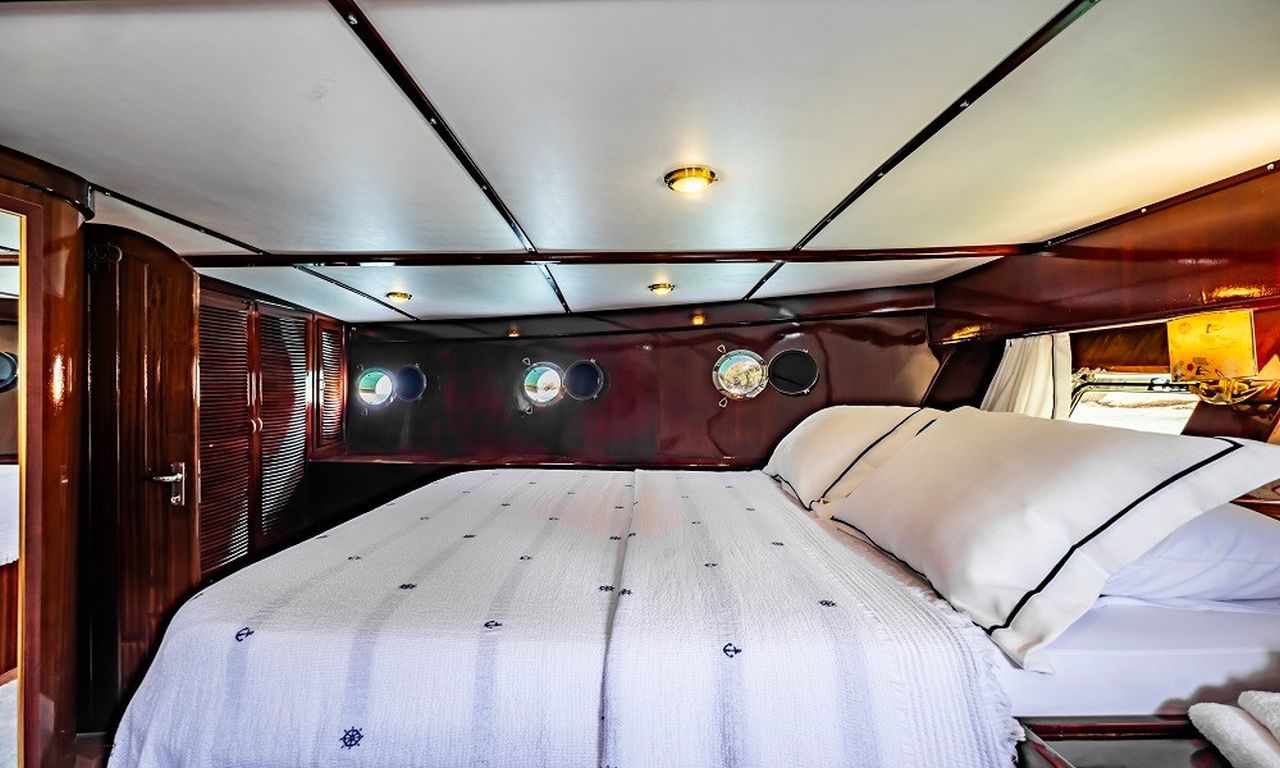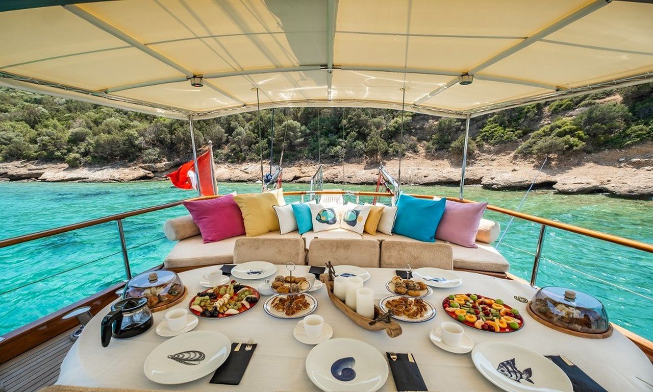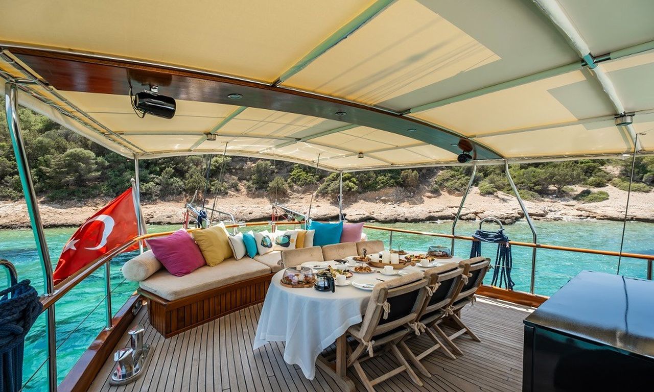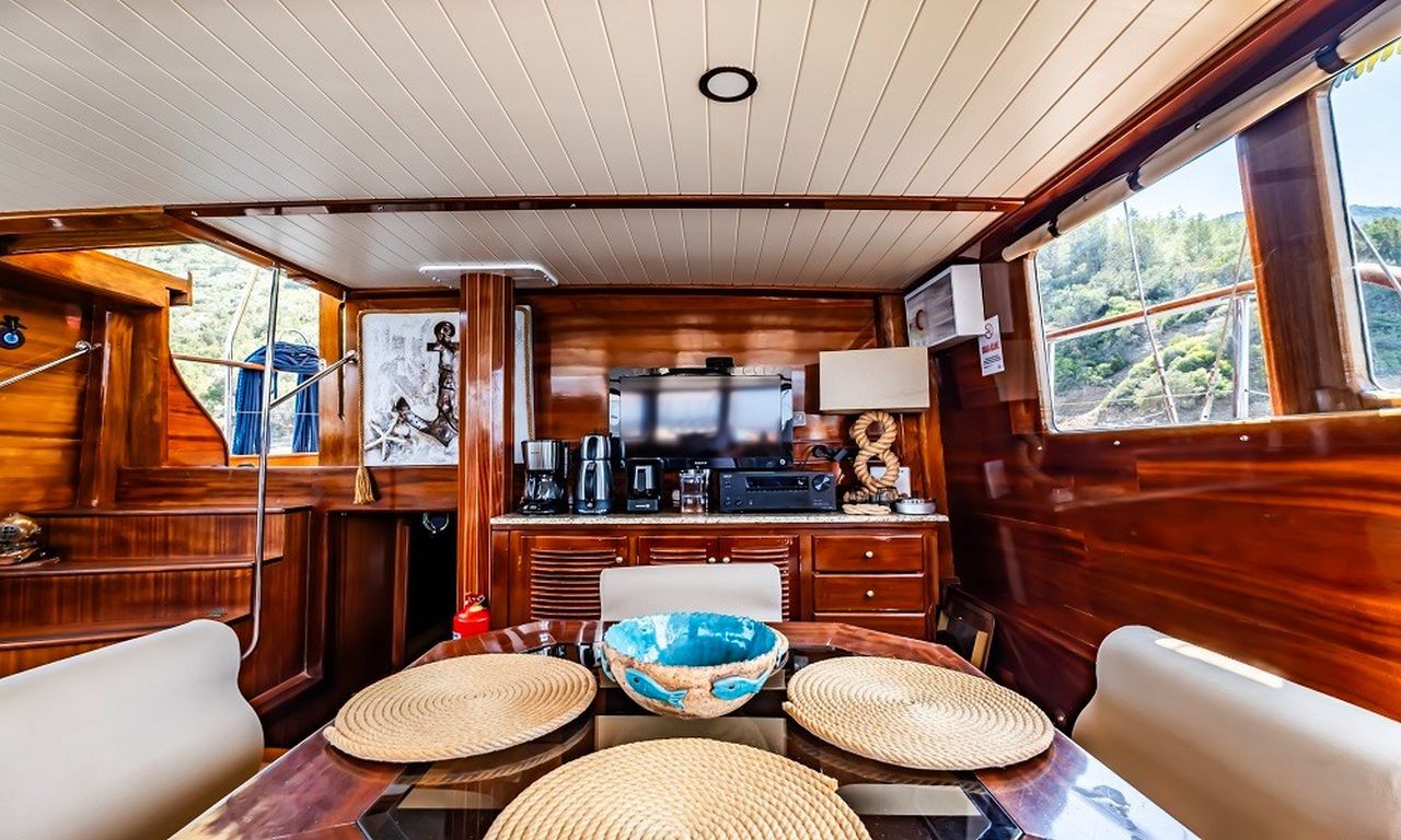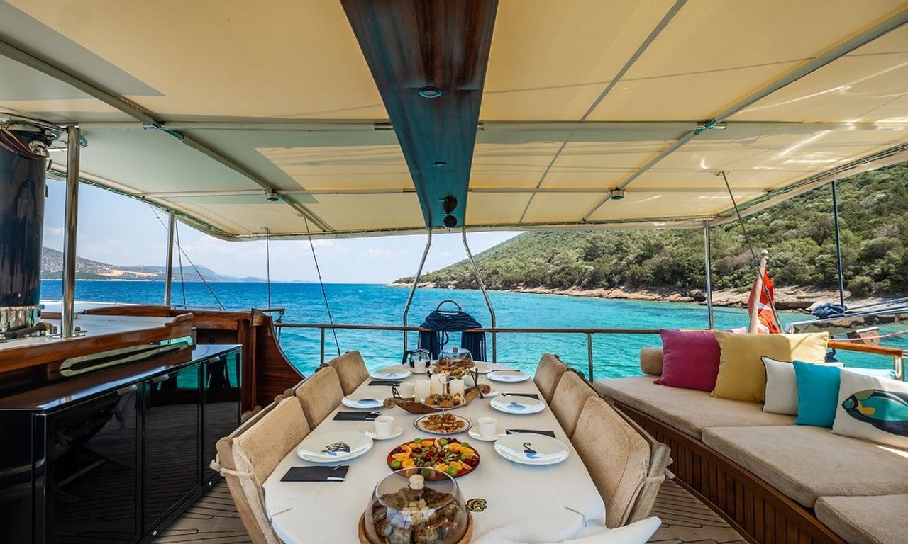 Наш 20-метровый гулет Golden Joy был построен в 1992 году. Он принял свою окончательную форму после реконструкции и обновления, которые он прошел в 2016 году. На нашей лодке есть 4 каюты, 1 Master и 3 Double Cabins, каждая из которых более стильная и удобная, с собственным душем, туалетом и кондиционером. 3 отдельные жилые зоны, полностью оборудованная кухня, обеденные зоны внутри и снаружи и зоны отдыха для экипажа.
