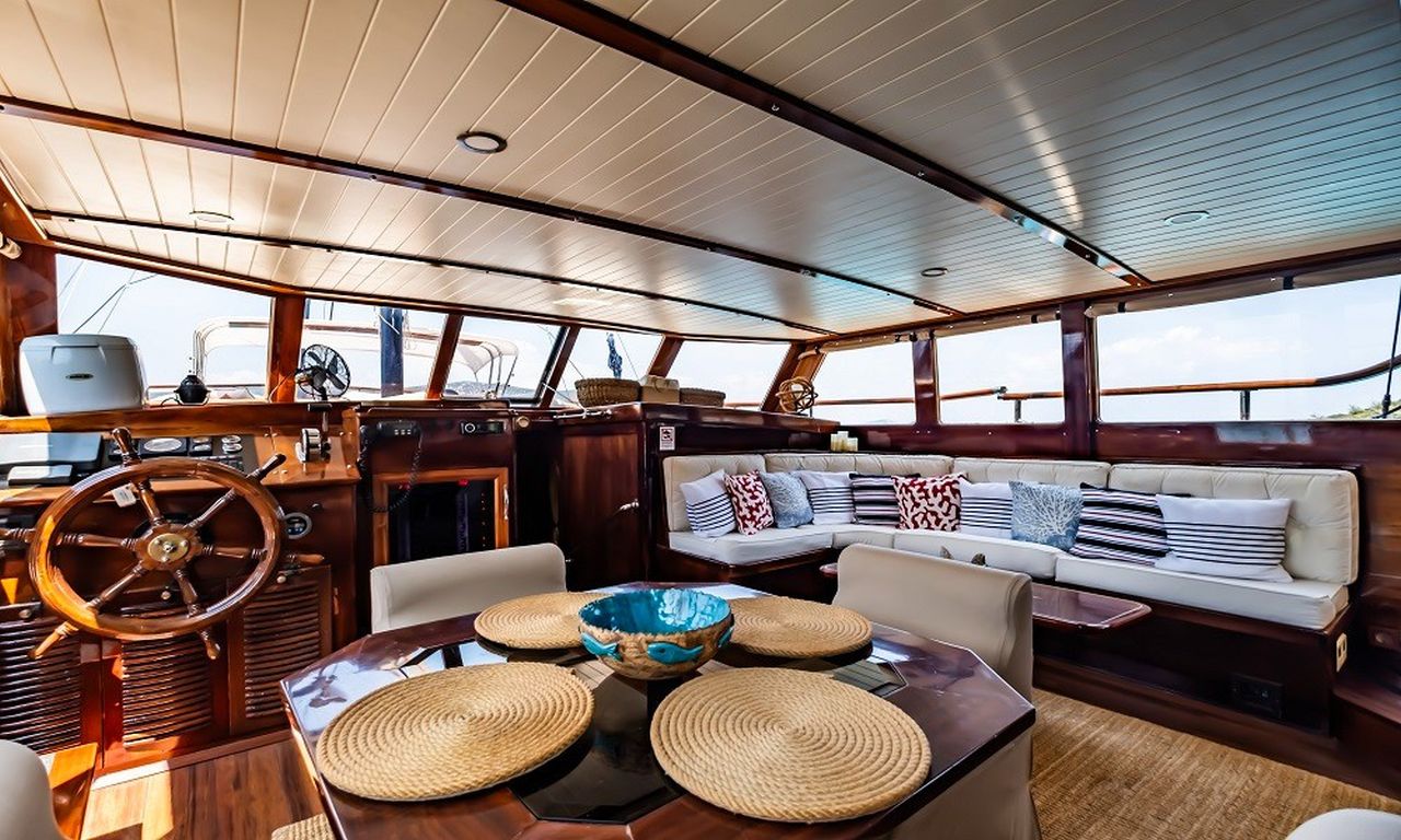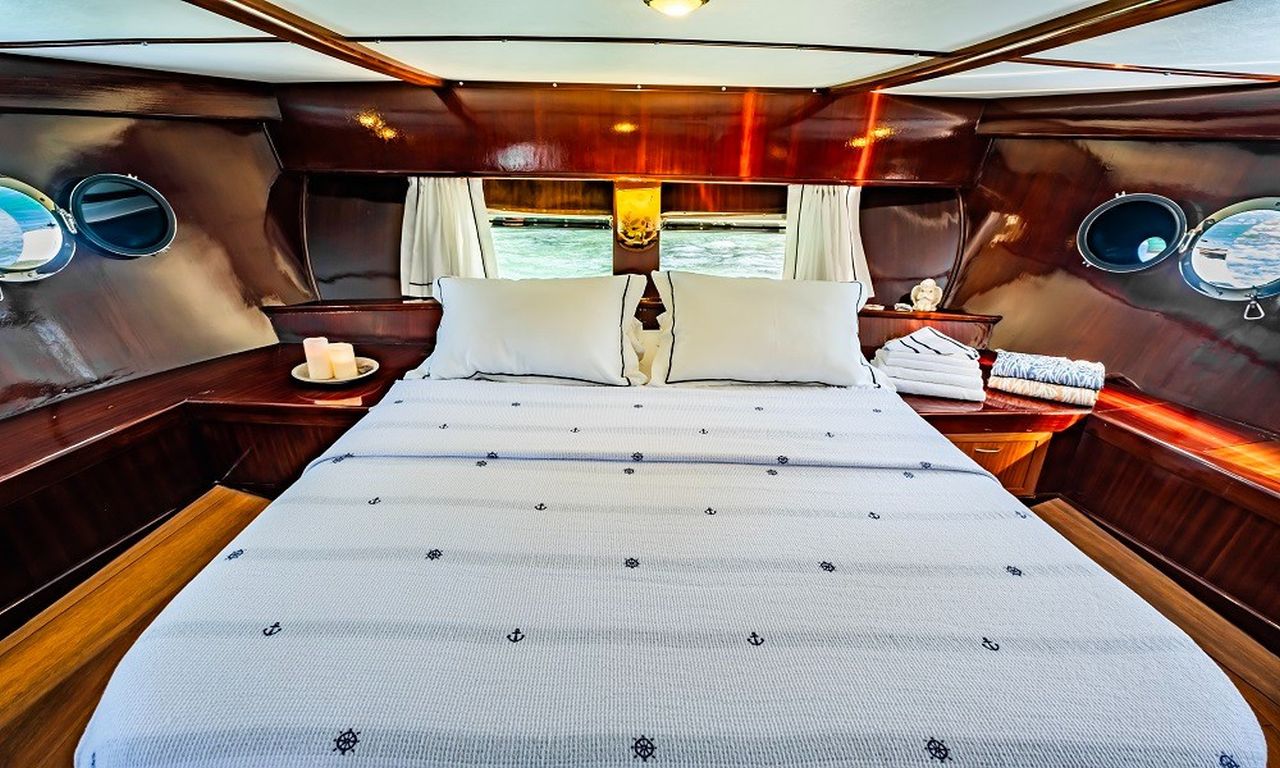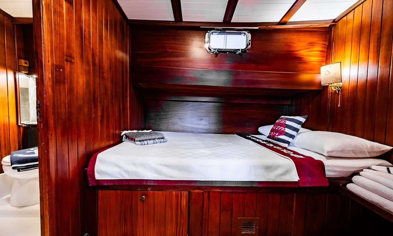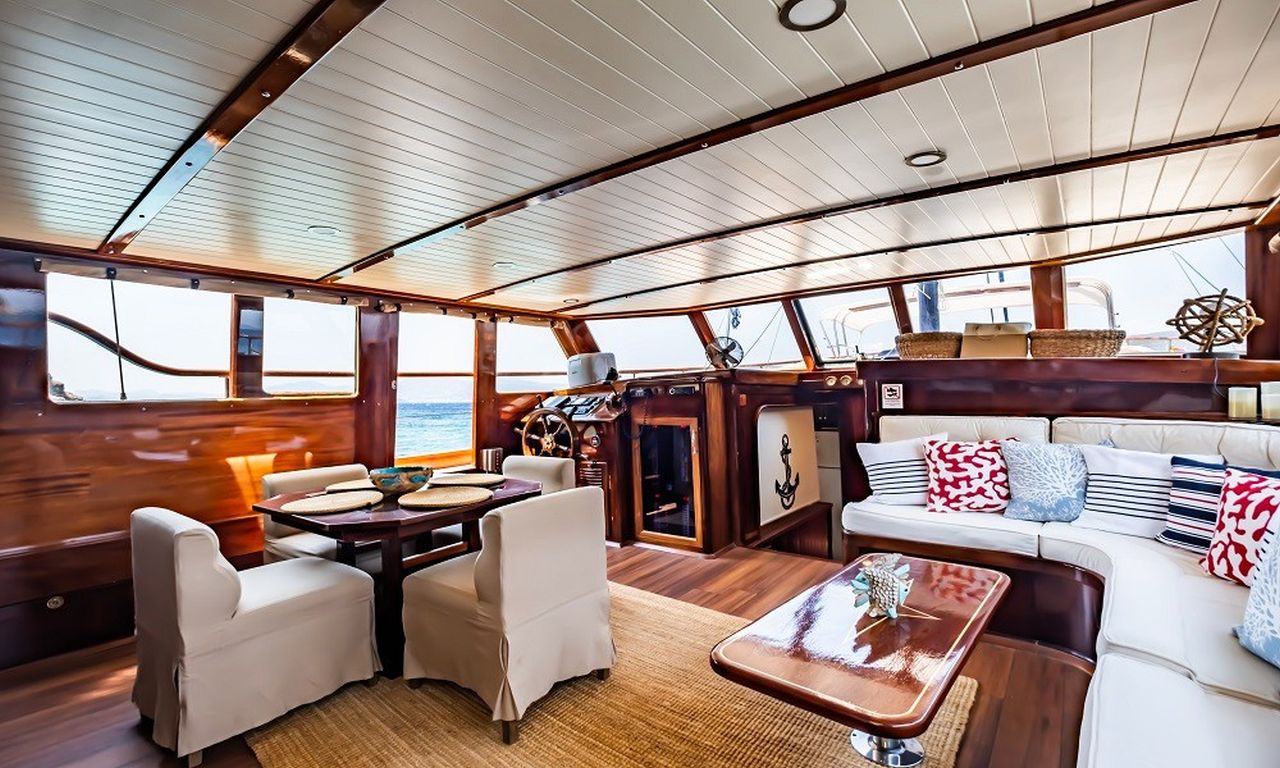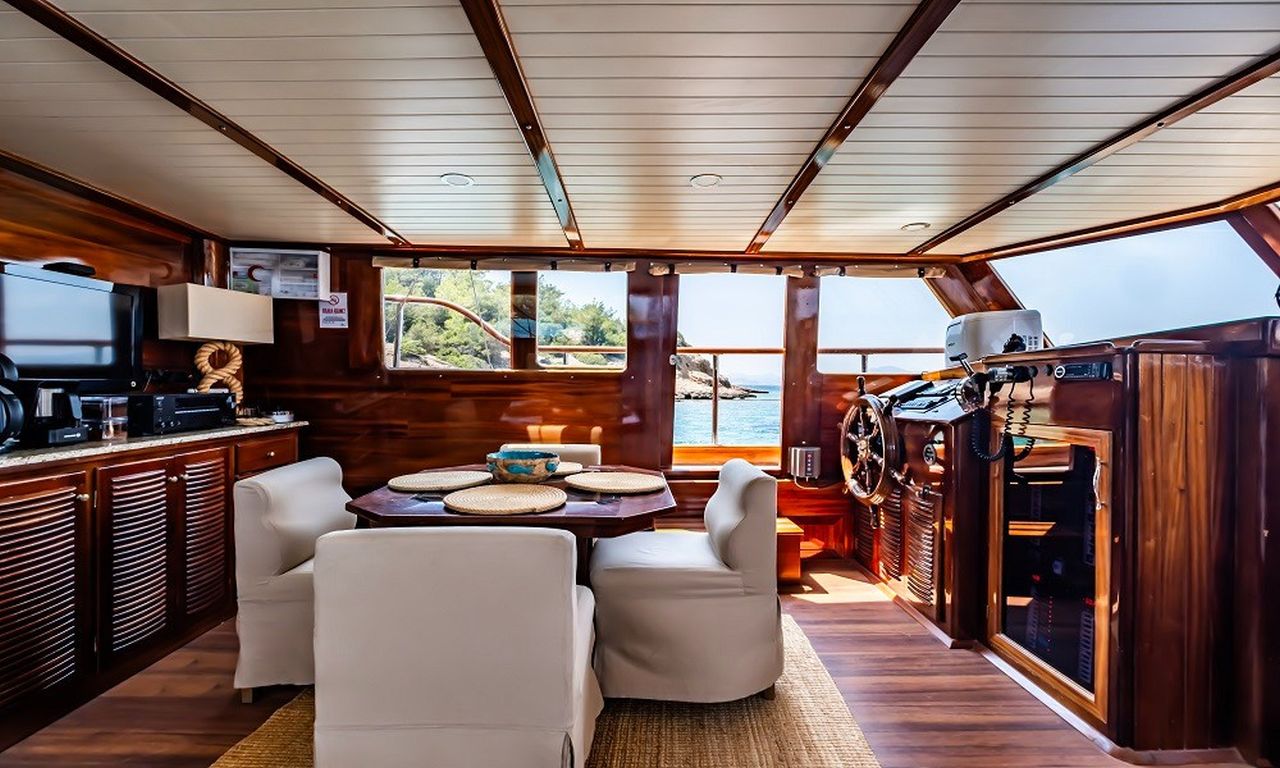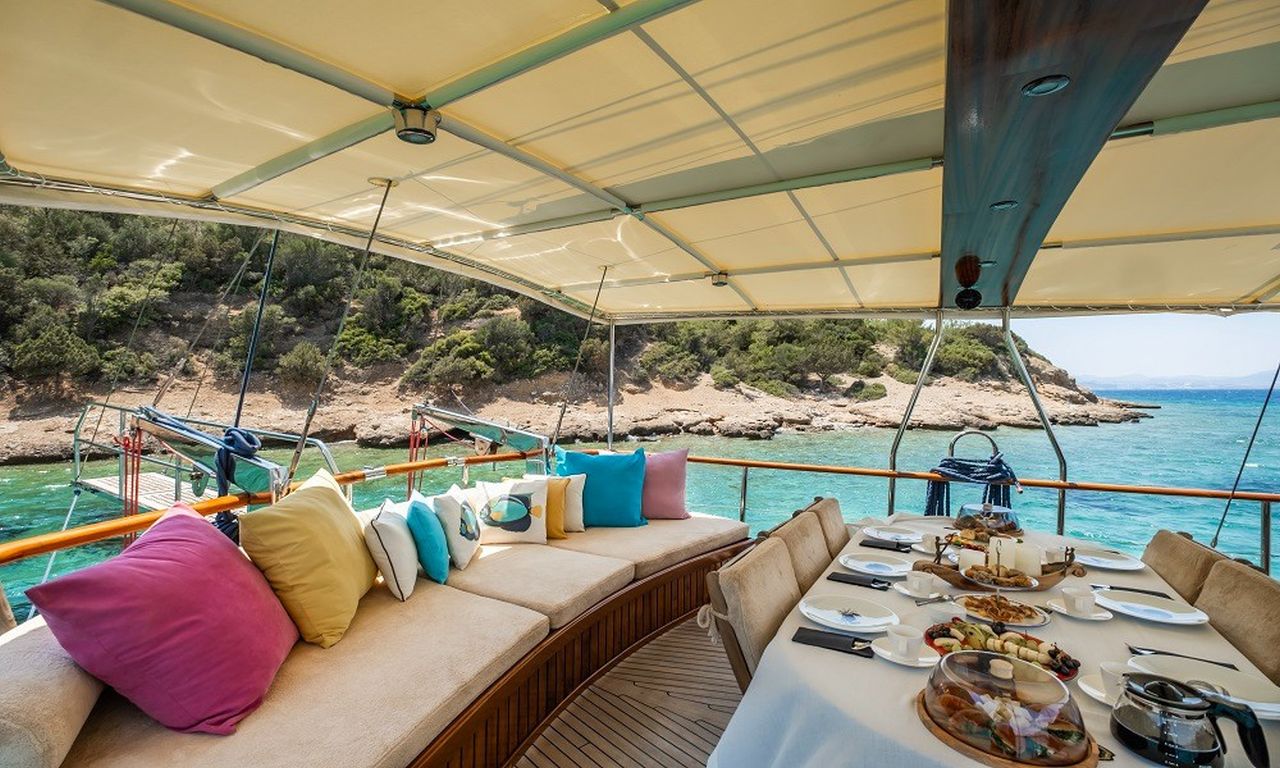 Наш 20-метровый гулет Golden Joy был построен в 1992 году. Он принял свою окончательную форму после реконструкции и обновления, которые он прошел в 2016 году. На нашей лодке есть 4 каюты, 1 Master и 3 Double Cabins, каждая из которых более стильная и удобная, с собственным душем, туалетом и кондиционером. 3 отдельные жилые зоны, полностью оборудованная кухня, обеденные зоны внутри и снаружи и зоны отдыха для экипажа.