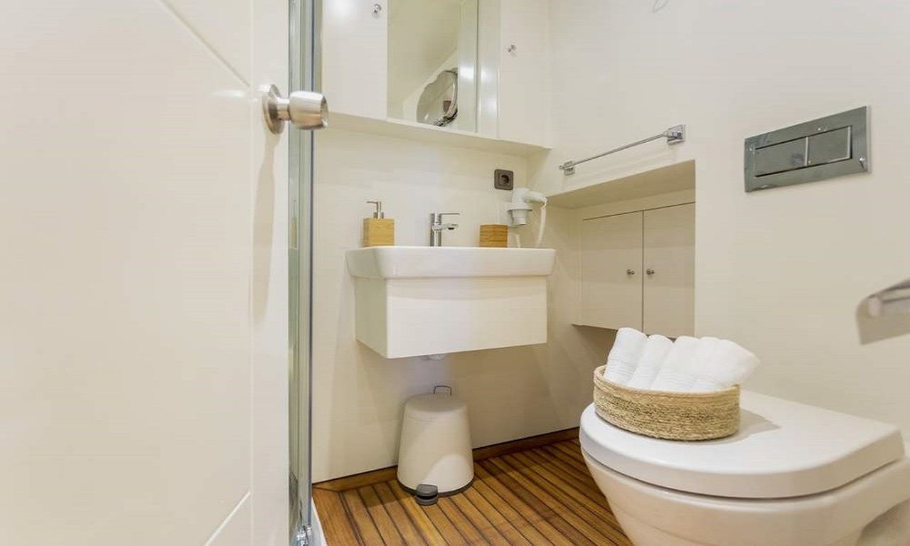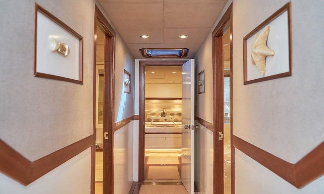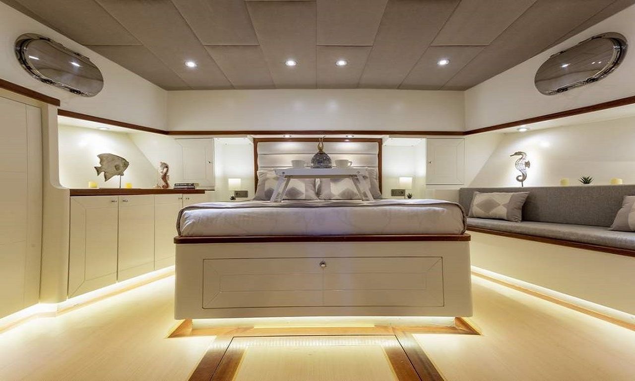 | До 8 гостей; 2 мастер-каюты, 2 двухместные каюты. Мини-бар в каждой каюте. Уборка кают по запросу; частая уборка ванной комнаты и туалета, гардероб, душевая кабина и туалеты домашнего типа во всех каютах, отдельные каюты для экипажа. |