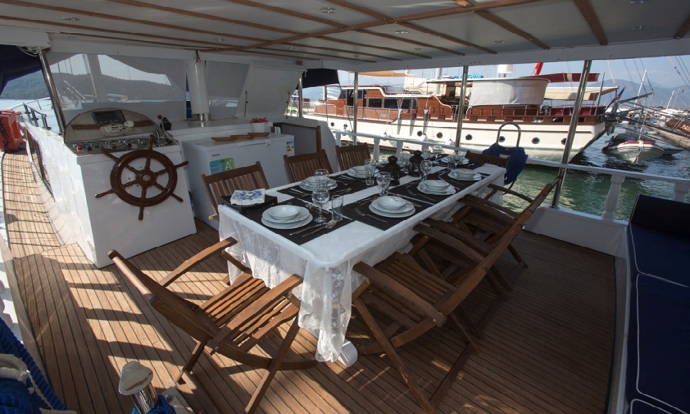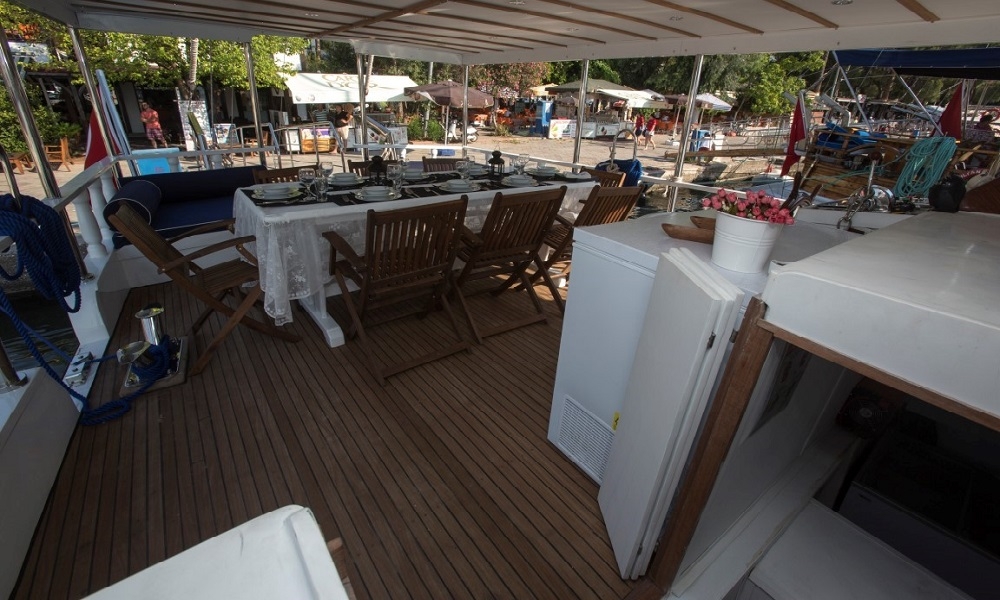 Для всех гостей достаточно подушек для загара, стульев и наборов для обслуживания. Благодаря полноценному радио, навигационным устройствам GSM-телефона, гулет Icarus; Вы можете безопасно путешествовать по нашим синим круизным направлениям, таким как Бодрум, Гёджек, Мармарис, Фетхие и т. д.