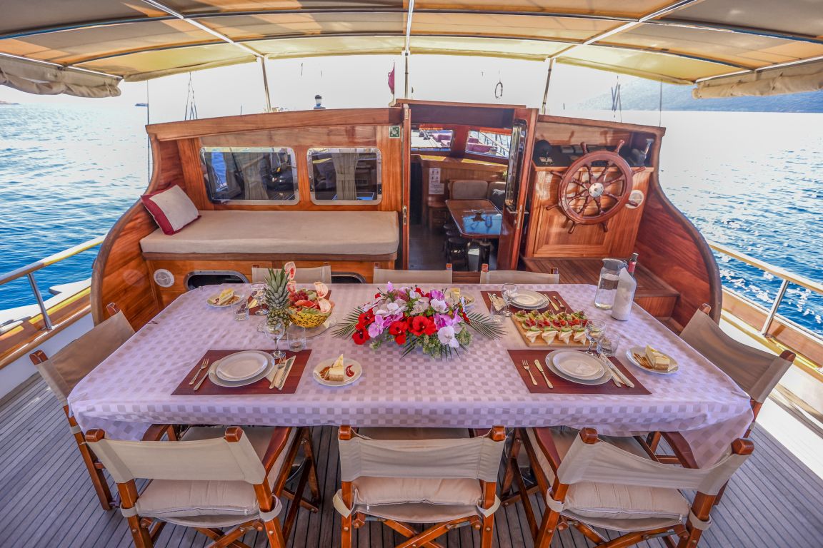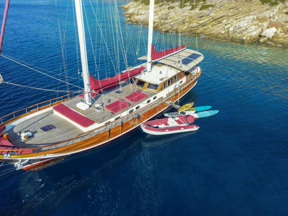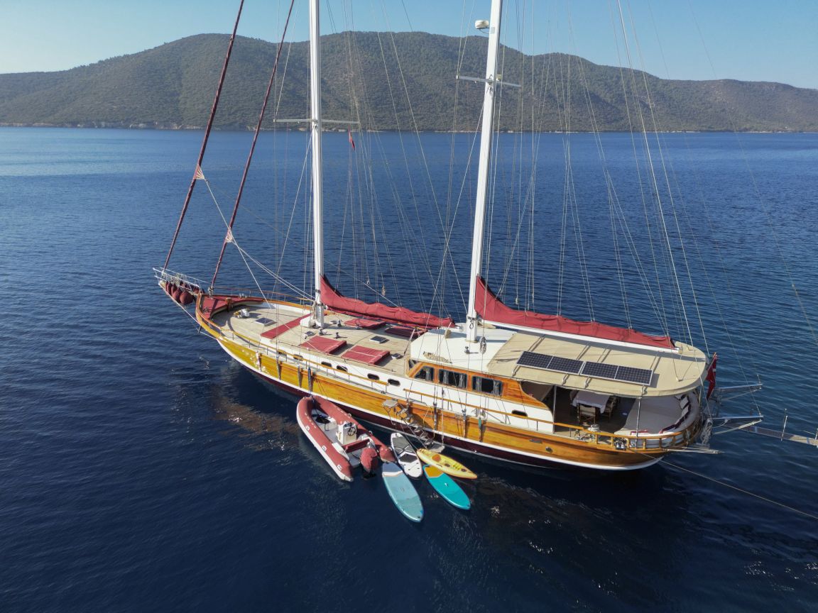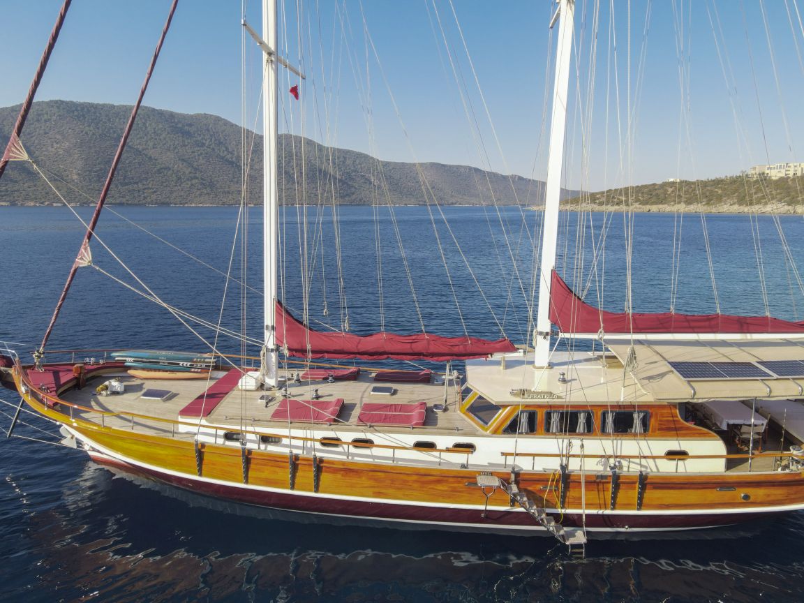 Наш 24-метровый гулет Il Fratello был построен в 2002 году. На нашей лодке 4 каюты, 3 двухместные и 1 двухместная каюта, каждая из которых более стильная и удобная, чем другая, с собственным душем, туалетом и кондиционером. 3 отдельные жилые зоны, полностью оборудованная кухня, обеденные зоны внутри и снаружи и зоны отдыха для экипажа.