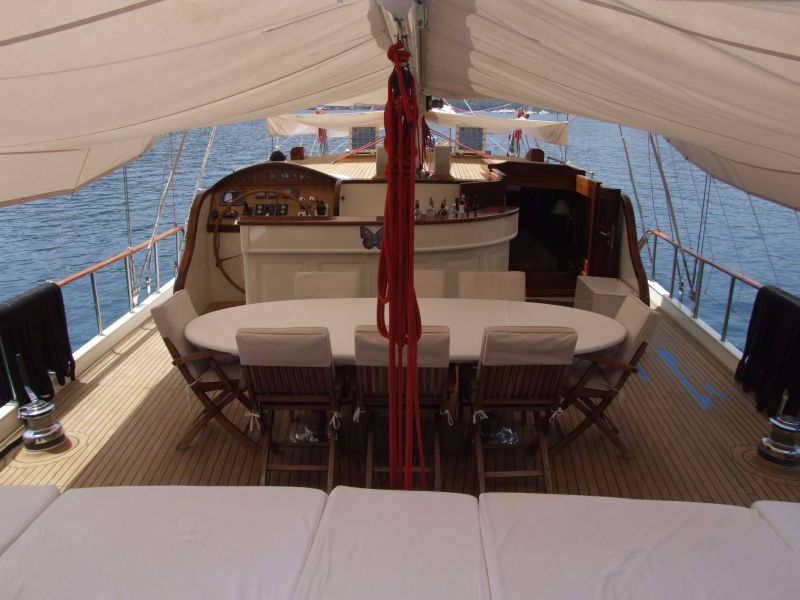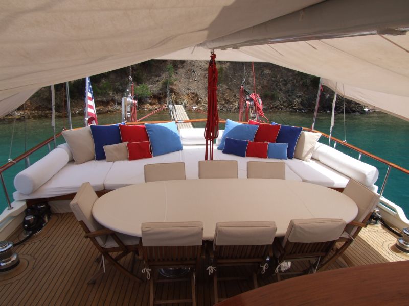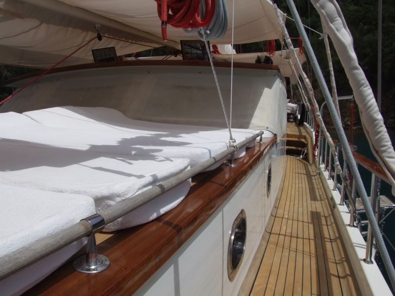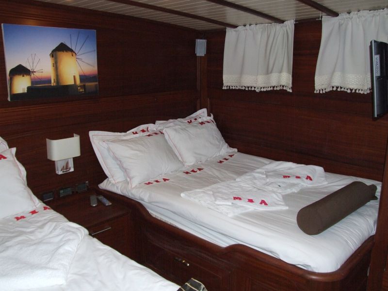 | Вместимость до 8 гостей; 1 главная, 2 двухместные, 1 трехместная каюты, кондиционер, душевая кабина и туалеты домашнего типа во всех каютах, отдельные каюты для экипажа. |