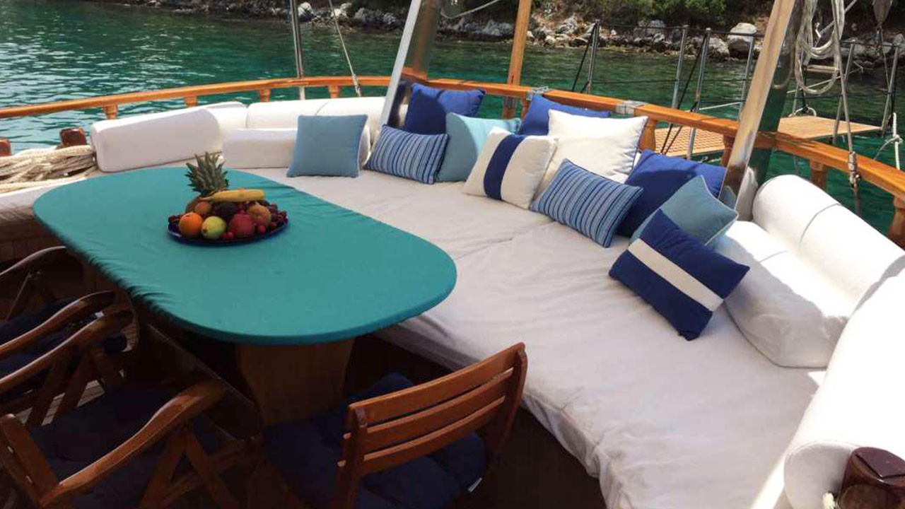Гулет Miramare — утончённый традиционный гулет длиной 20 м. Построен в 2007 году, полностью обновлён в 2022-м; удачное сочетание элегантного стиля и современного комфорта. На борту четыре дабл-каюты с отдельными санузлами; до восьми гостей — отличный выбор для семей или компаний, ищущих частную чартер-яхту в Турции.