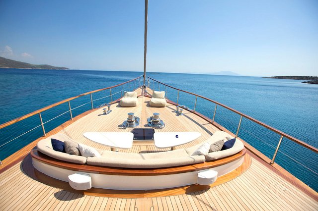 Наш 29,10-метровый гулет Miss B был построен в 2009. На нашей лодке 4 каюты: 1 Master, 1 Twin, 2 Double Cabins, каждая более стильная и удобная, с собственным душем, туалетом и кондиционером. 4 отдельные жилые зоны, полностью оборудованная кухня, обеденные зоны внутри и снаружи и зоны отдыха для экипажа.
