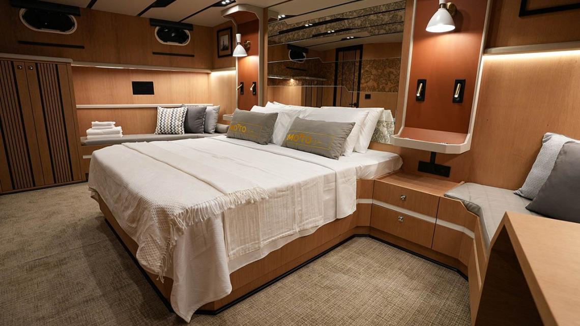 Внешние жилые зоны Motto предназначены для приятного времяпрепровождения на свежем воздухе. На кормовой палубе есть просторная обеденная зона и уютные сиденья, а на носовой палубе — матрасы для загара и зона отдыха. В течение дня гости могут купаться в кристально чистых бухтах, наслаждаться солнцем или воспользоваться водными игрушками, такими как паддлборд, каноэ и снаряжение для сноркелинга — идеально подходящими для активного отдыха на яхте в Турции.