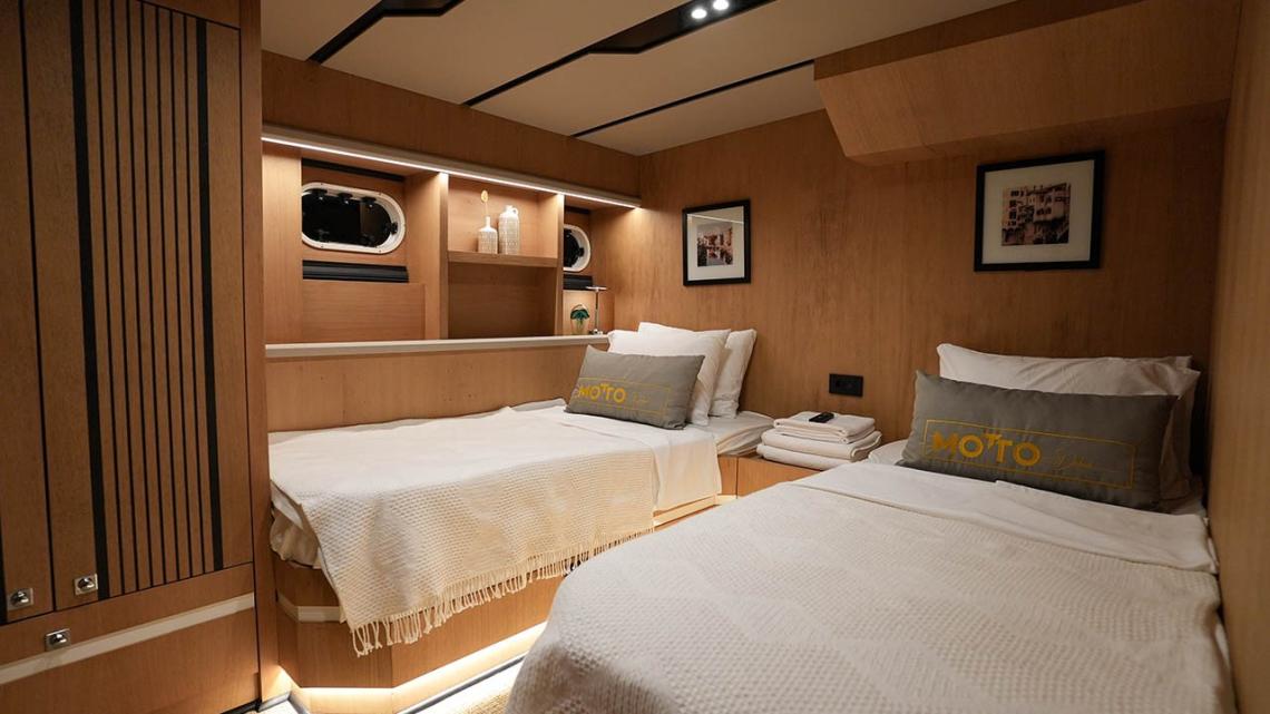 Motto — это современная и элегантная гулета длиной 23,95 метра, построенная в 2023 году, чтобы предложить комфортный и стильный отдых на частной гулете вдоль турецкого побережья. С 4 каютами (2 мастер-каюты, 1 двухместная каюта, 1 каюта с двумя односпальными кроватями) для размещения до 8 гостей, это идеальный выбор для семей и небольших групп, которые ищут расслабляющий и премиальный отдых в рамках «Голубого круиза по Турции». Каждая каюта оснащена кондиционером, отдельной ванной комнатой и современными элементами дизайна для максимального комфорта во время путешествия.