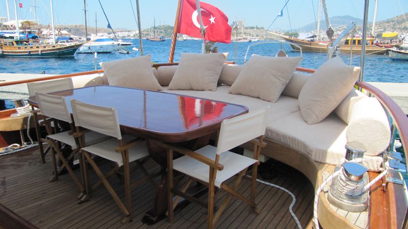 Наш 21-метровый гулет Neptun был построен в 2010. На нашей лодке 4 двухместные каюты, каждая из которых более стильная и удобная, чем другая, с собственным душем, туалетом и кондиционером. 4 отдельные жилые зоны, полностью оборудованная кухня, обеденные зоны внутри и снаружи помещения и зоны отдыха для экипажа.