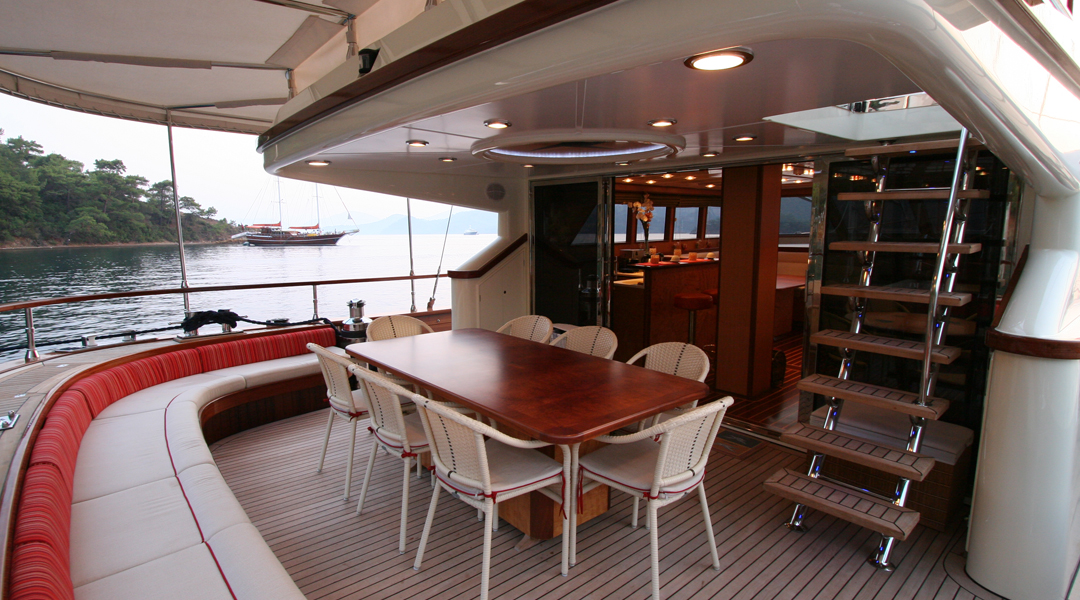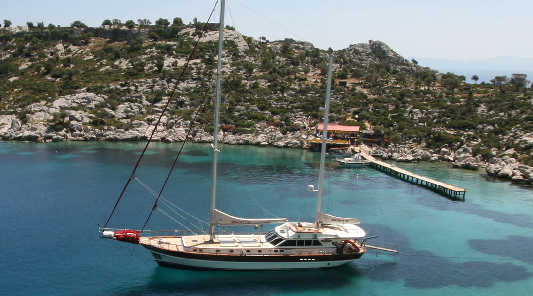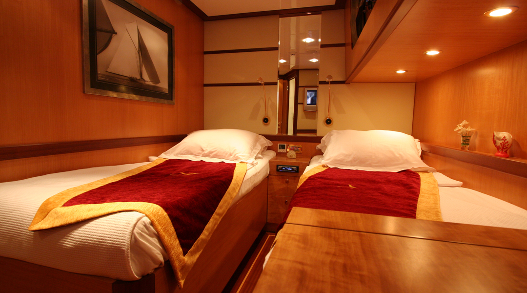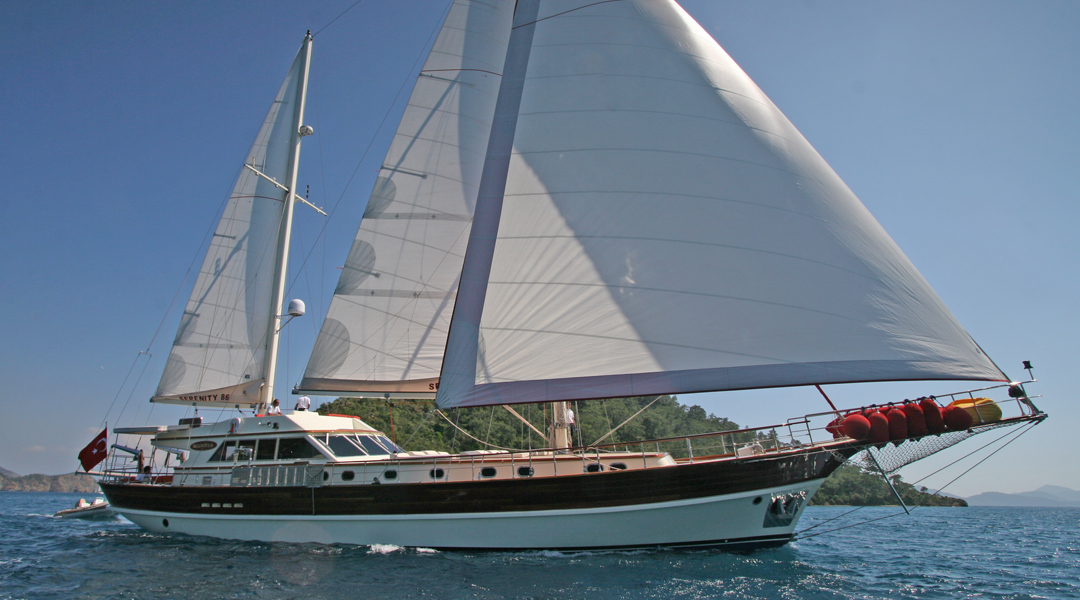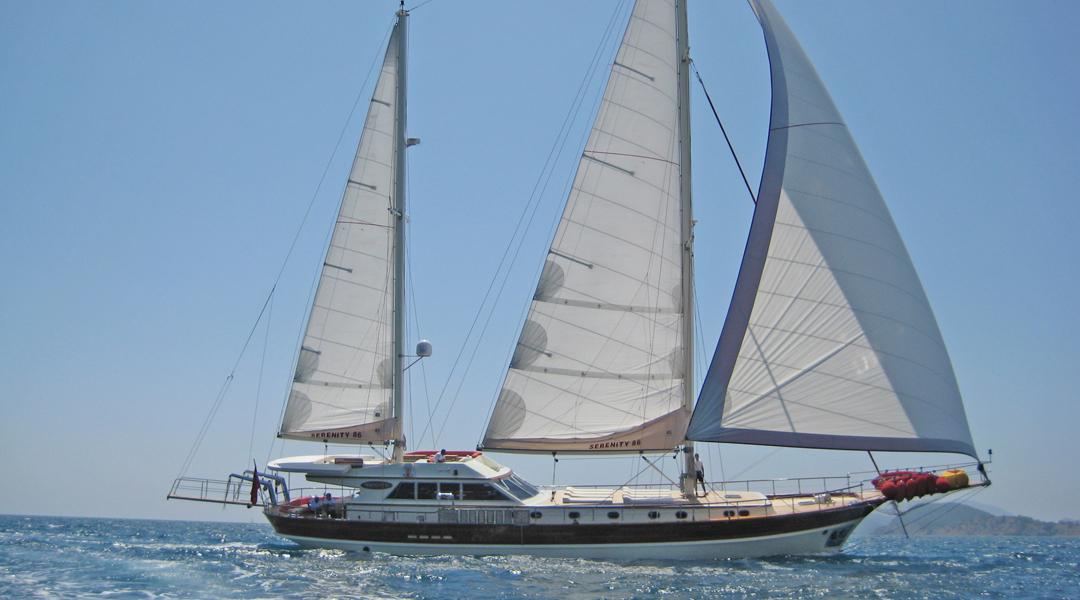 Наш 30-метровый гулет Serenity 86 была построена в 2007 году. Она приняла свой окончательный вид после реконструкции и обновления, которые она прошла в 2019 году. На нашей лодке есть 6 кают, включая 1 Master, 3 Double и 2 Twin, каждая из которых более стильная и удобная, с собственным душем, туалетом и кондиционером. 3 отдельные жилые зоны, полностью оборудованная кухня, обеденные зоны в помещении и на открытом воздухе и зоны отдыха для экипажа.