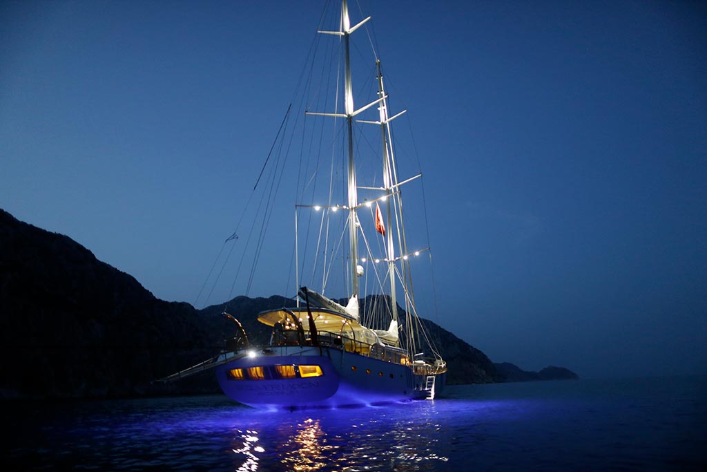 Наш гулет Серебряная Луна длиной 36,30 м был построено в 2022 году. На нашей лодке 4 каюты: 1 Master, 1 Triple, 2 Double Cabins, каждая более стильная и удобная, с собственным душем, туалетом и кондиционером. 5 отдельных гостиных, полностью оборудованная кухня, обеденные зоны внутри и снаружи помещения и зоны отдыха для экипажа. Есть подушки для загара, стулья и сервировочные наборы, достаточные для всех гостей. Гулет Серебряная Луна, благодаря своему полноценному радио, навигационному оборудованию GSM-телефона; Бодрум, Гёчек, Мармарис, Фетхие и т. д. Вы можете безопасно плавать в наших синих круизных направлениях.