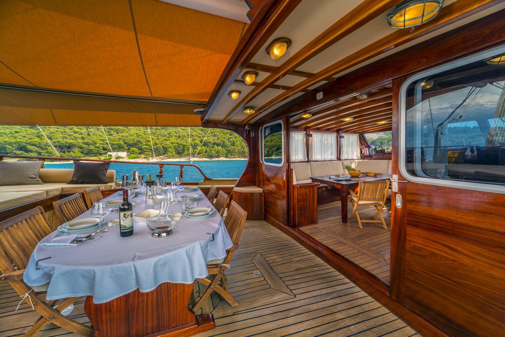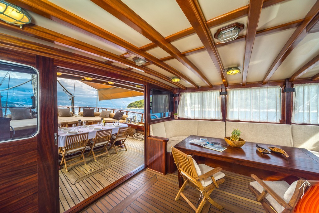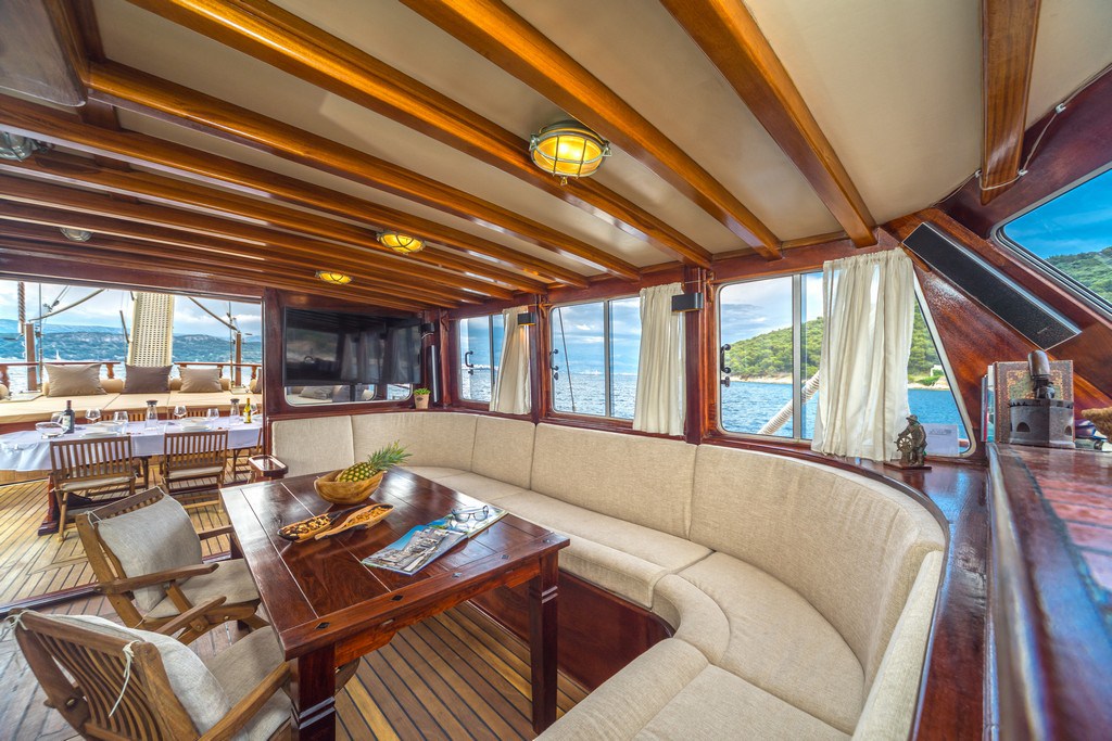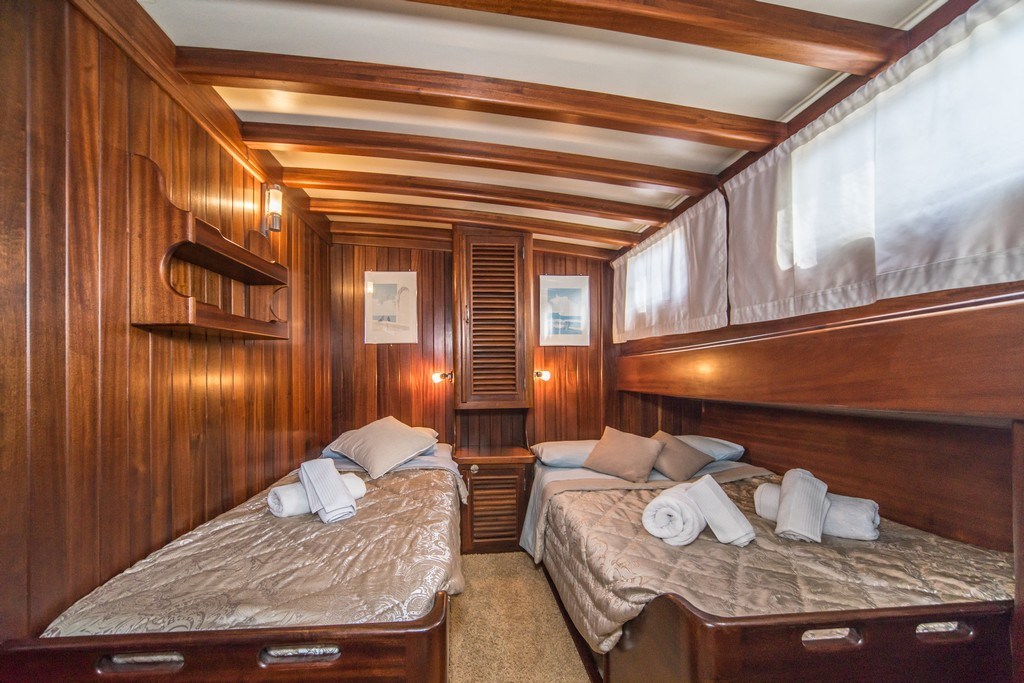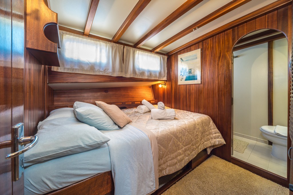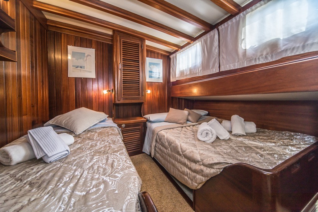 | Вместимость до 10 гостей; 3 двухместные, 2 трехместные каюты, кондиционер, душевая кабина и туалеты домашнего типа во всех каютах, отдельные каюты для экипажа. |